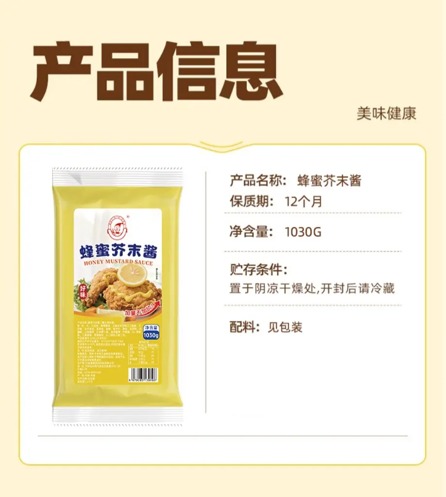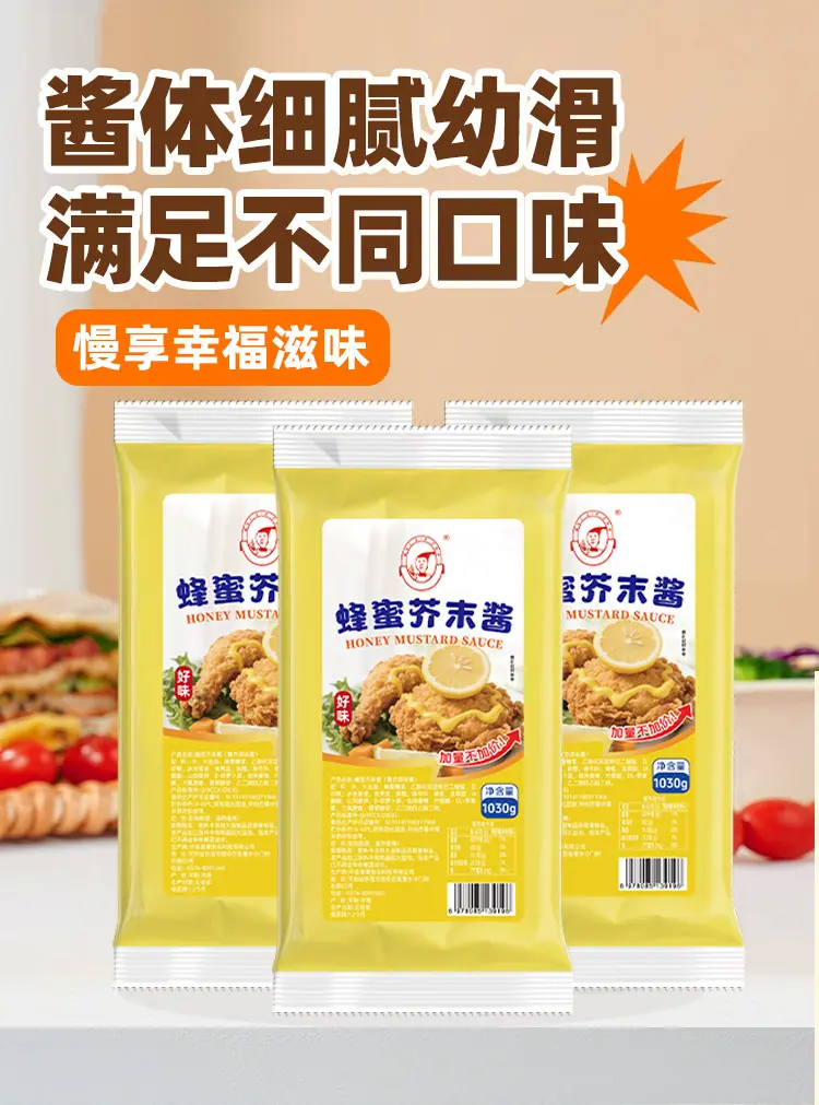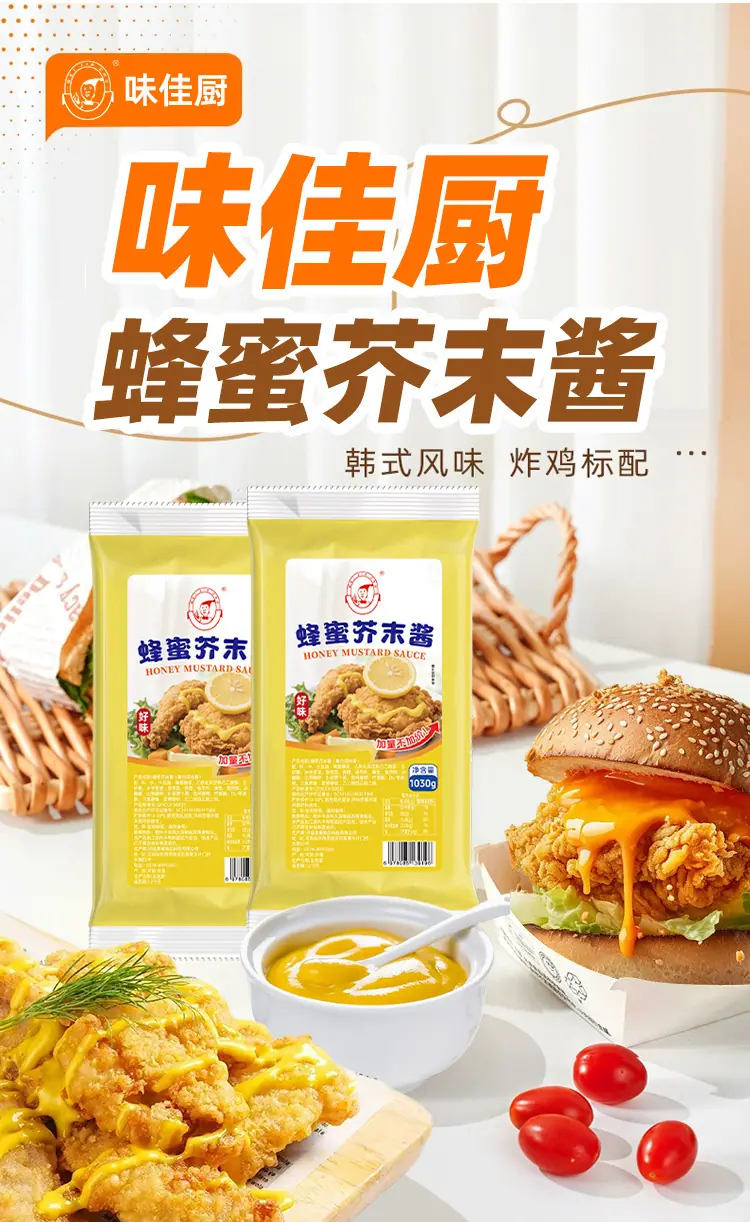 Deliciosa Salsa Miel Mostaza 1030g Salsa Comercial para Pizza Sándwich Salsa para Pollo Frito Coreano Hamburguesa Sobre Venta al por Mayor