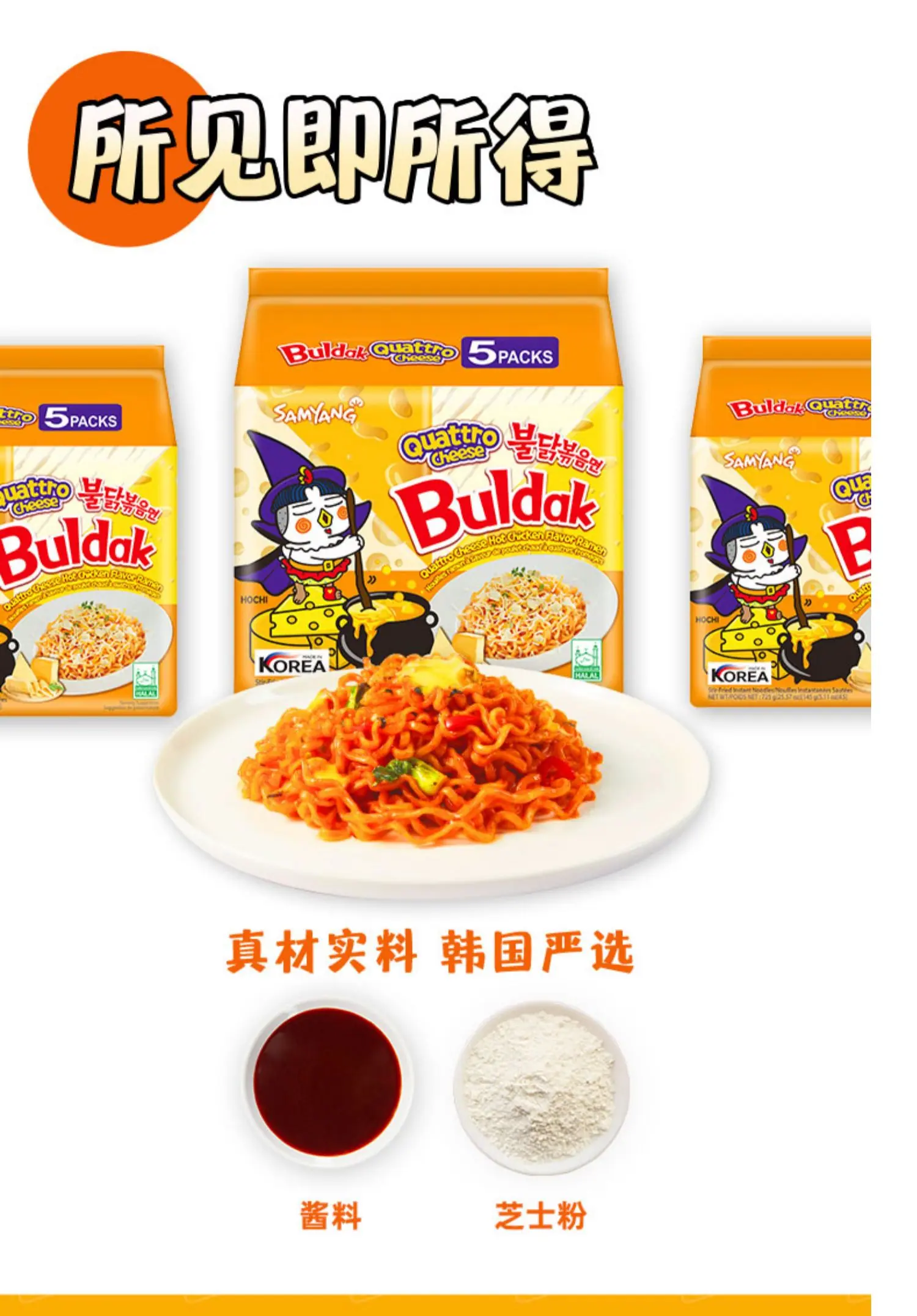 Corea del Sur Importado Samyang Queso Alianza Fideos de Pavo Cuatro Quesos Fideos de Pavo Fideos Instantáneos Super Picantes Fideos Instantáneos