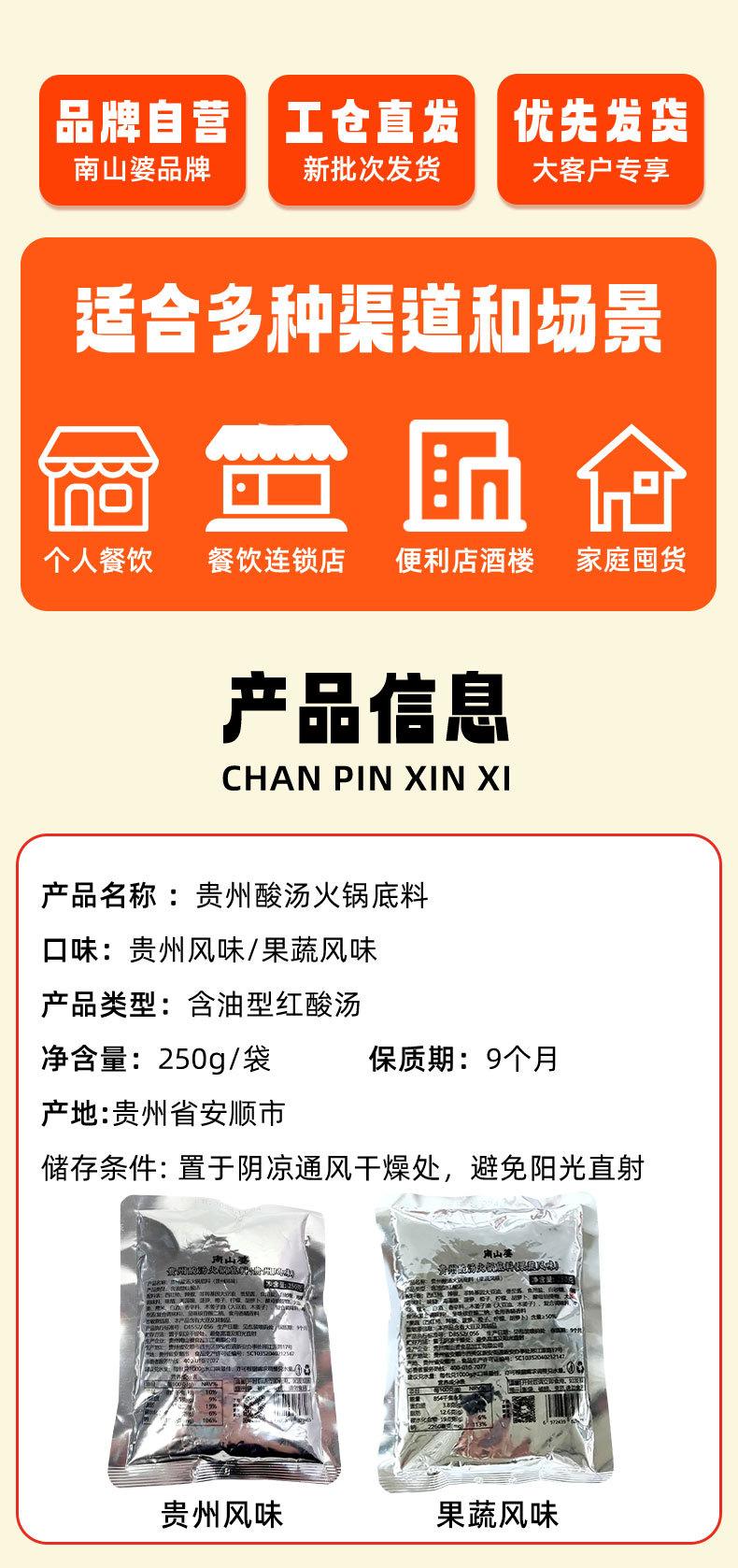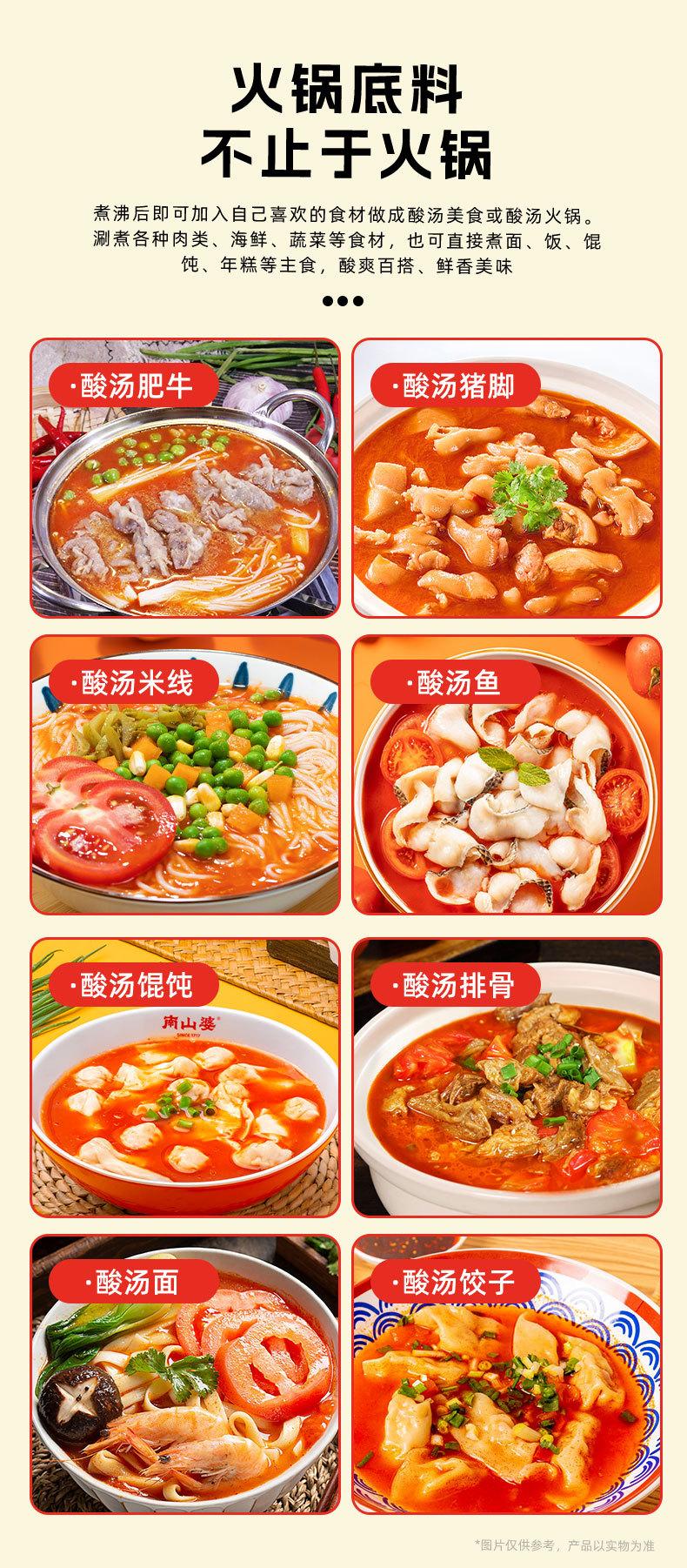 Nanshanpo Guizhou Sopa Ácida Base para Olla Caliente 250g En Bolsa Venta al Por Mayor Catering Comercial Sopa Ácida de Tomate Condimento para Res Grasa