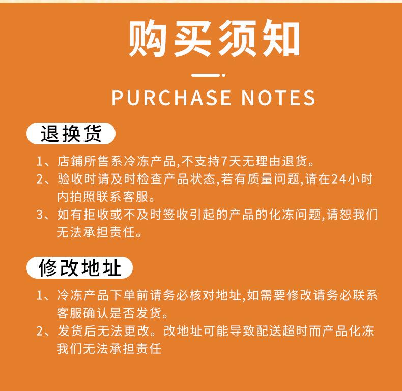 Debido a la naturaleza especial del producto, todos los envíos son refrigerados. Antes de realizar un pedido, confirme que la dirección de entrega puede ser alcanzada por transporte refrigerado, y asegúrese de consultar al servicio de atención al cliente para conocer los costos de envío específicos. Los pedidos realizados directamente sin consulta no serán enviados. Gracias por su cooperación.