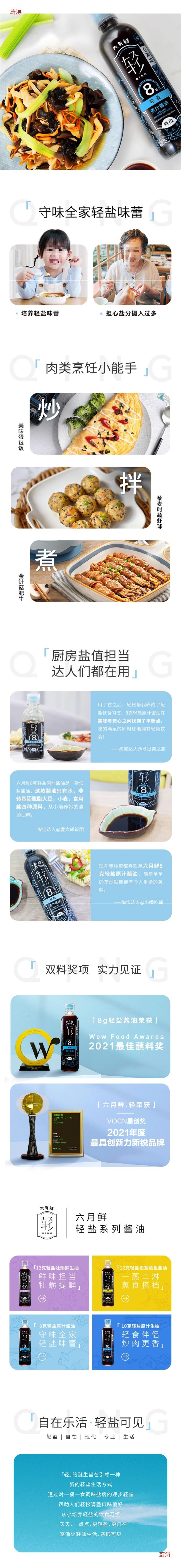 Junio Fresco 8g Sal Ligera Salsa de Soya Original 500ml 0% Conservantes Añadidos Grado Doméstico Fermentada Reducida en Sal Salsa de Soya Ligera