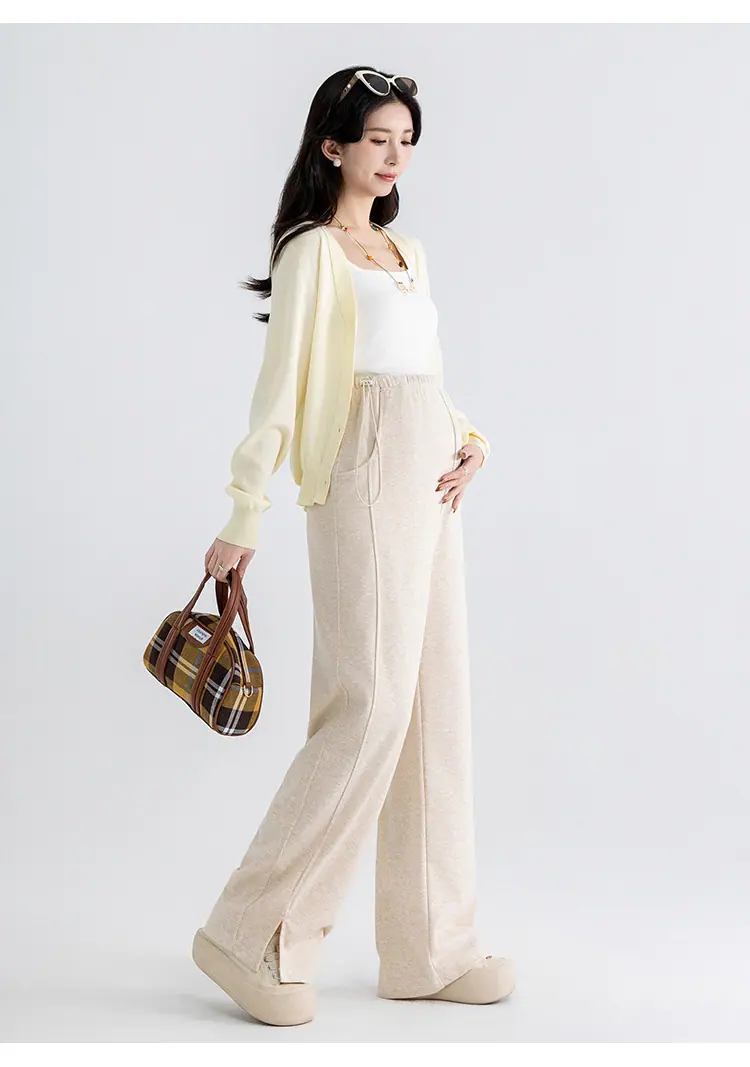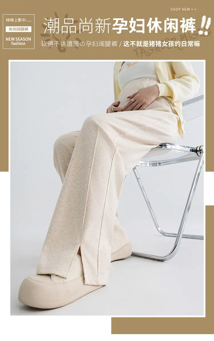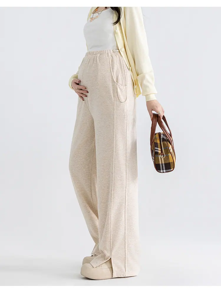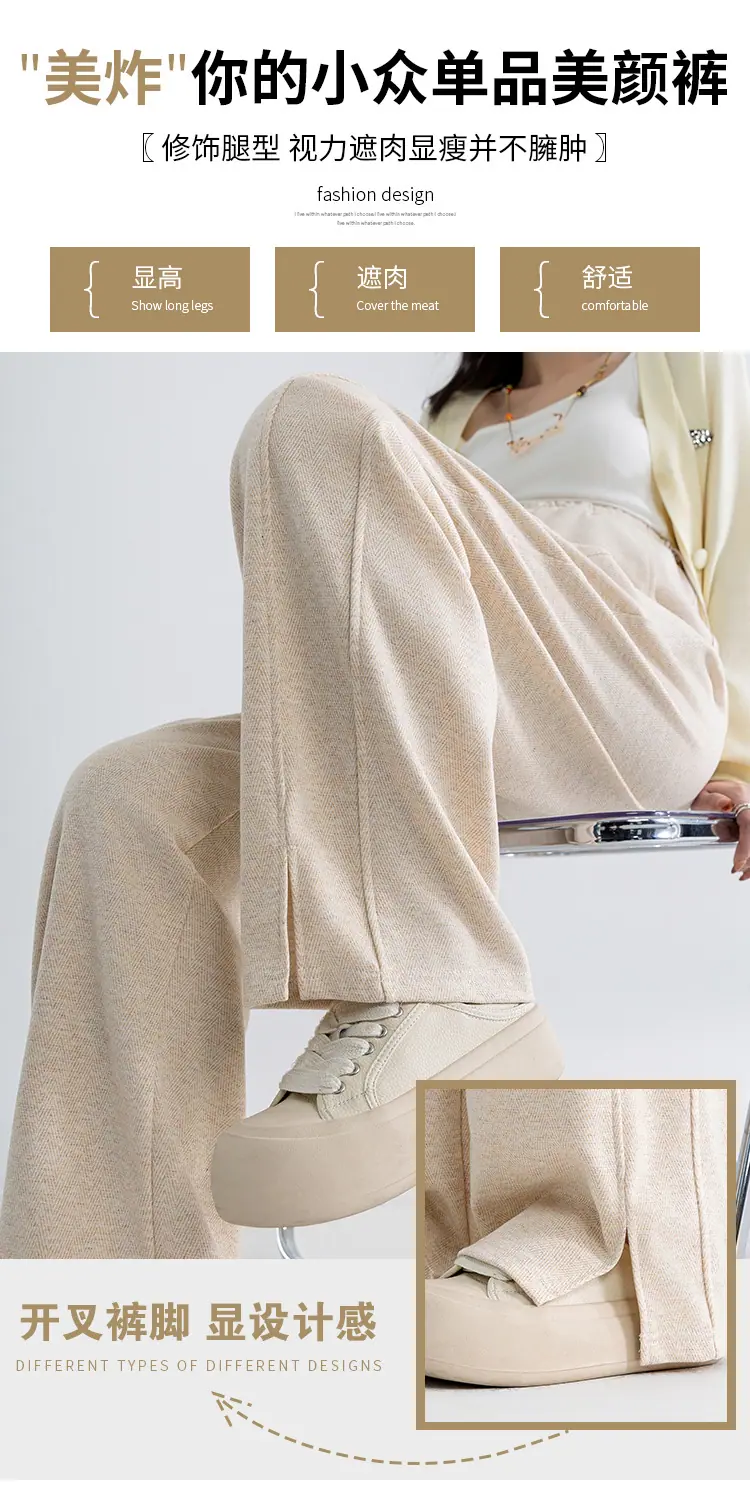 Pantalones de Maternidad para Primavera y Otoño, Nuevos Pantalones Casuales de Moda con Abertura en la Pierna, Adelgazantes de Pierna Recta y Pierna Ancha Que No Aprietan la Barriga