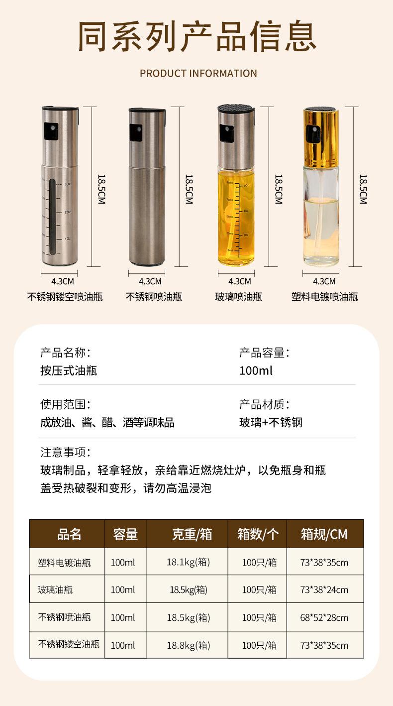 Botella de Spray de Acero Inoxidable Personalizada Transfronteriza Botella de Vidrio Suministros para el Hogar Cocina Acero Inoxidable Antiadherente Aceitera Fabricante