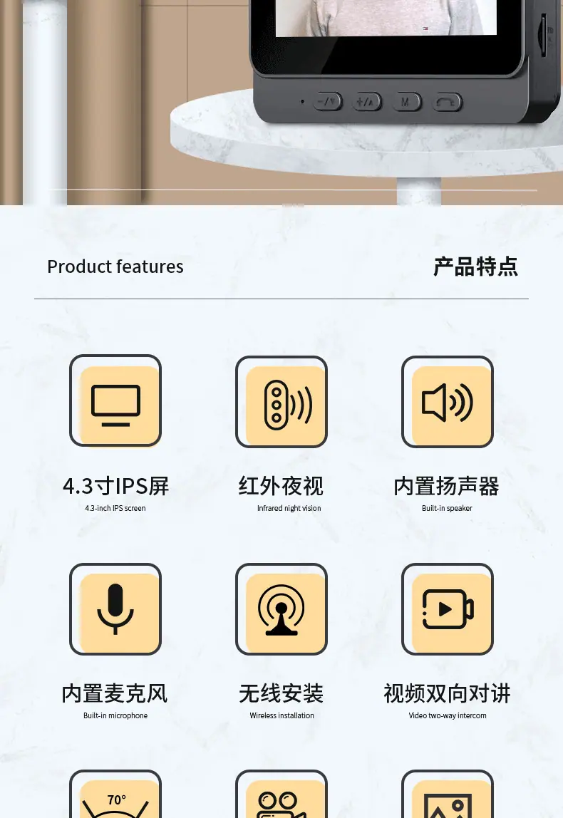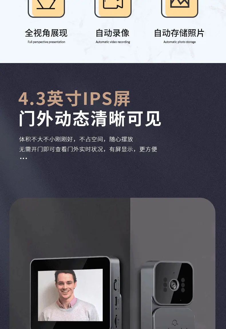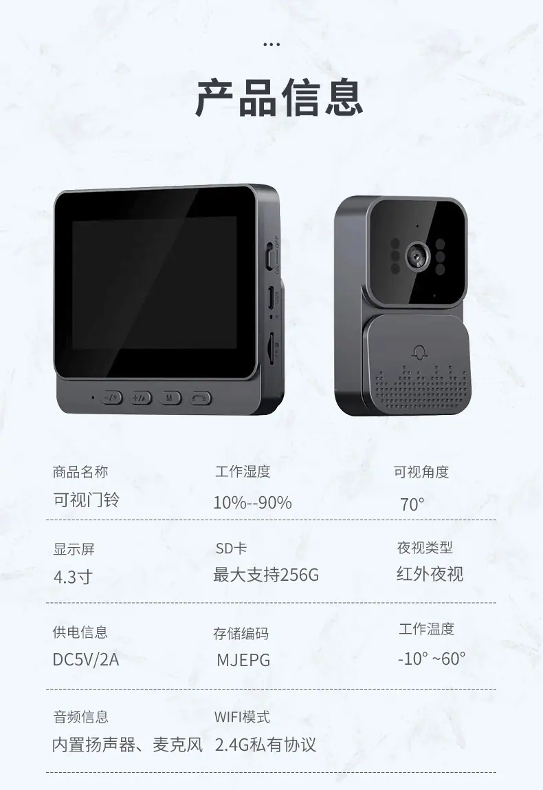 ![]() Timbre visual impermeable transfronterizo pantalla interior sin emparejamiento videoportero de monitoreo doméstico videointercomunicador HD visión nocturna instantánea ![]() |