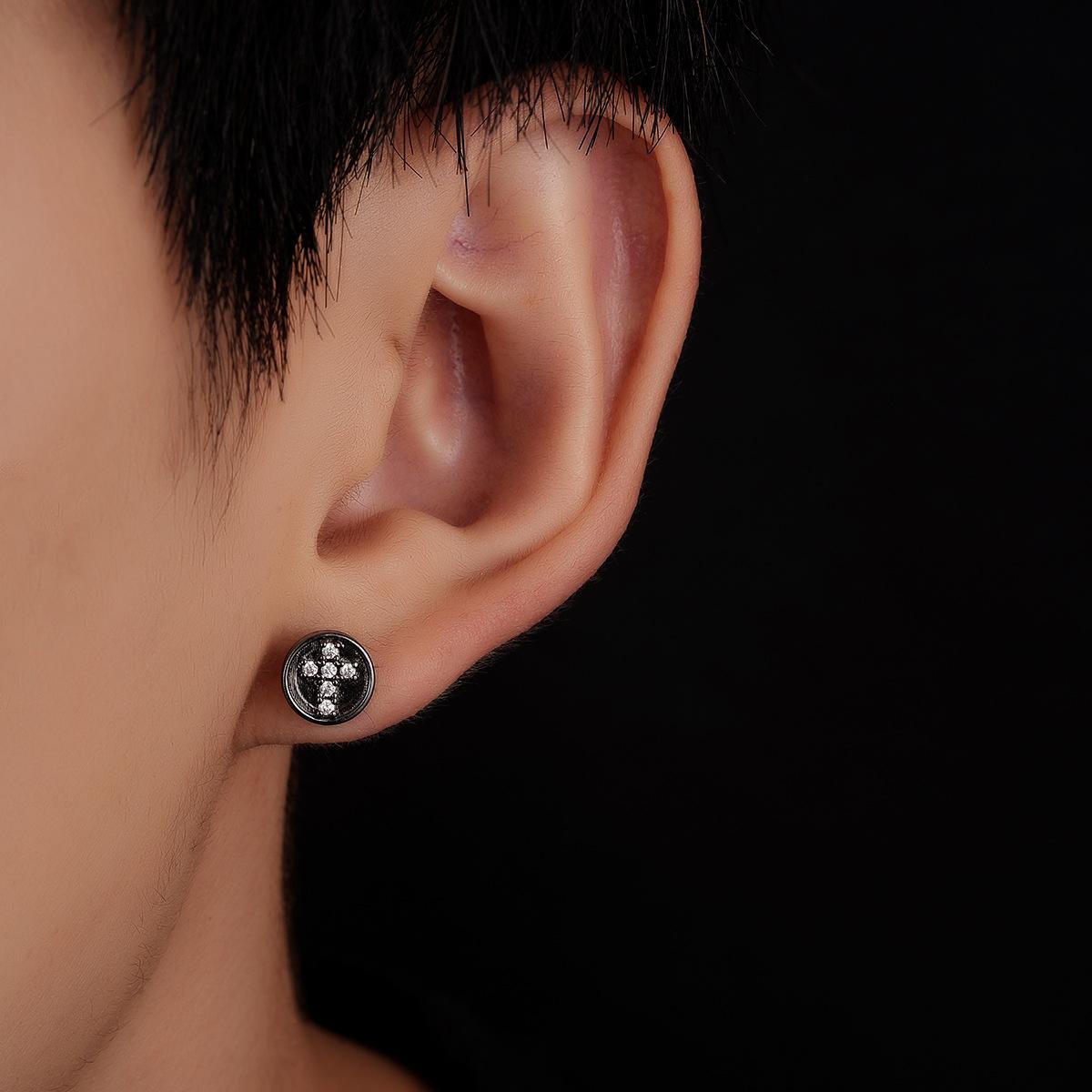X1068-B(Cross Diamond Stud Earrings) Gun Black Pair