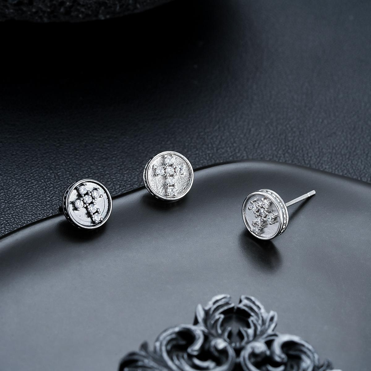 X1068-A(Cross Diamond Stud Earrings) Silver Pair