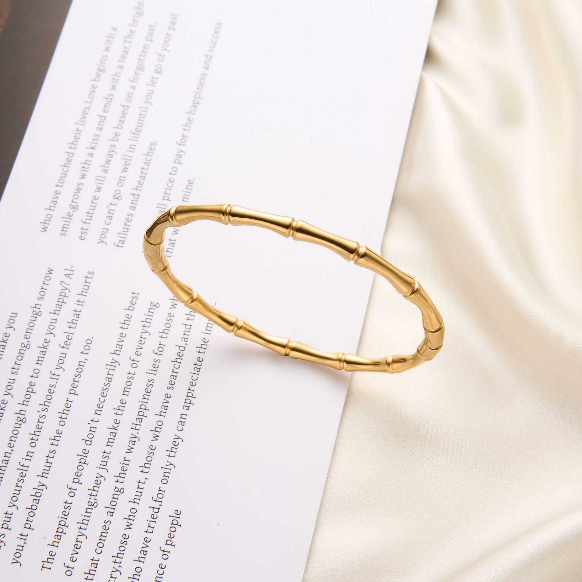 Pulsera Europea y Americana de Moda con Hebilla de Bambú, Pulsera Ovalada Simple de Acero Inoxidable Brillante, Chapado al Vacío que No se Desvanece