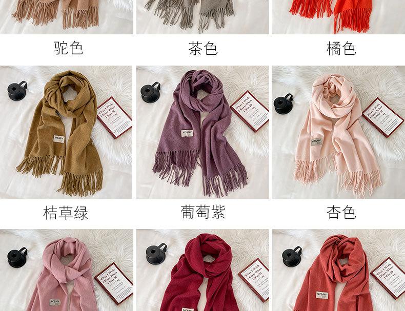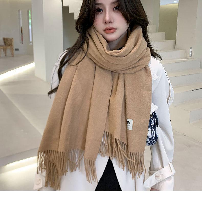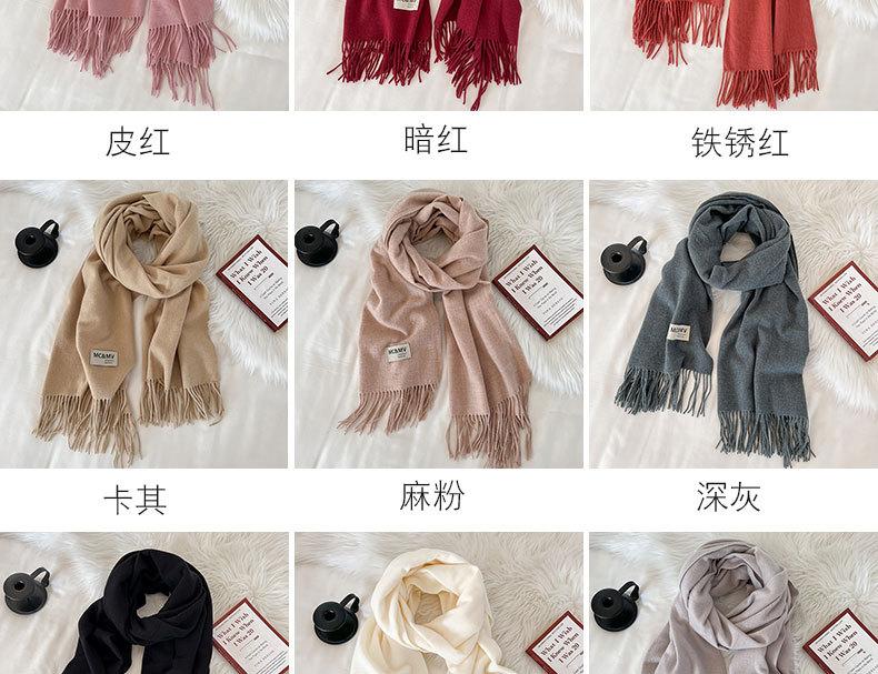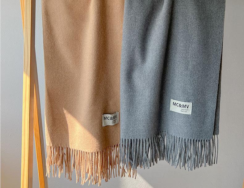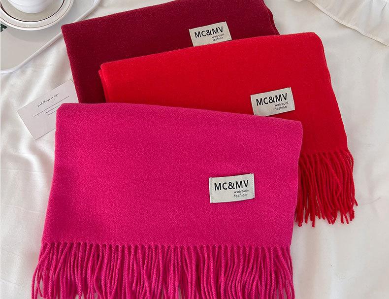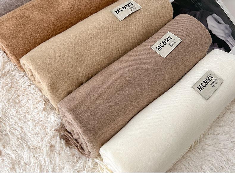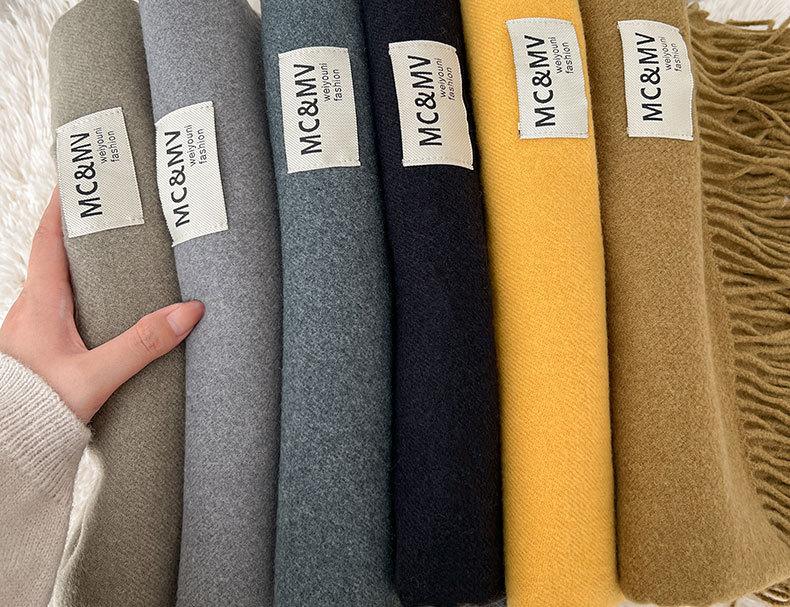 Bufanda de color sólido al por mayor para mujer, chal de cachemira grueso para invierno, bufanda cálida de estilo occidental moderno de alta gama, estilo coreano que combina con todo