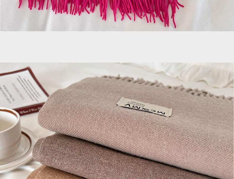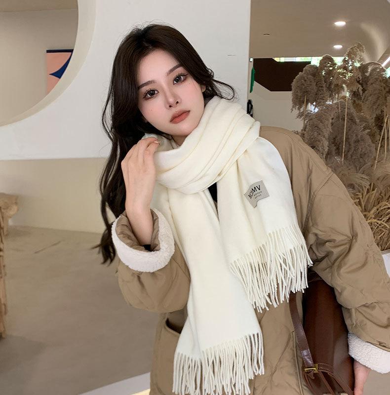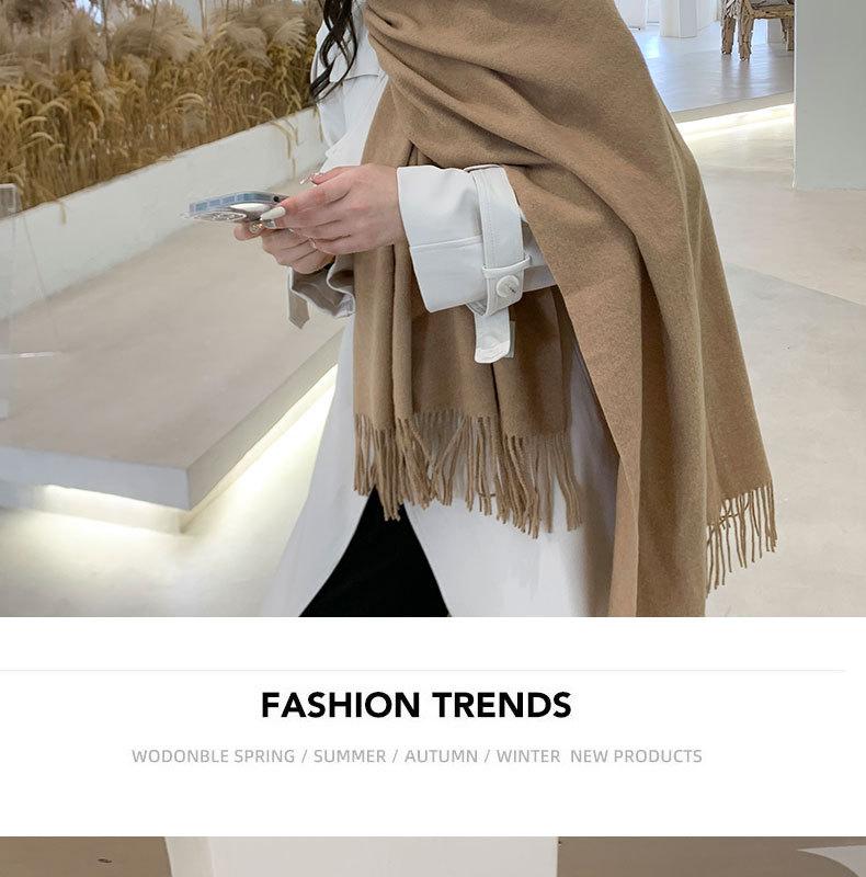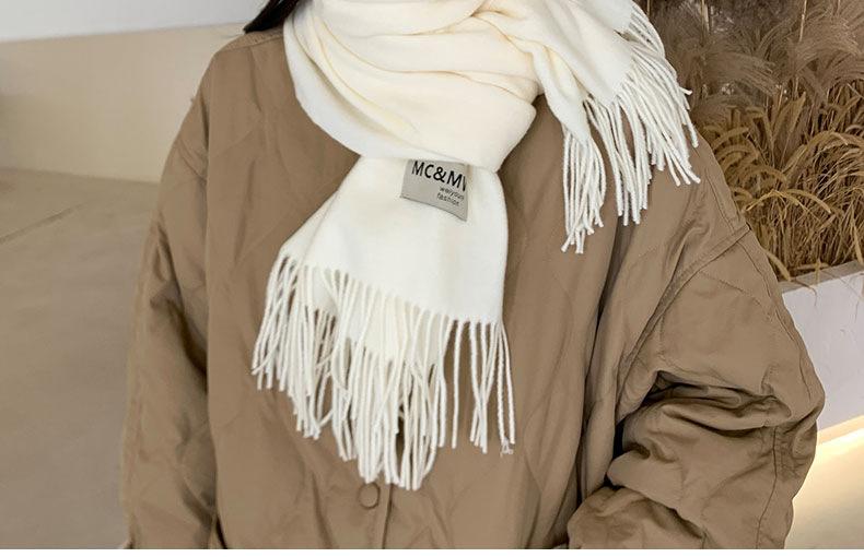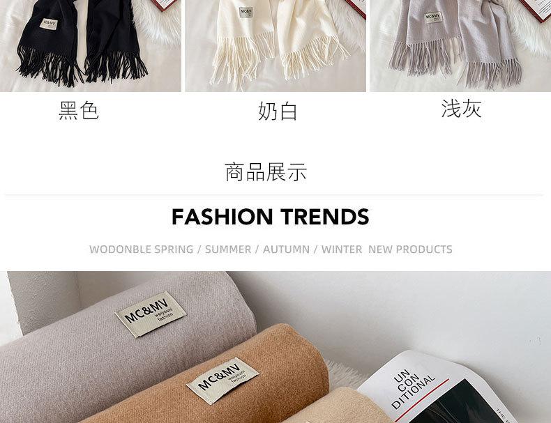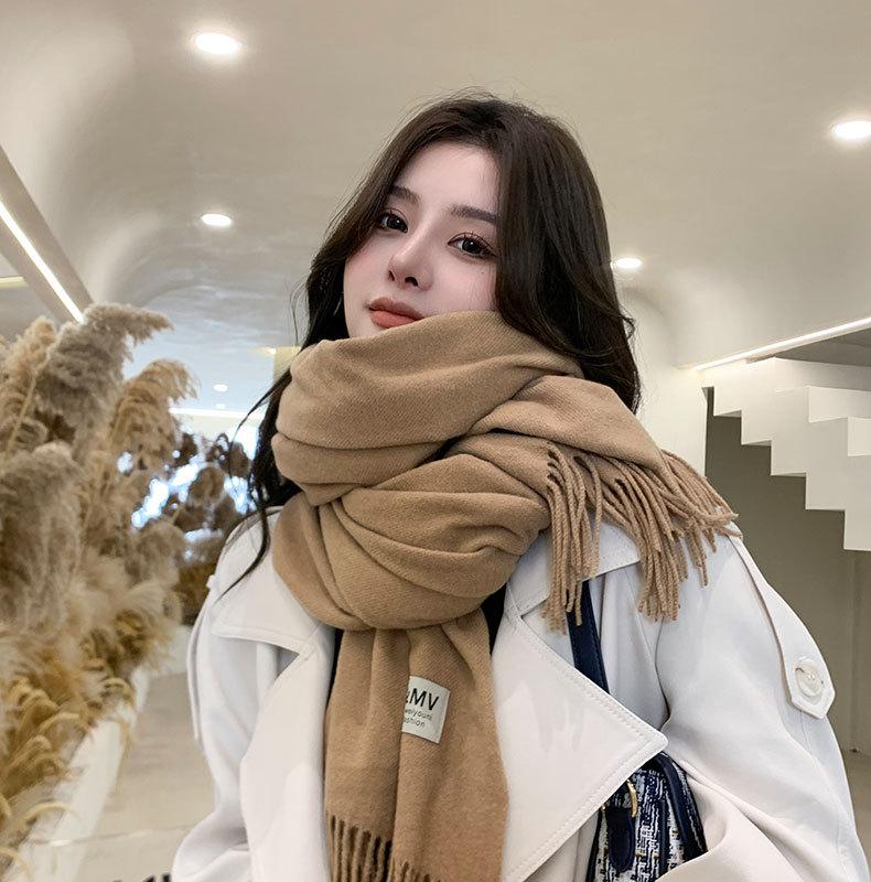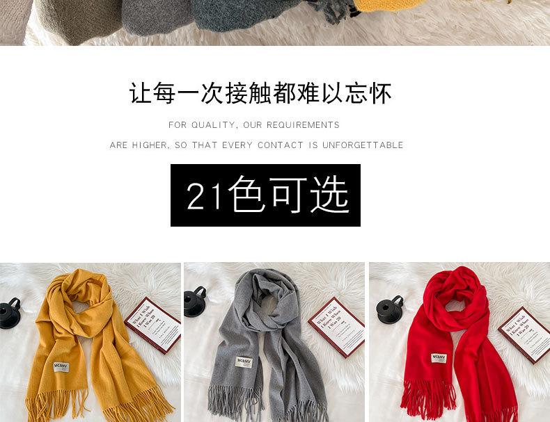 Bufanda de color sólido al por mayor para mujer, chal de cachemira grueso para invierno, bufanda cálida de estilo occidental moderno de alta gama, estilo coreano que combina con todo