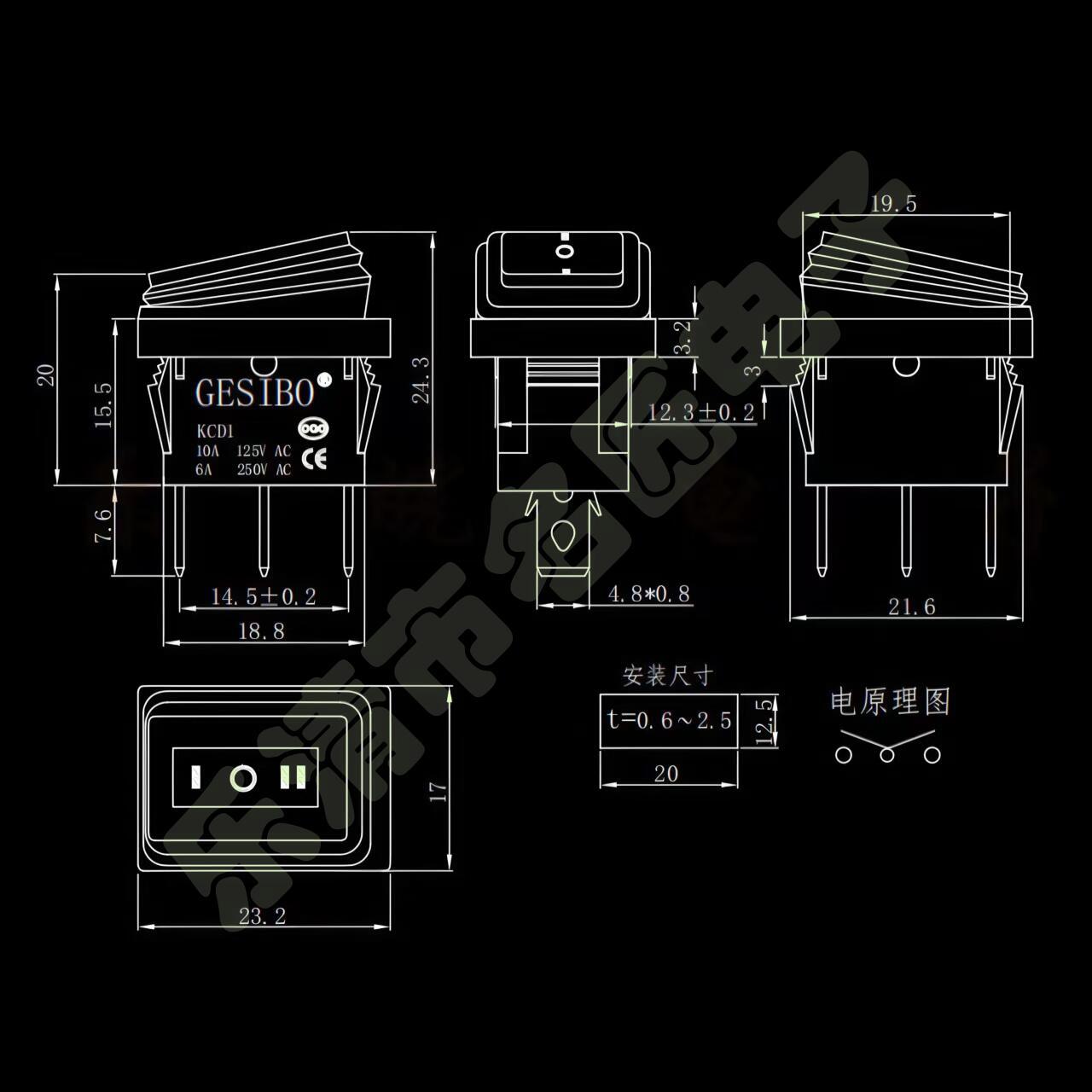 Interruptor Basculante Impermeable KCD1 Flecha Doble 3 Pines 3 Posiciones Negro Tres Pines Tres Posiciones con Flecha Interruptor Basculante Impermeable