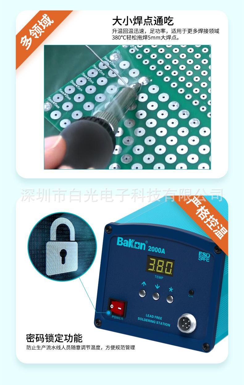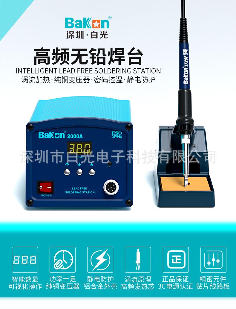 Bakon luz blanca BK2000A soldador eléctrico de alta potencia estación de soldadura de alta frecuencia reparación electrónica 90W soldador de grado industrial