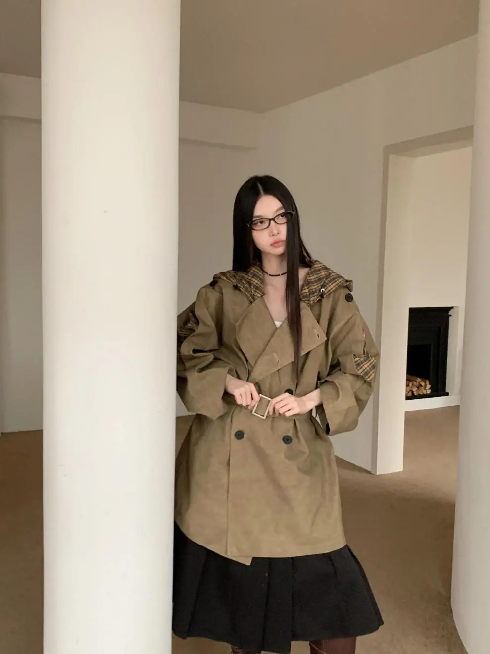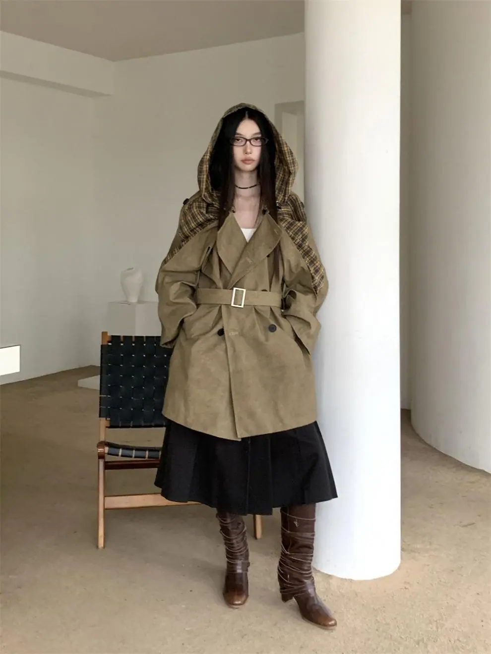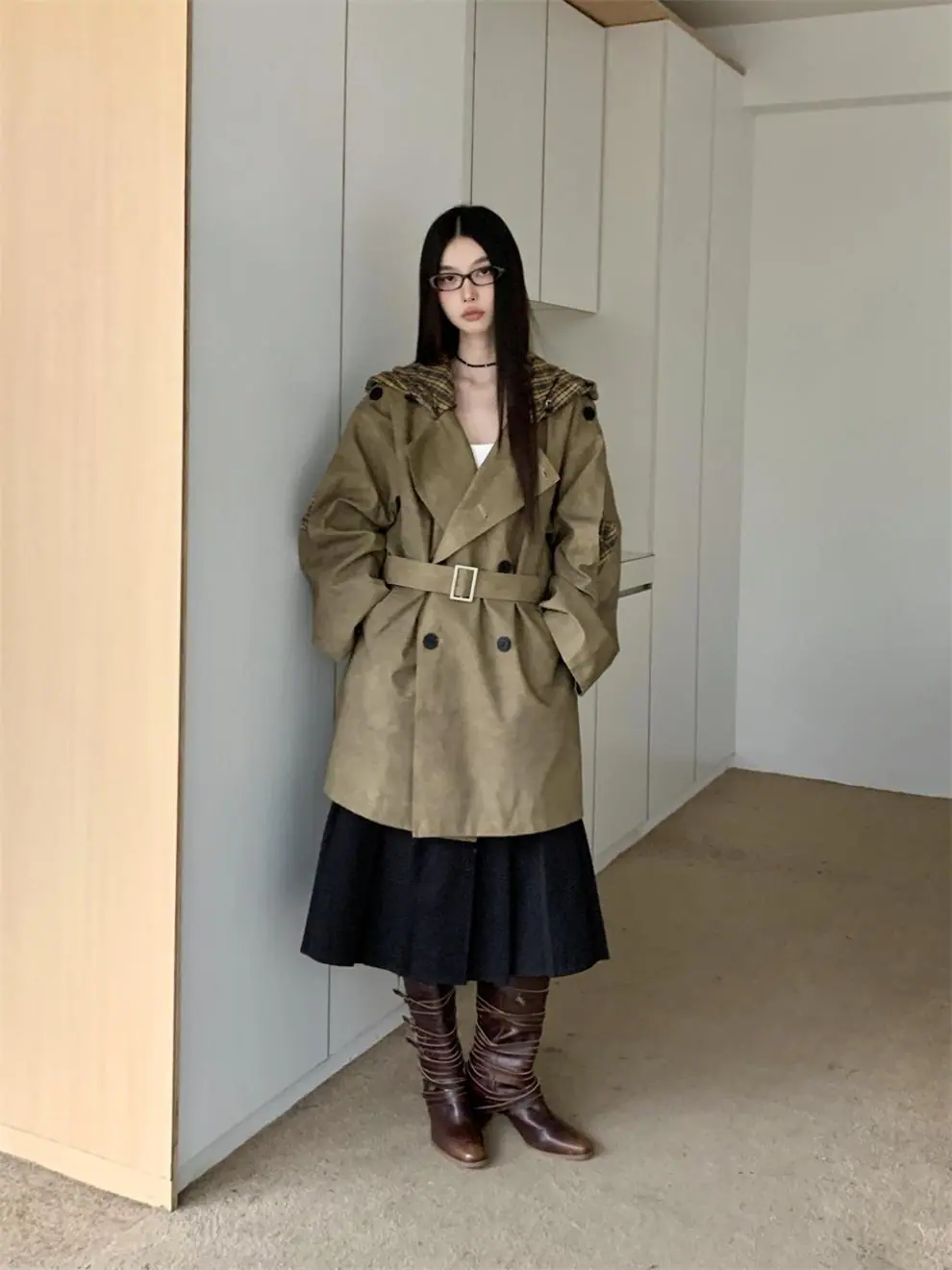 Chamarra Cortavientos Patchwork con Capucha para Trabajo Musculoso Desgastado en Stock