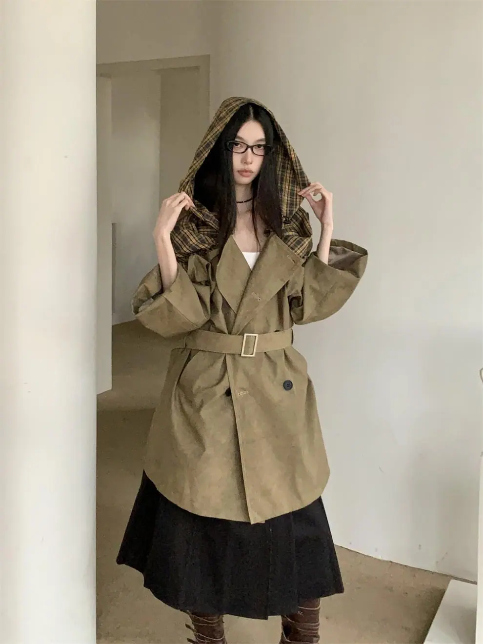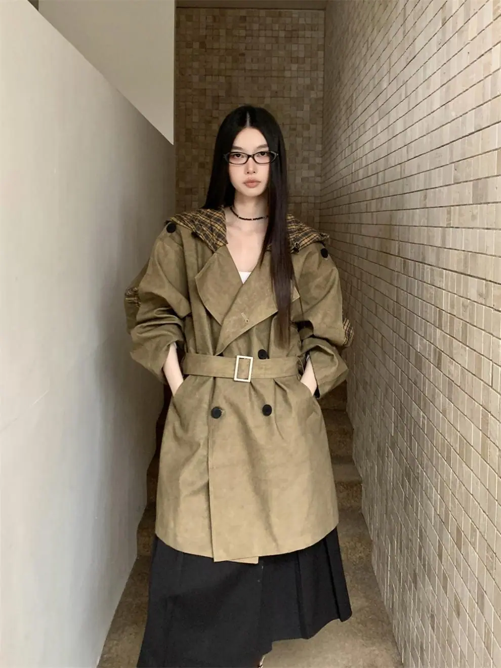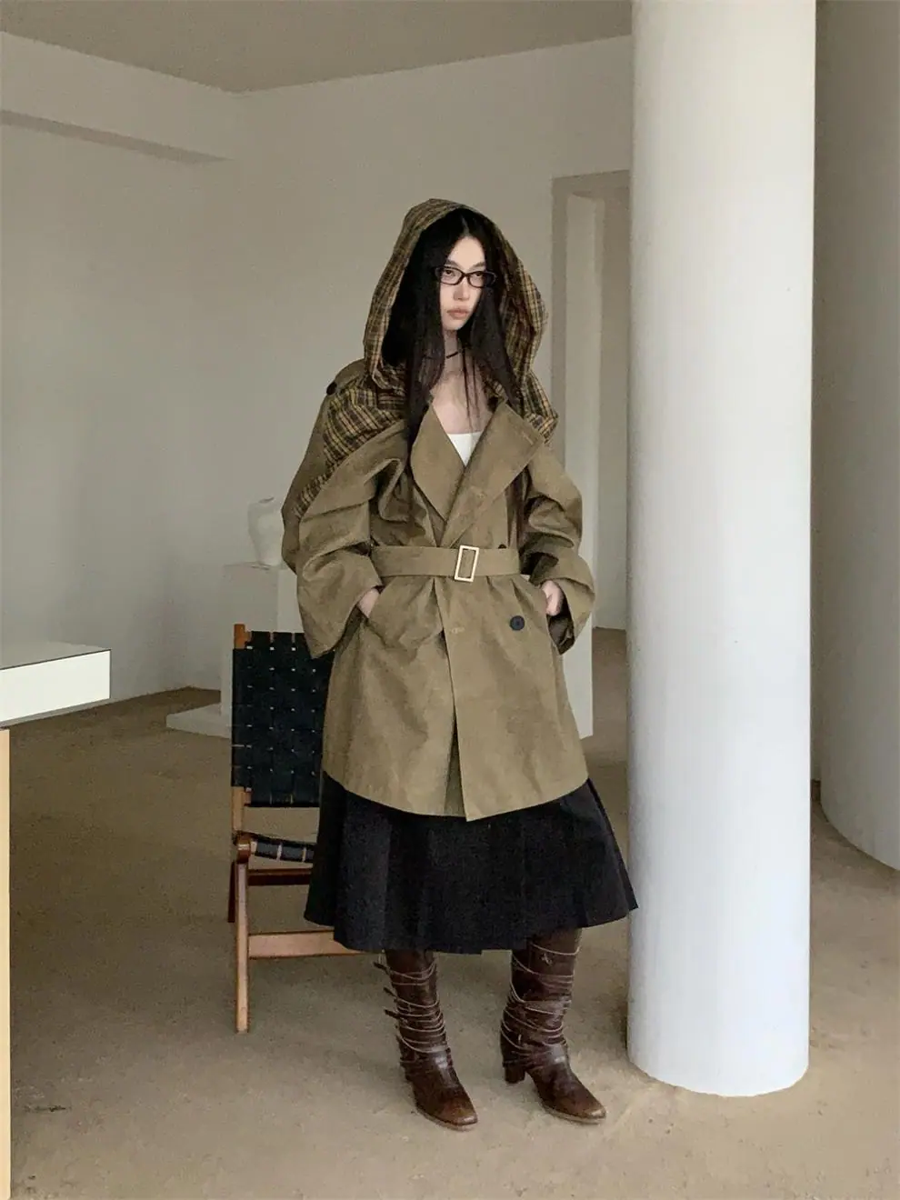 Chamarra Cortavientos Patchwork con Capucha para Trabajo Musculoso Desgastado en Stock
