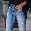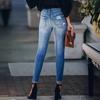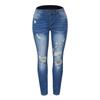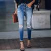 Jeans de Nuevo Estilo Transfronterizo Europeo y Americano, Jeans Skinny Rotos Lavados en Azul Vintage de Alta Calidad Elásticos de Cintura Alta para Mujer