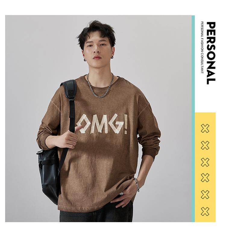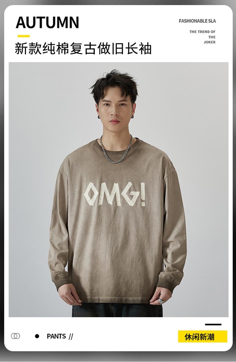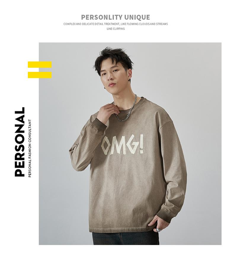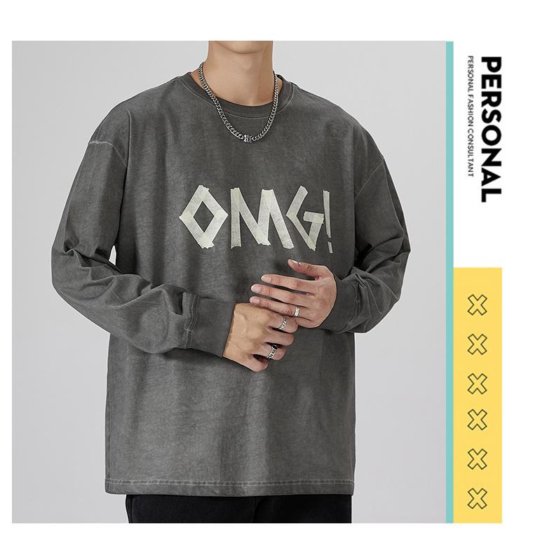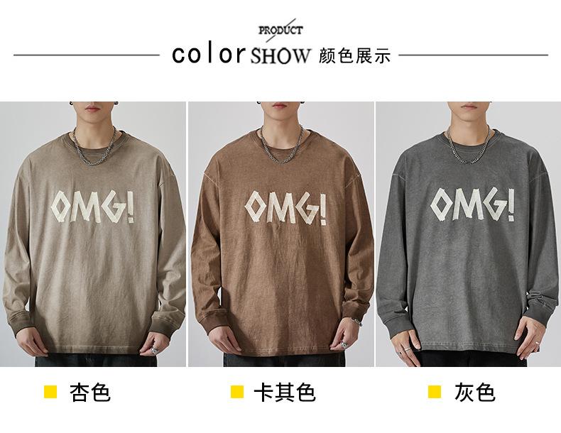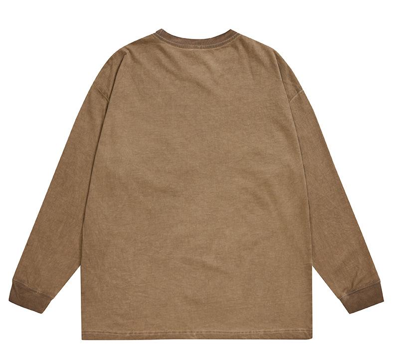 Camiseta de cuello redondo americana de algodón puro nueva de otoño e invierno para hombre, holgada, de talla grande, estilo retro, de manga larga para jóvenes, de marca de moda