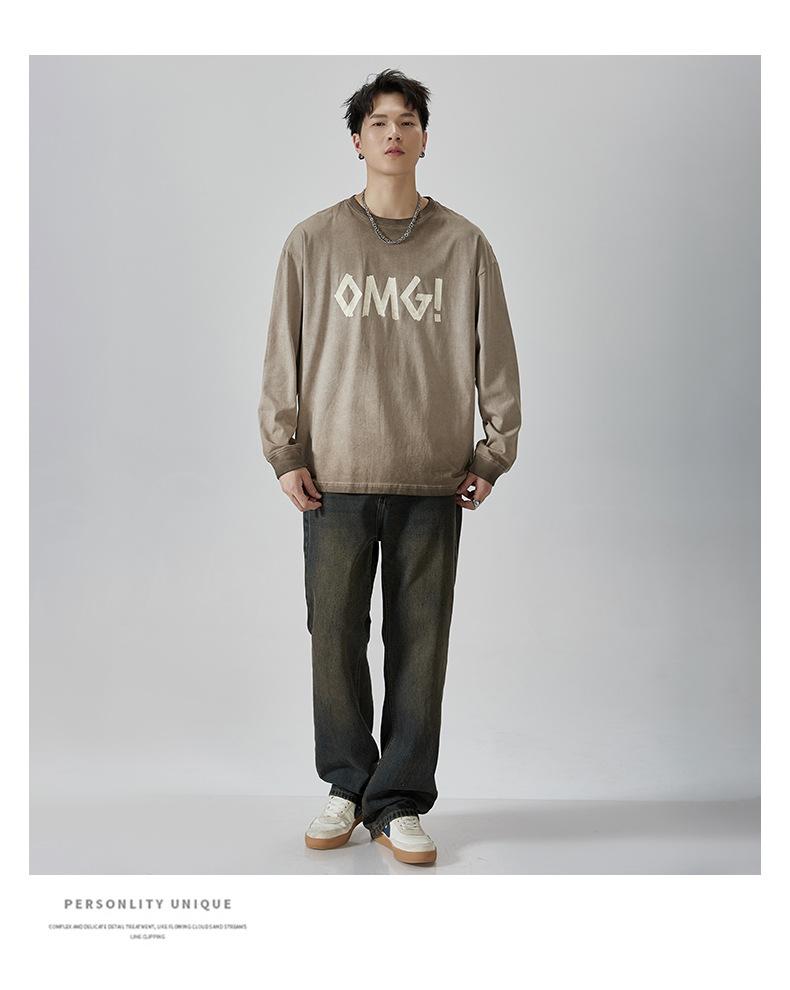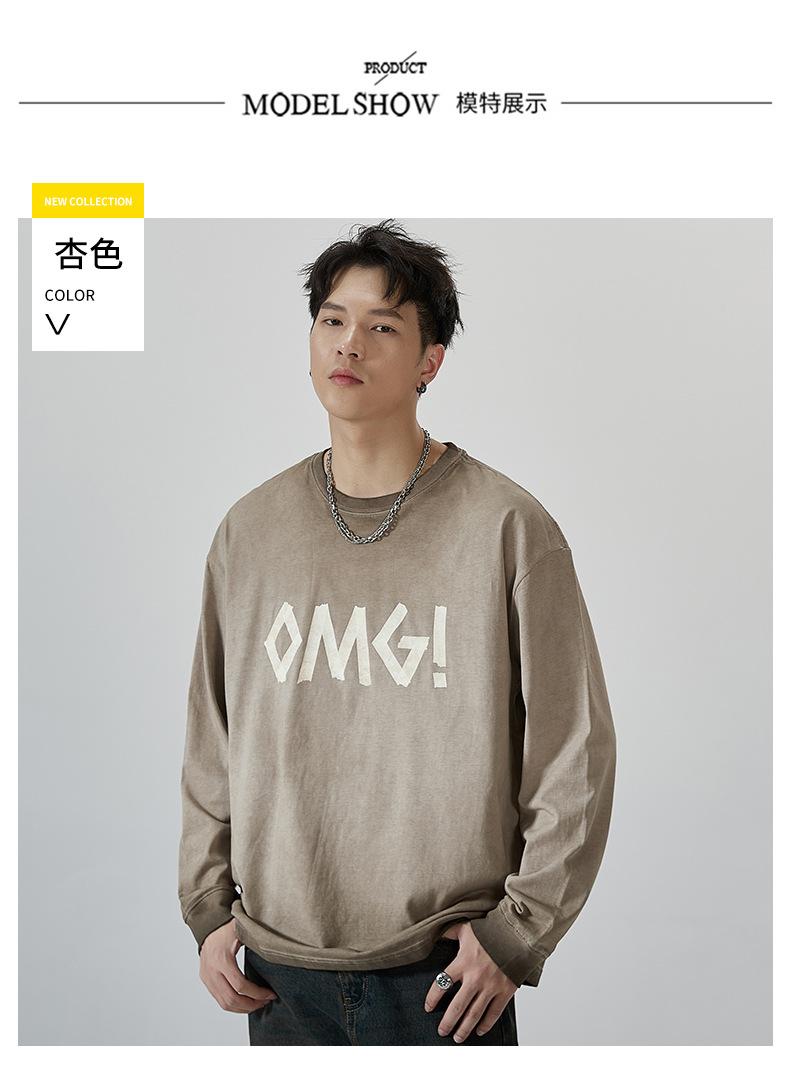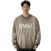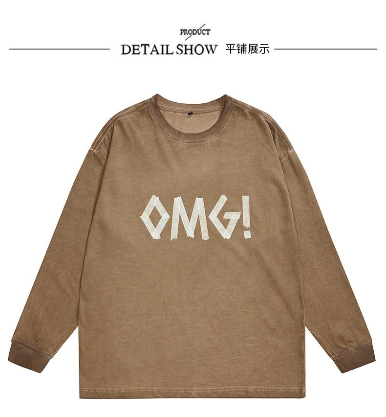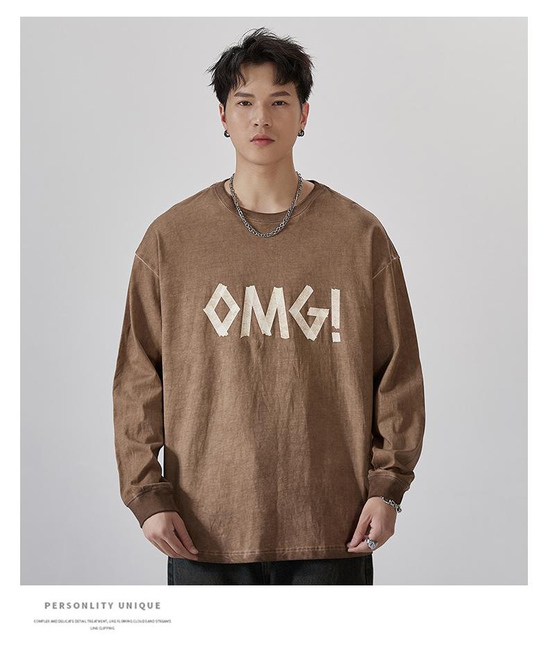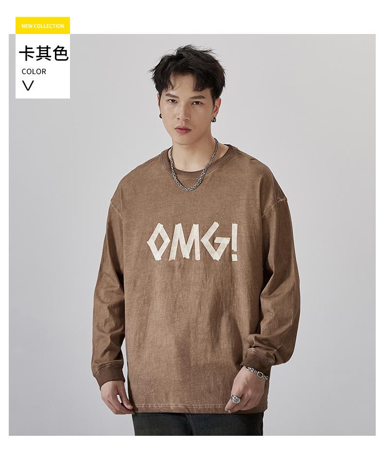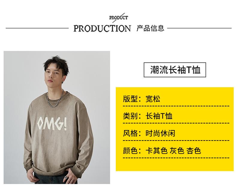 Camiseta de cuello redondo americana de algodón puro nueva de otoño e invierno para hombre, holgada, de talla grande, estilo retro, de manga larga para jóvenes, de marca de moda