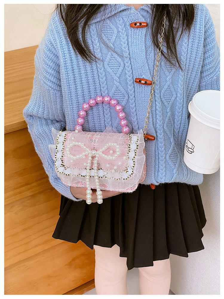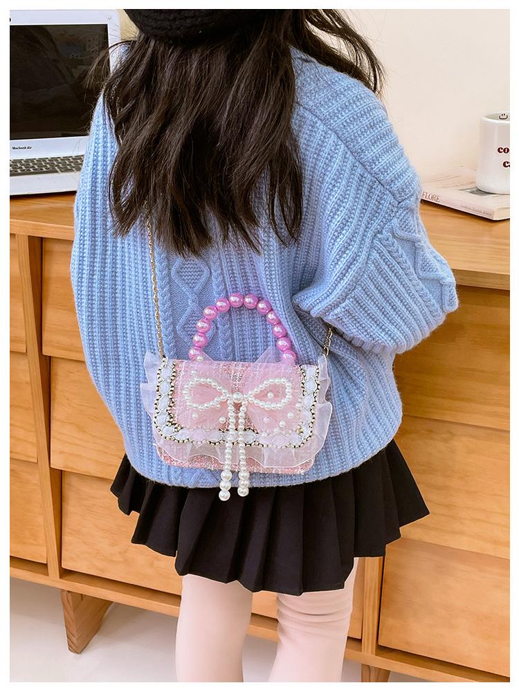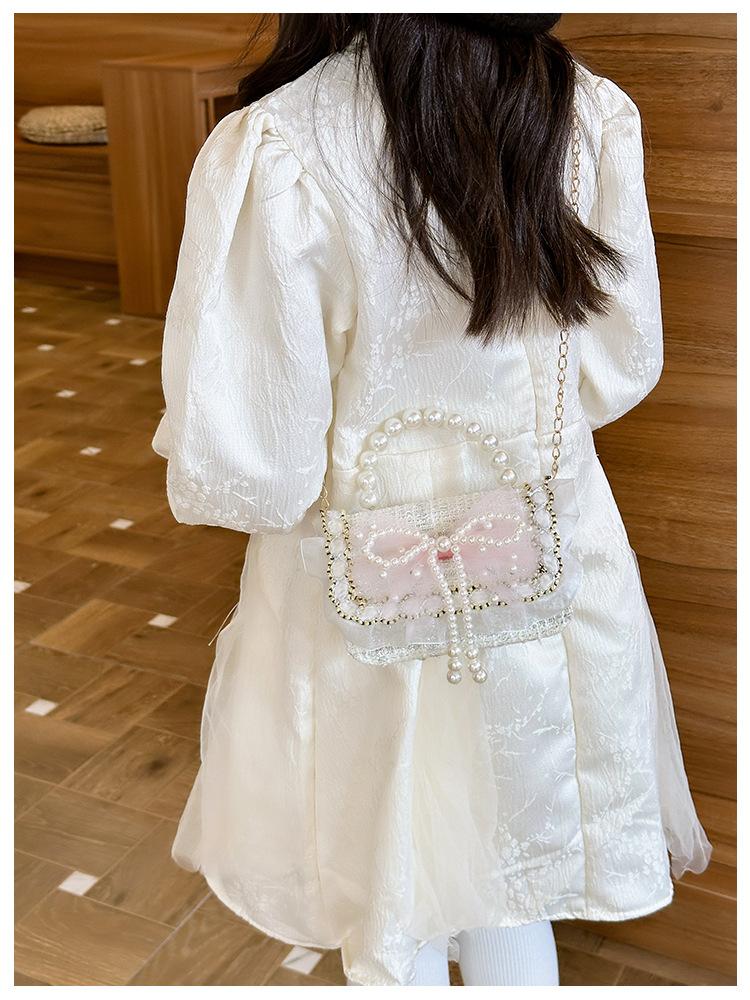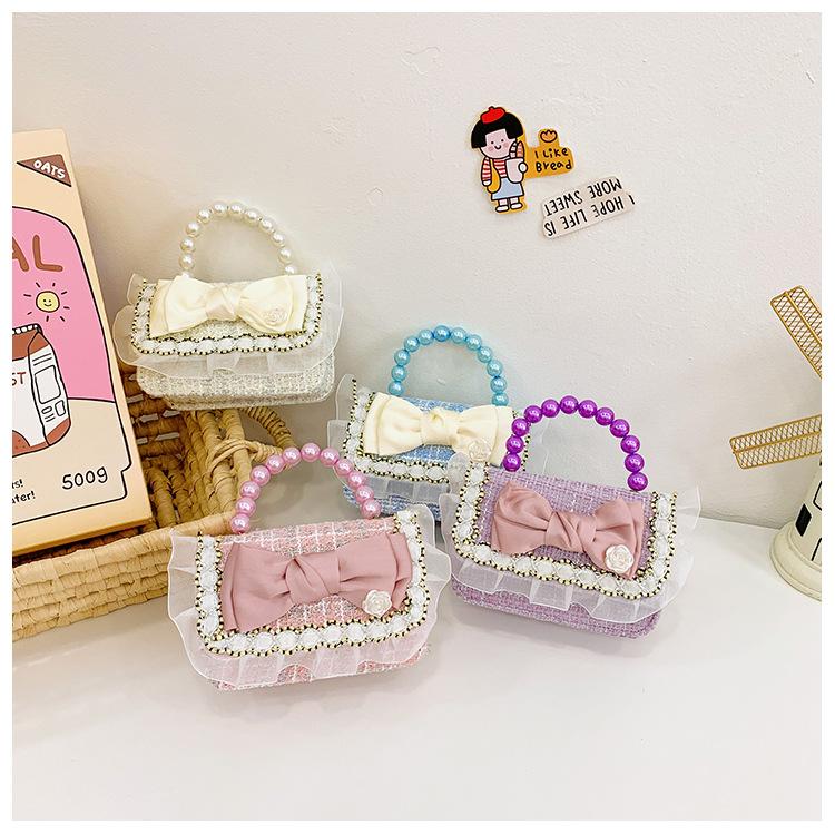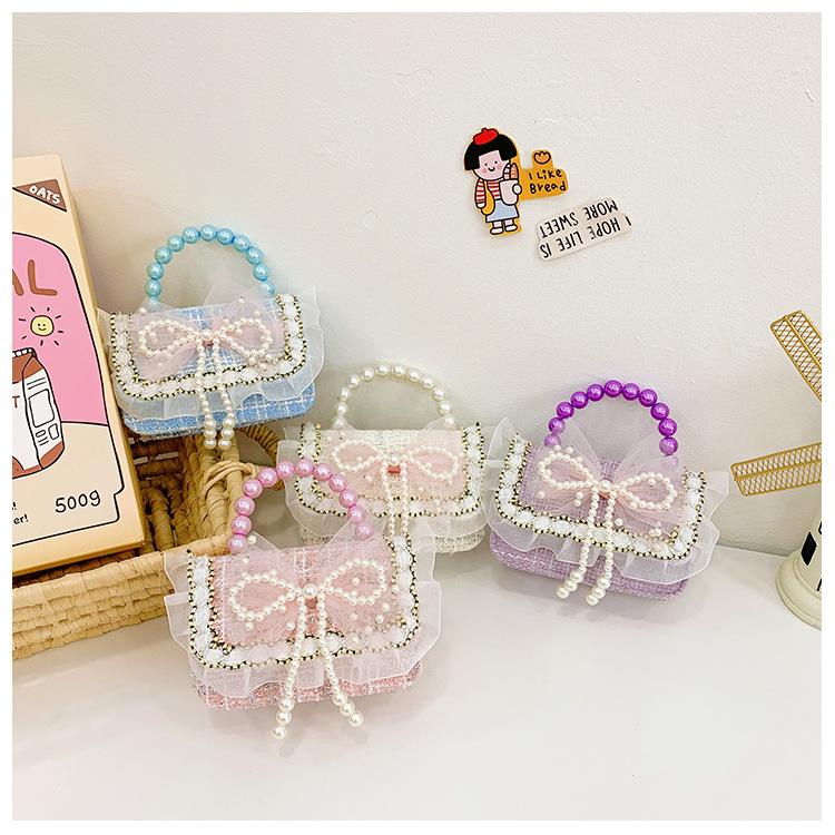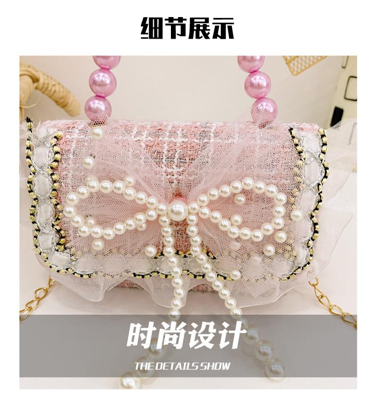 Bolso para Niñas Lindo Bolso de Hombro Estilo Chanel Pequeño de Lana con Lazo Princesa Perla Bolso de Mano Bolso Cruzado para Bebé