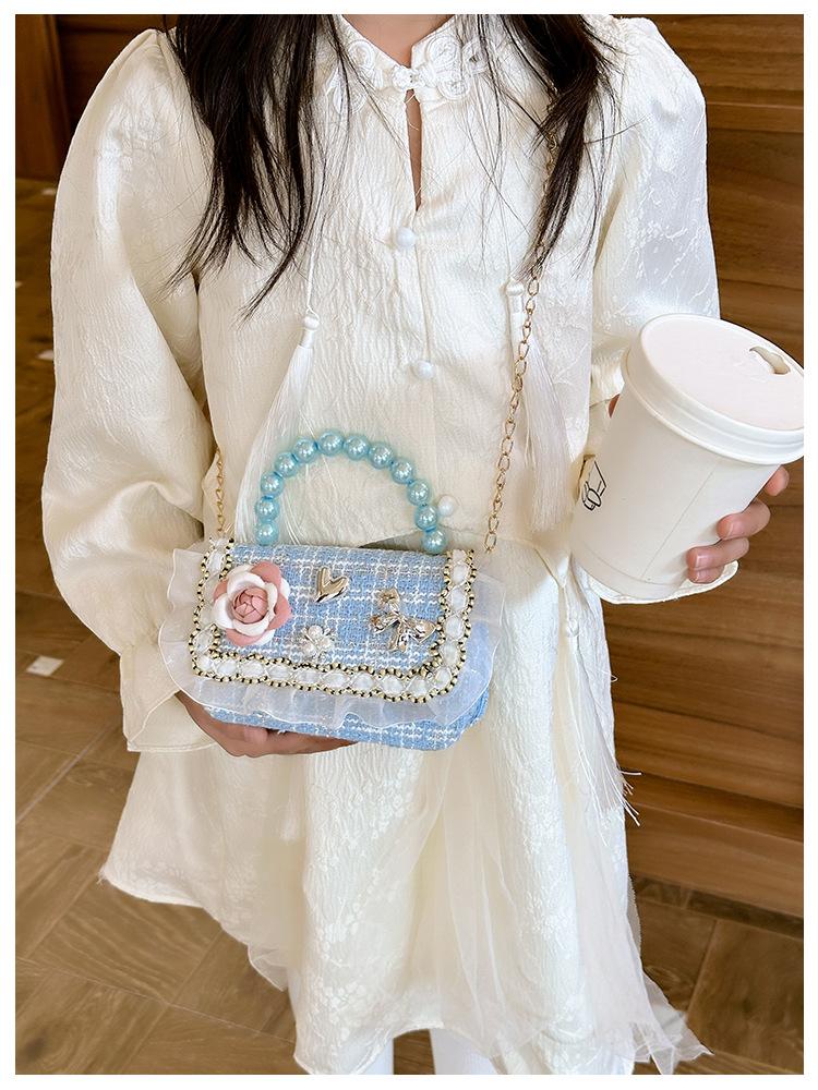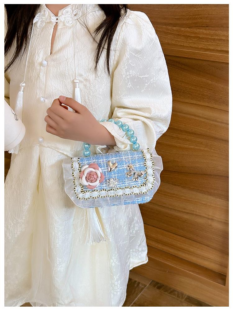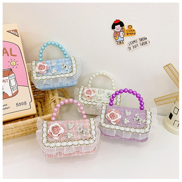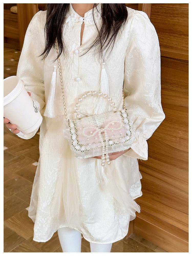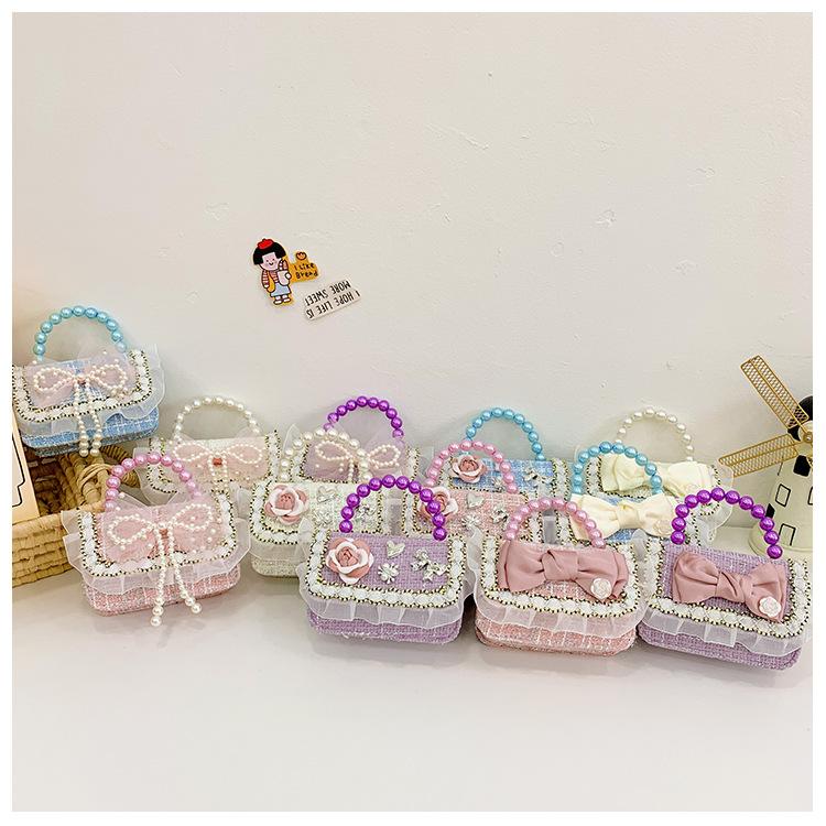 Bolso para Niñas Lindo Bolso de Hombro Estilo Chanel Pequeño de Lana con Lazo Princesa Perla Bolso de Mano Bolso Cruzado para Bebé