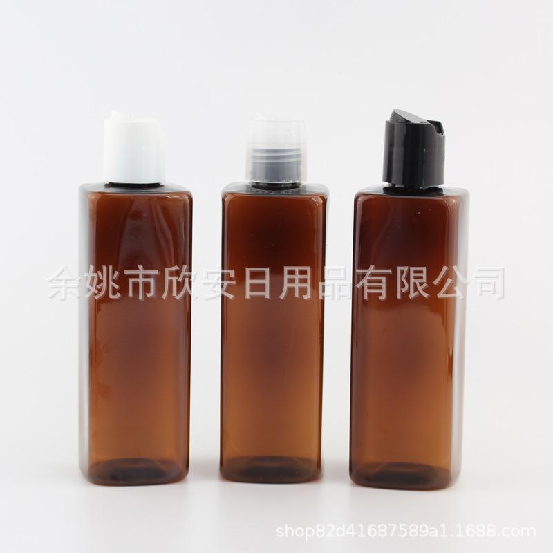 Botella cuadrada marrón de 250 ml con tapa abatible, botella de viaje para champú, limpiador facial, botella cuadrada de 250 ml, botella para suero