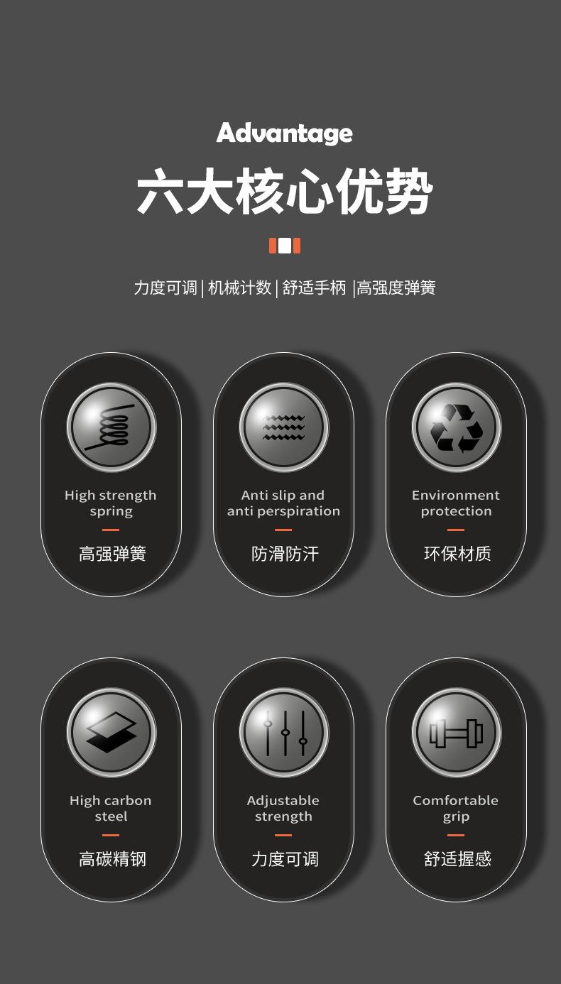 | PP reforzado+TPR+acero para muelles | Azul, verde, negro | 10kg-100kg | con contador electrónico | 205 gramos | 220 gramos | Bolsa esmerilada individual + embalaje de caja amarilla / caja de color |