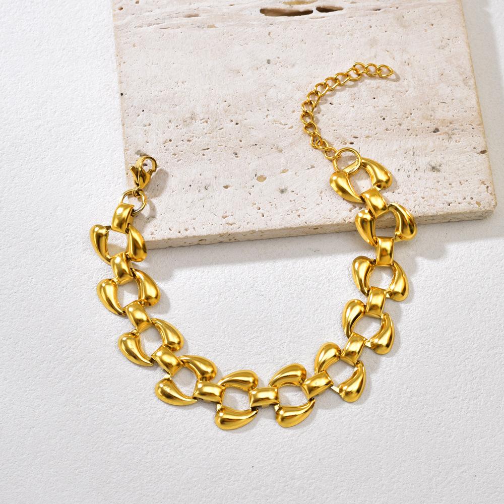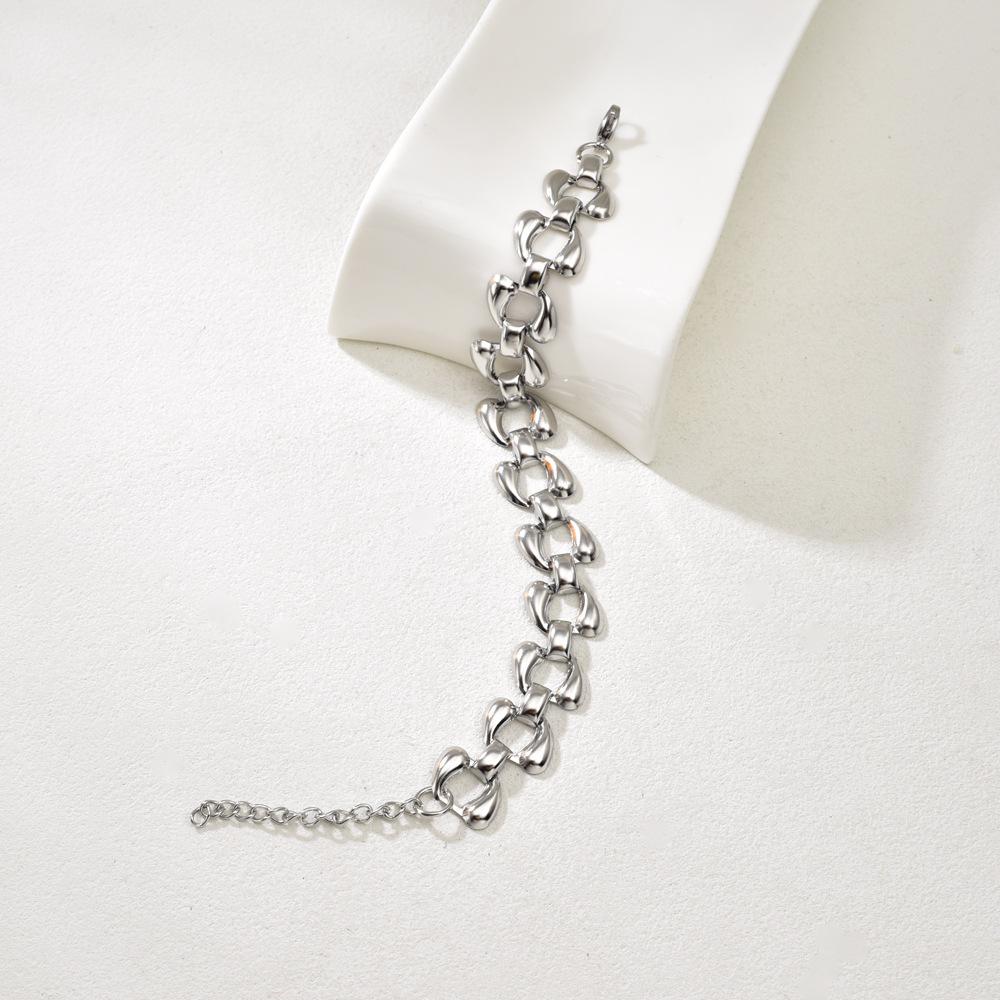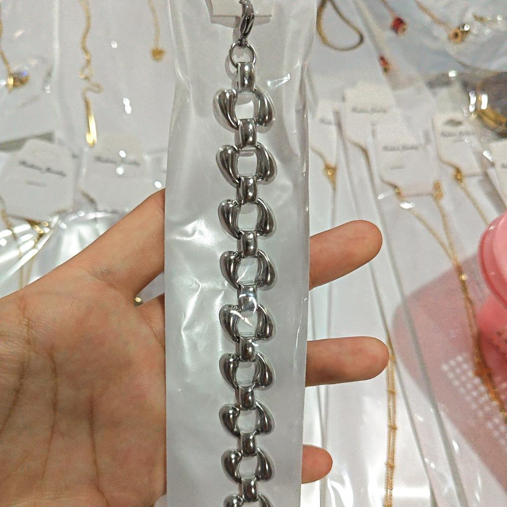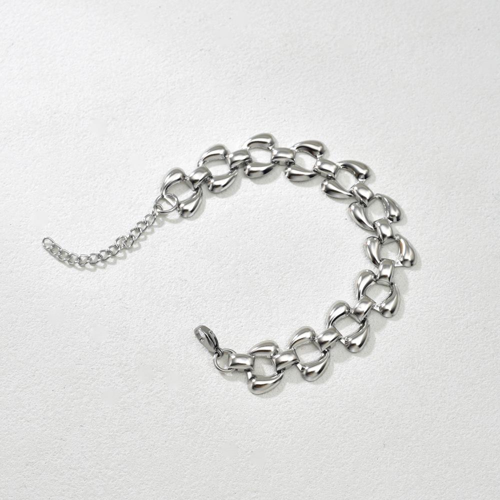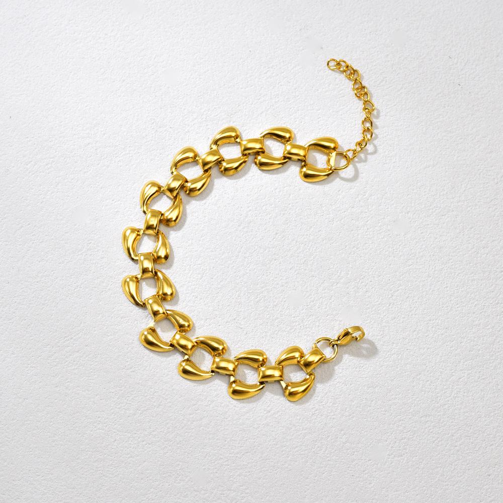 S33 Pulsera Europea y Americana Transfronteriza de Acero Inoxidable Chapado al Vacío Cadena de Doble Gota de Agua Personalidad Joyería de Mano para Mujer Venta al Mayoreo