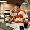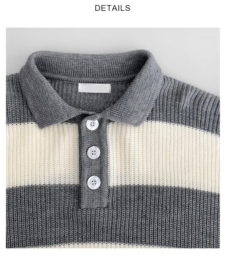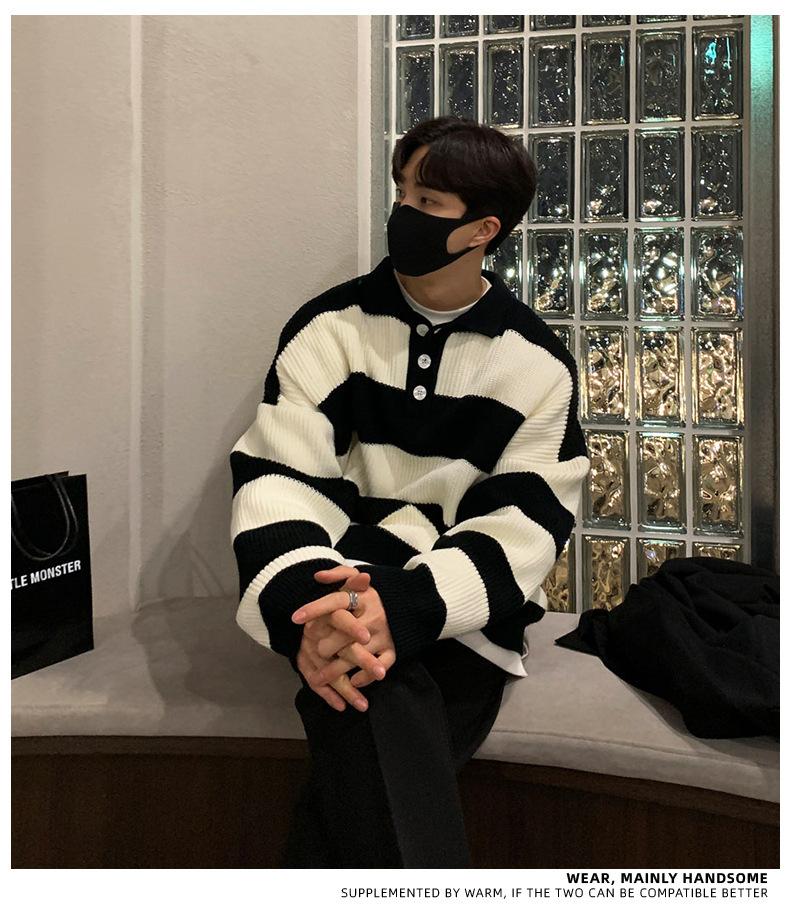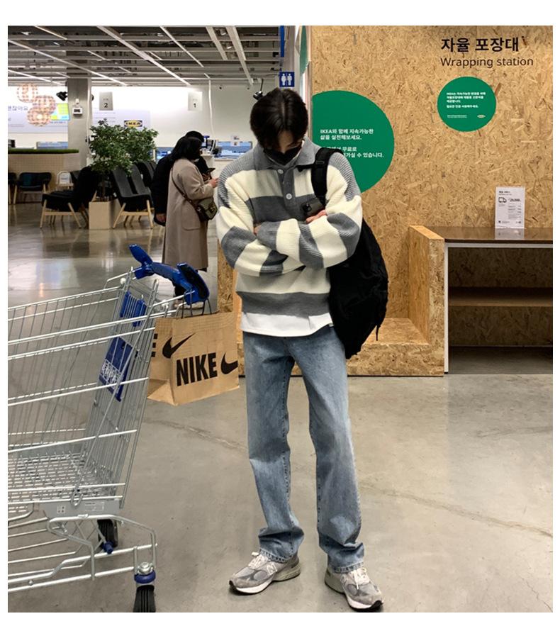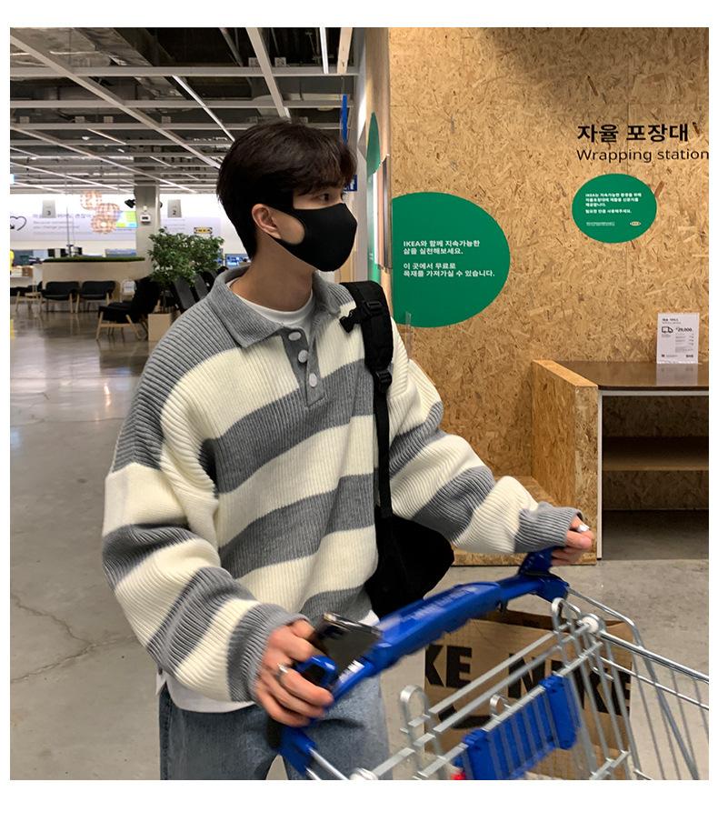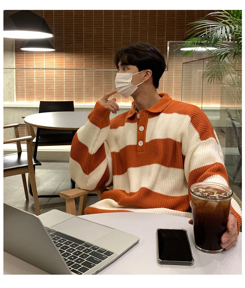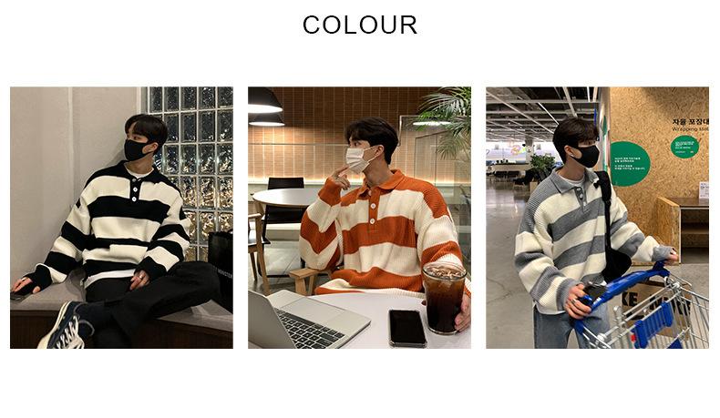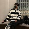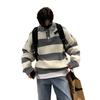 Nuevo Otoño/Invierno Camisa POLO Cuello Vuelto Suéter de Punto a Rayas para Hombre Abrigo Estilo Holgado Perezoso Comercio Exterior Transfronterizo Venta al por Mayor