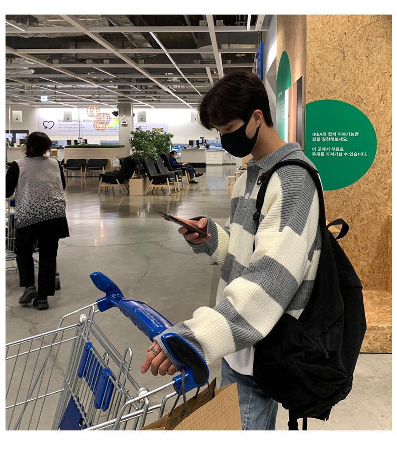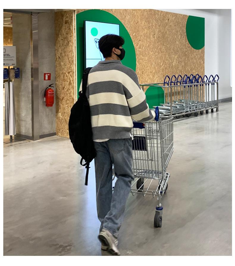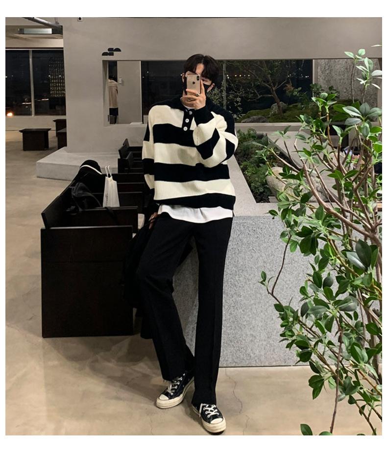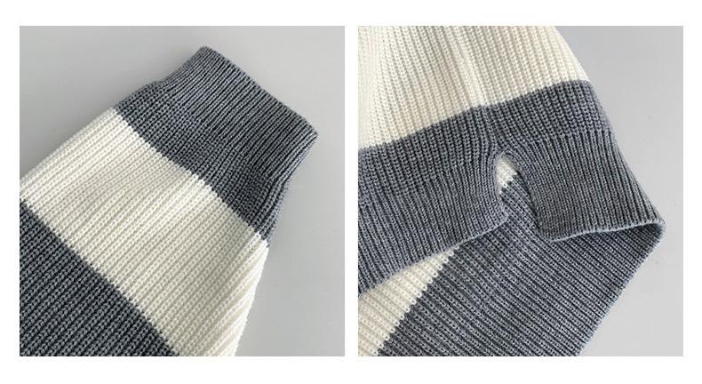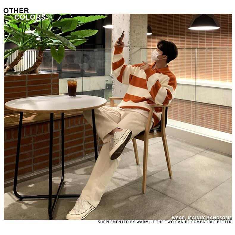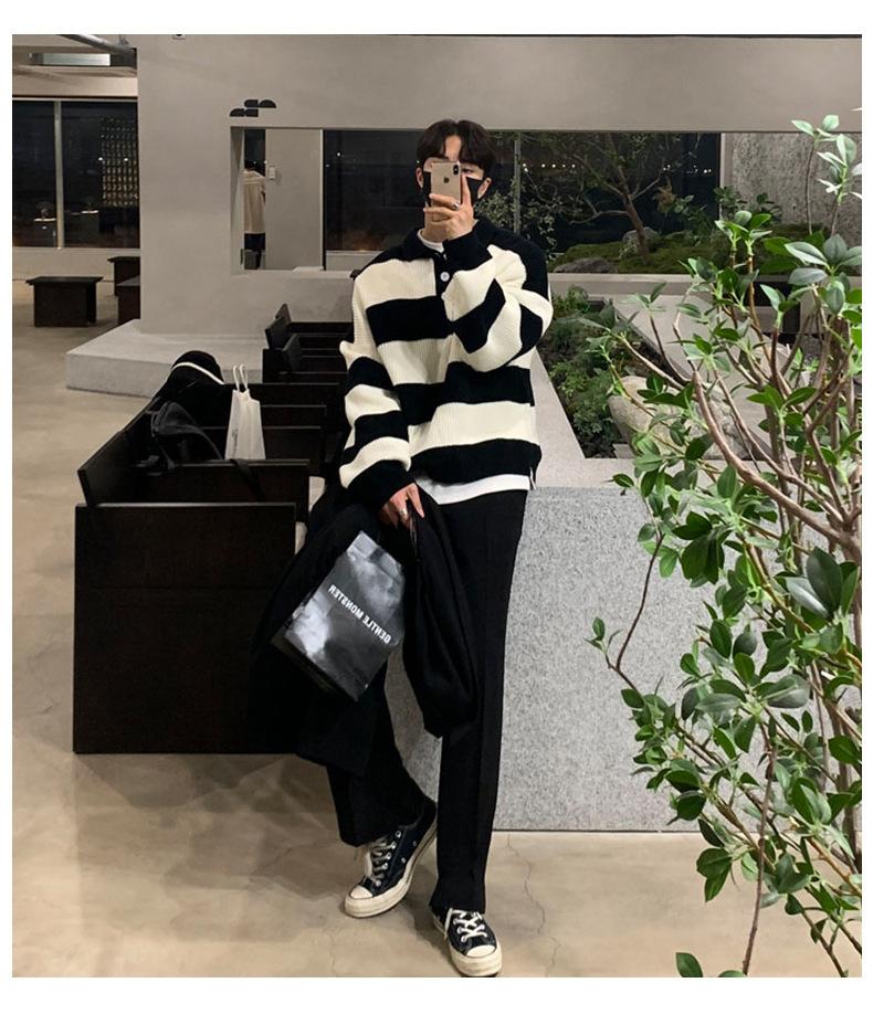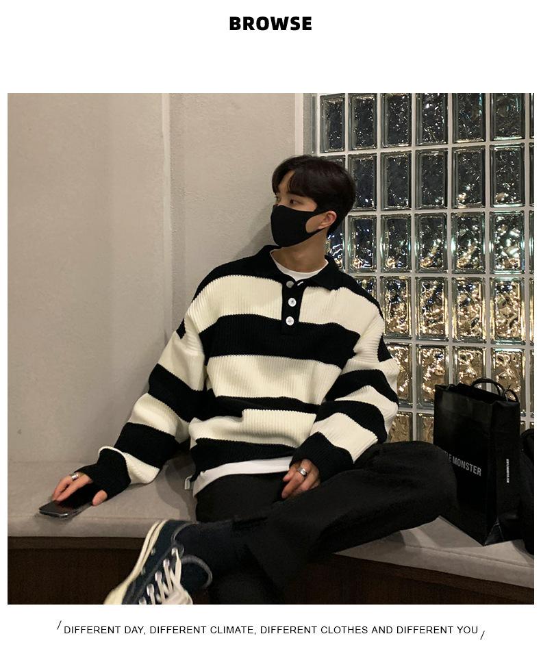 Nuevo Otoño/Invierno Camisa POLO Cuello Vuelto Suéter de Punto a Rayas para Hombre Abrigo Estilo Holgado Perezoso Comercio Exterior Transfronterizo Venta al por Mayor