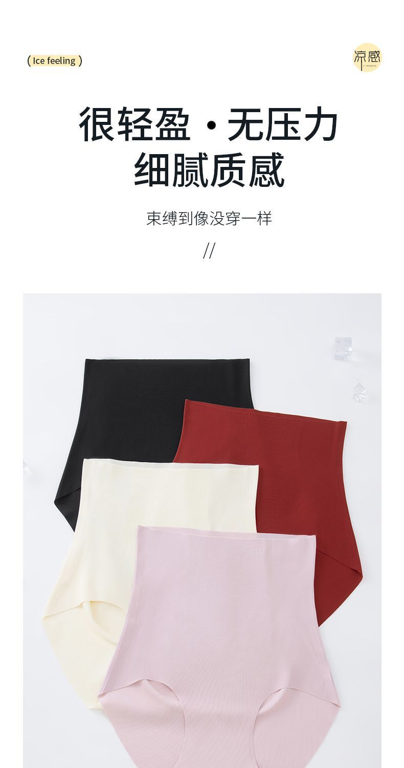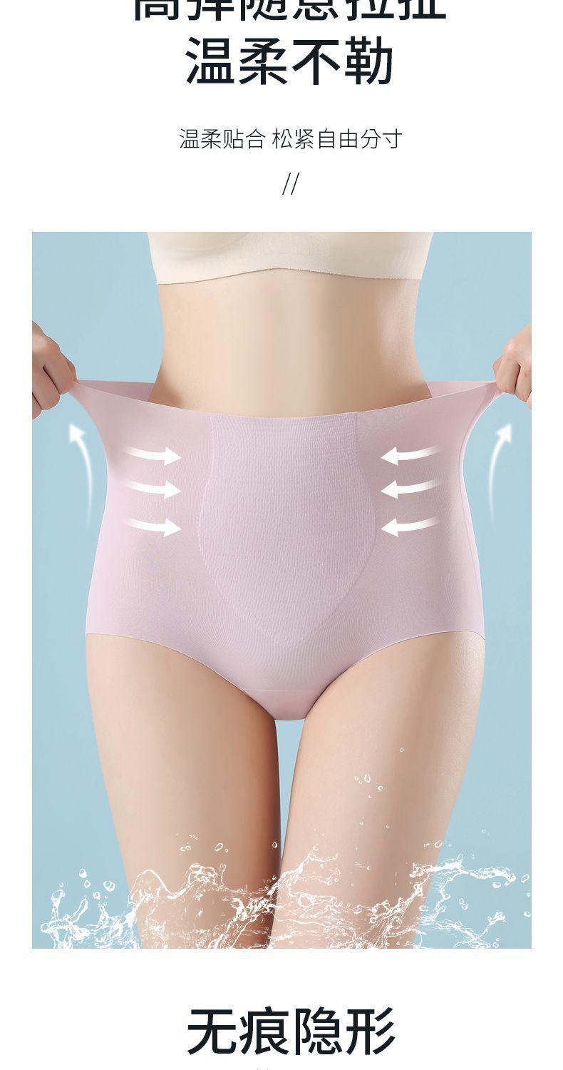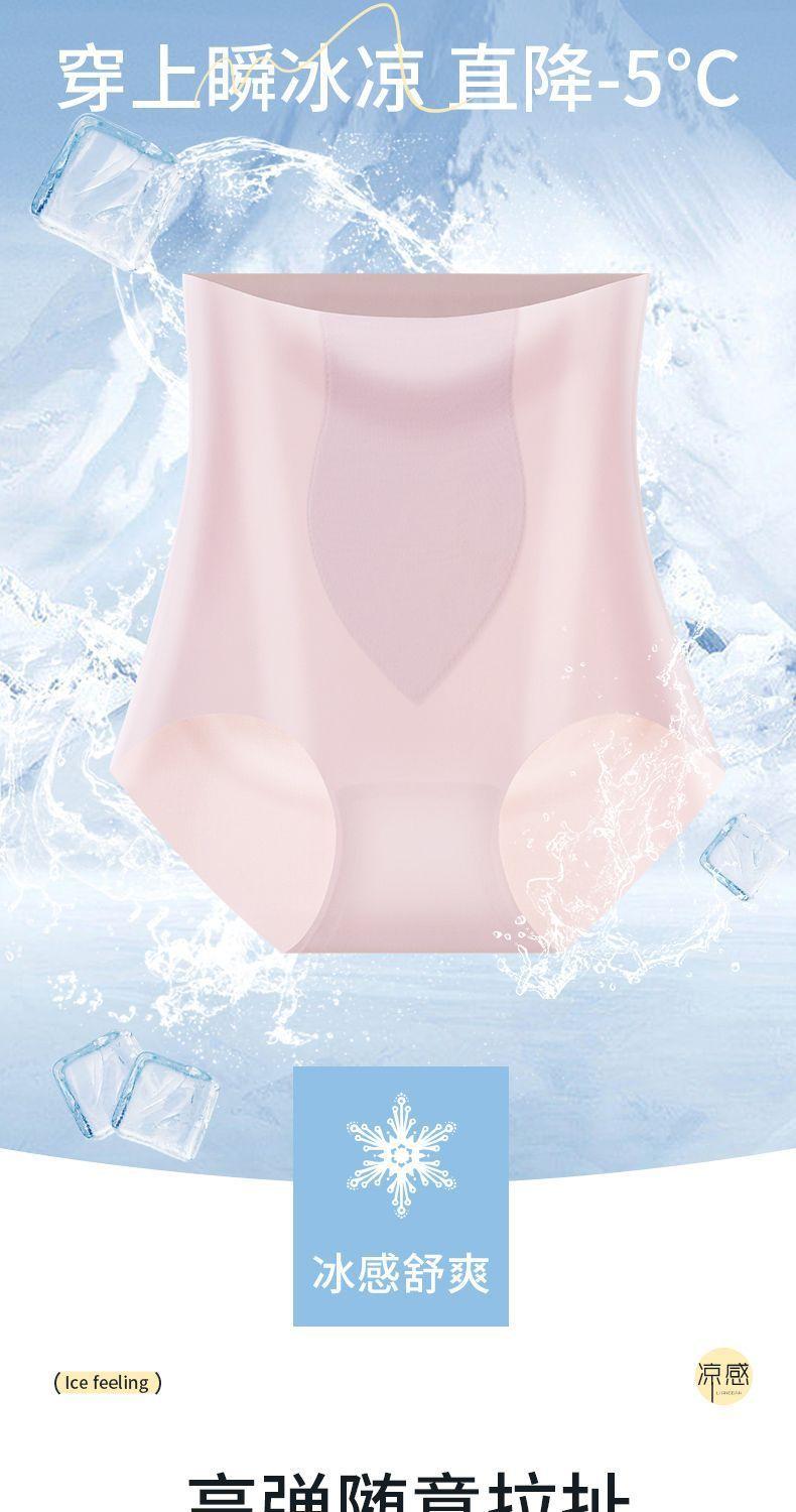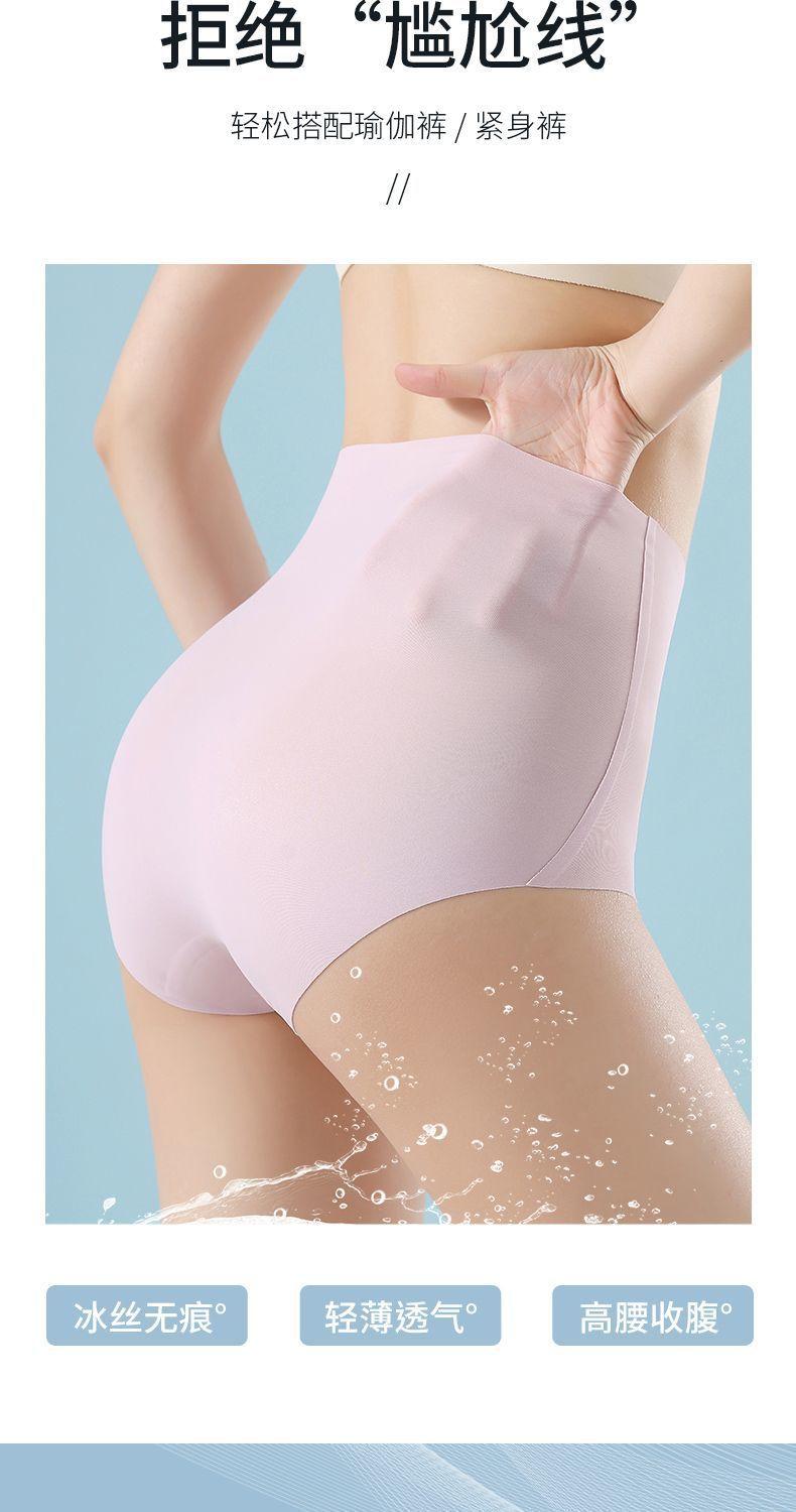 Estilo caliente de comercio exterior transfronterizo, ropa interior triangular de seda helada sin costuras de talle alto para mujer, cómoda, transpirable, color sólido, control de abdomen, levanta caderas