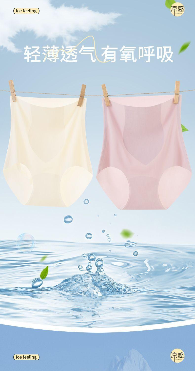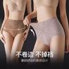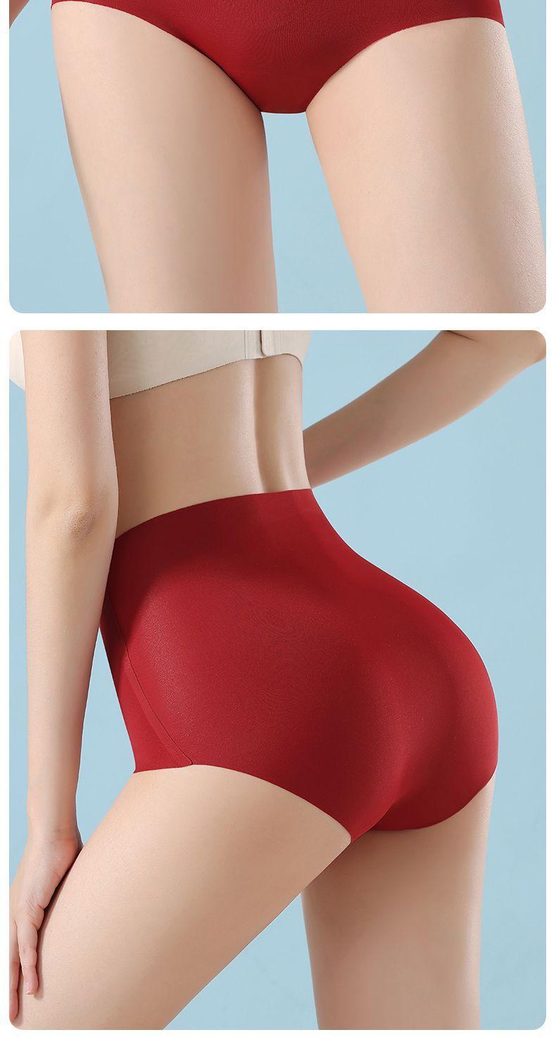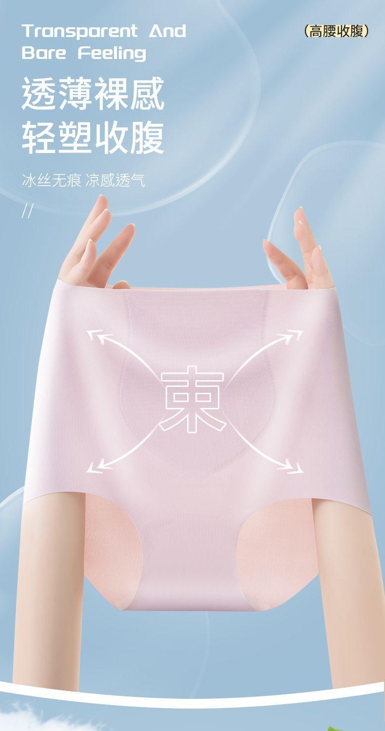 Estilo caliente de comercio exterior transfronterizo, ropa interior triangular de seda helada sin costuras de talle alto para mujer, cómoda, transpirable, color sólido, control de abdomen, levanta caderas