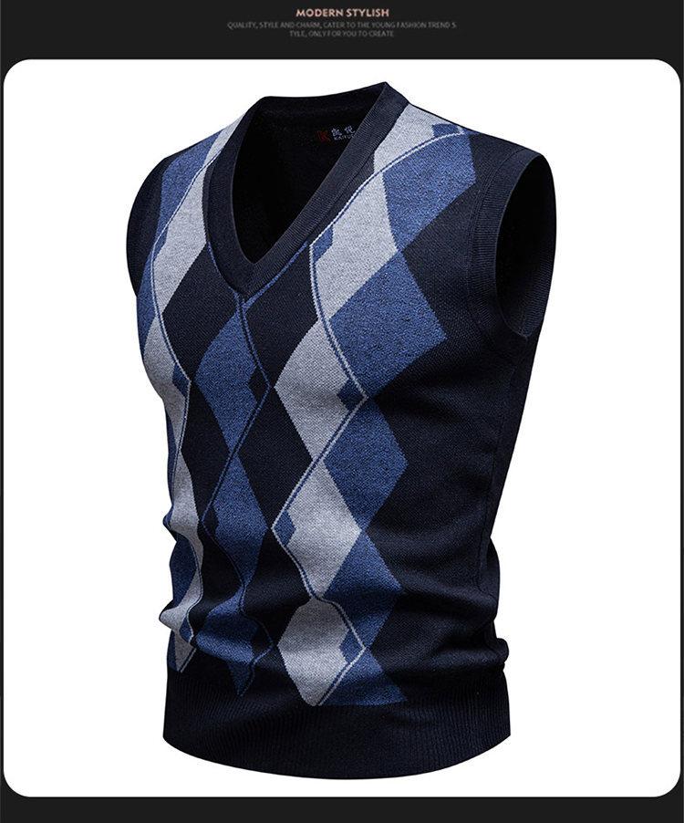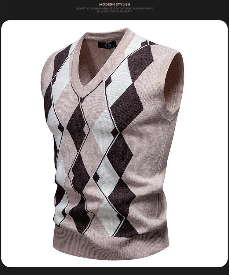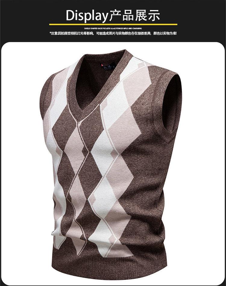 Chaleco Suéter Casual de Punto con Cuello en V para Hombre Comercio Exterior 2025 Estilo Profesional Argyle Prendas de Punto Moda para Hombre Chaleco Exterior