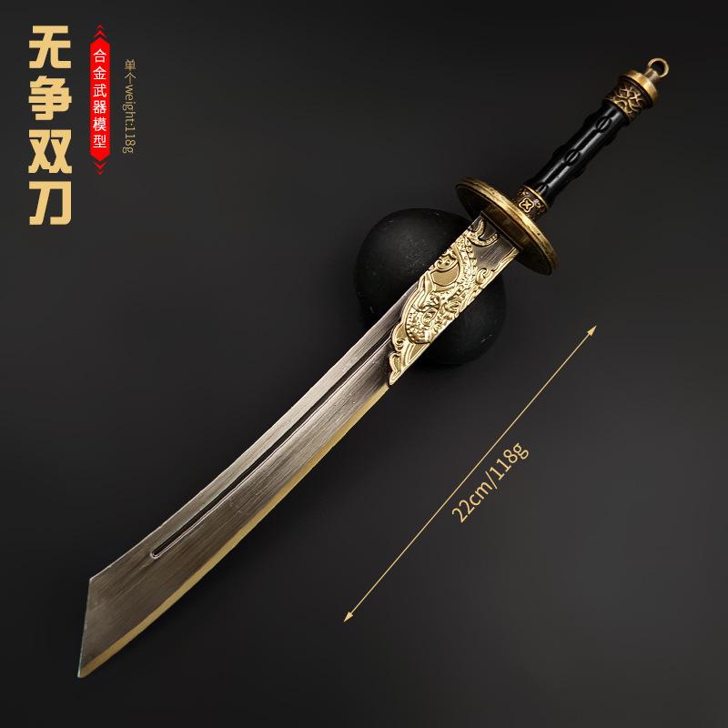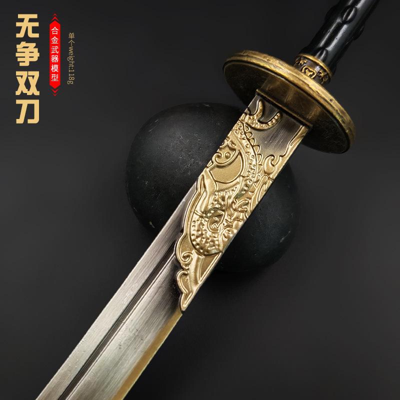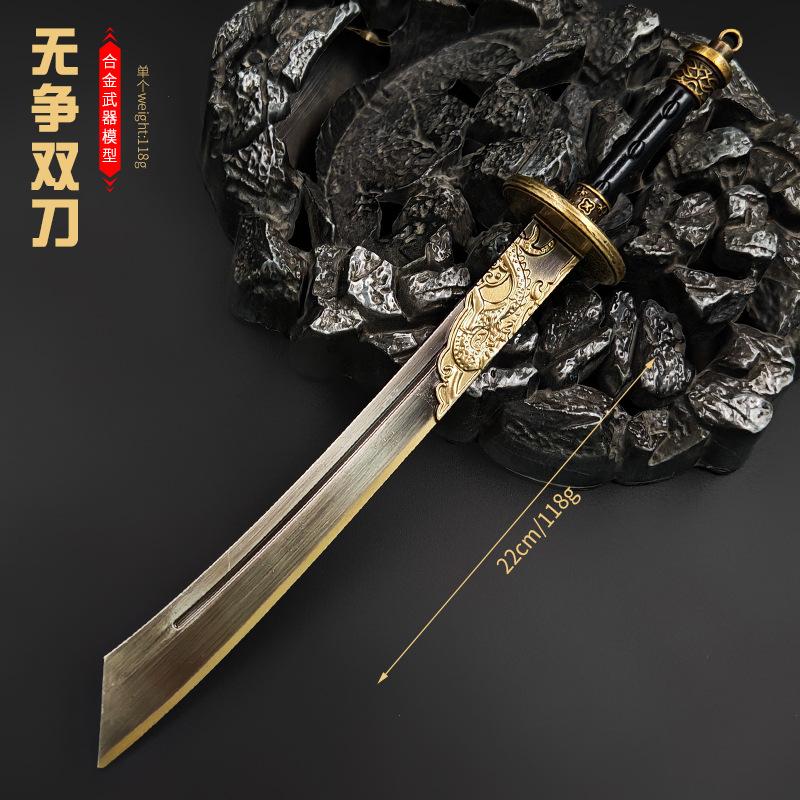 Compra Yanyun Dieciséis Periféricos Metal 22cm Modelo de Arma de Espadas Dobles Sin Disputa Metal Juguete Aleación Sin Filo al por mayor en Joom.pro