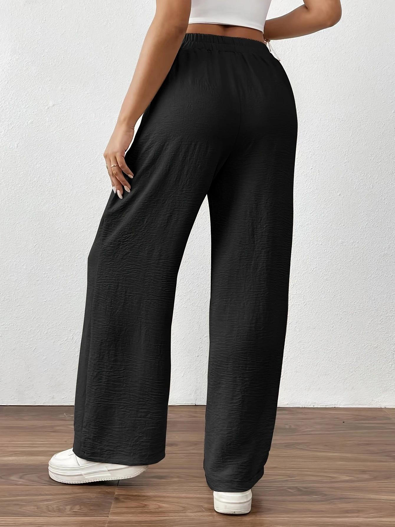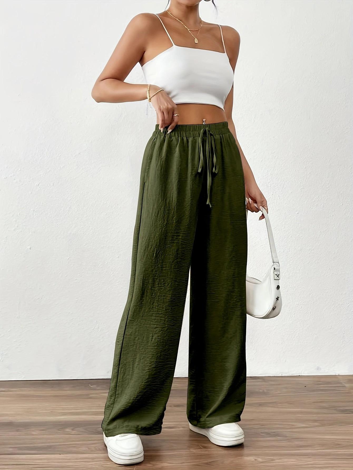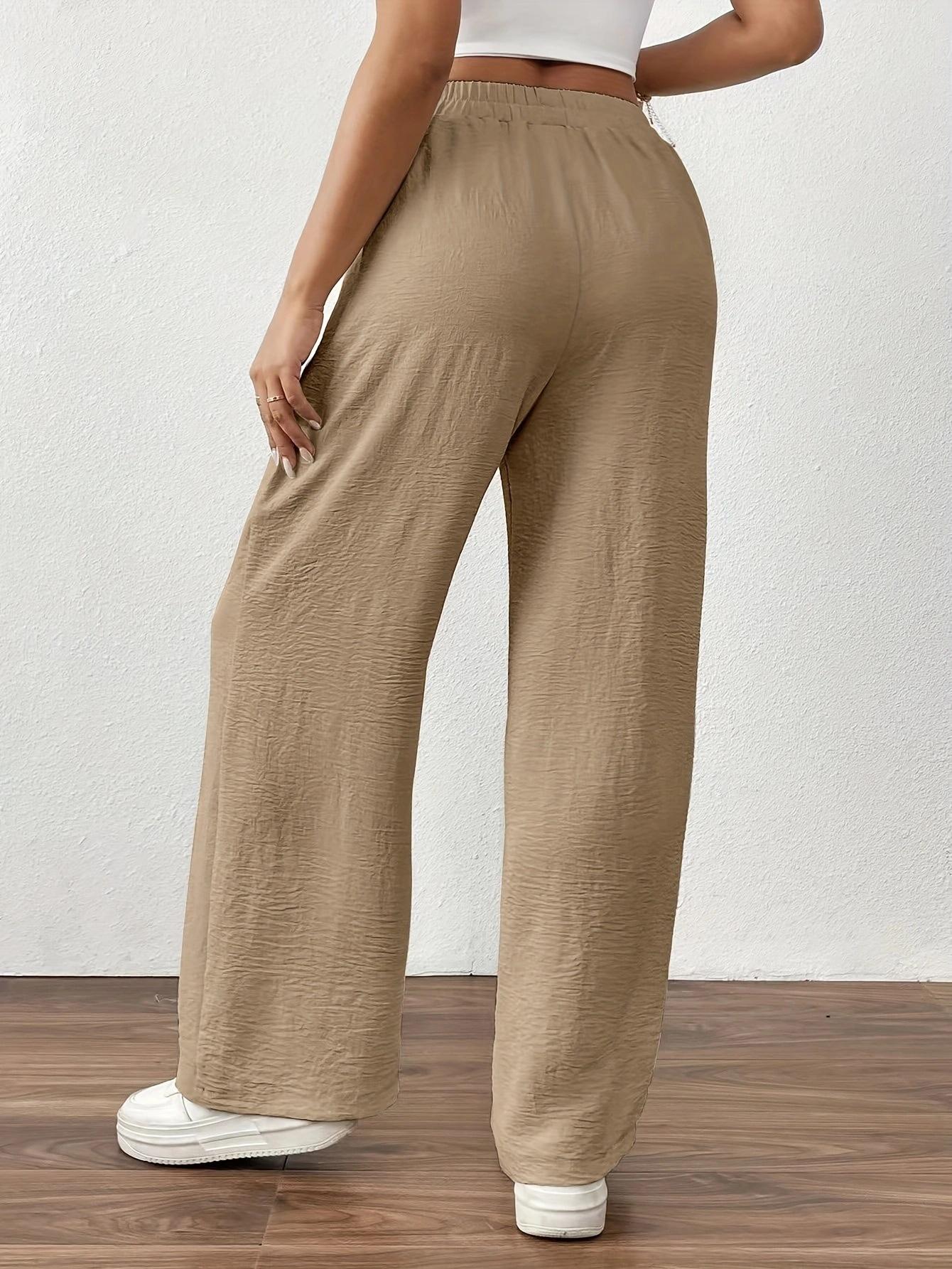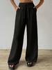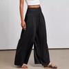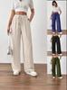 Pantalones casuales de pierna ancha para mujer, nuevos transfronterizos europeos y americanos, color sólido, cintura elástica, versátiles, holgados, pantalones largos, pantalones de mujer