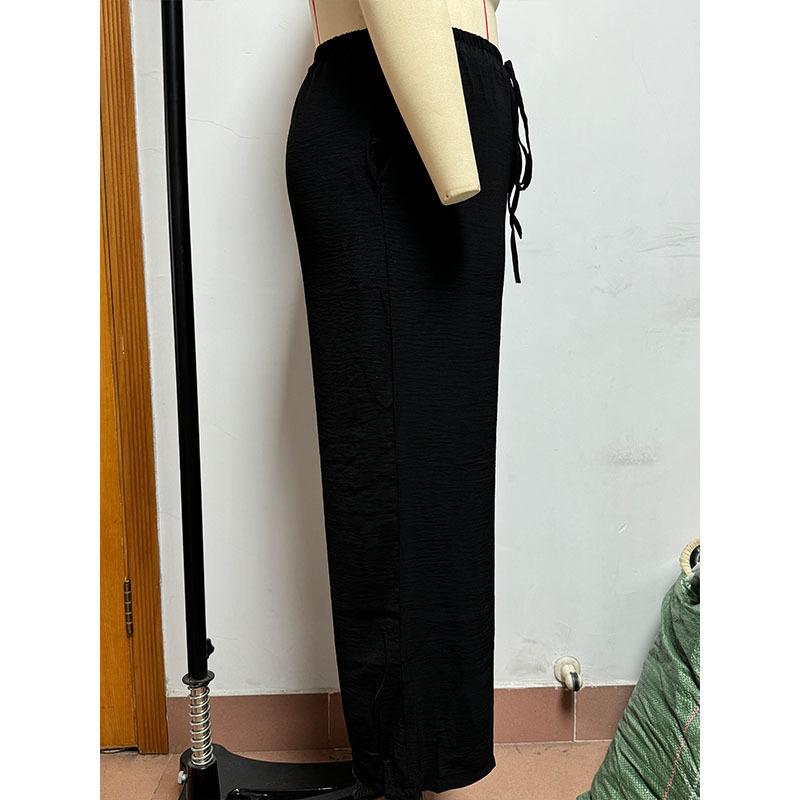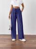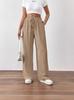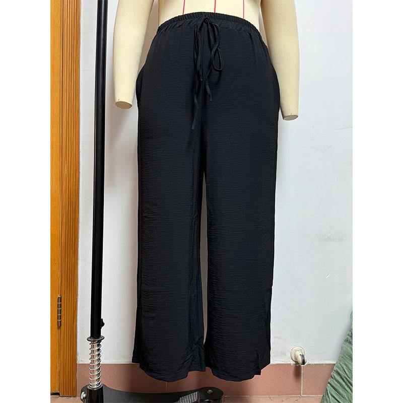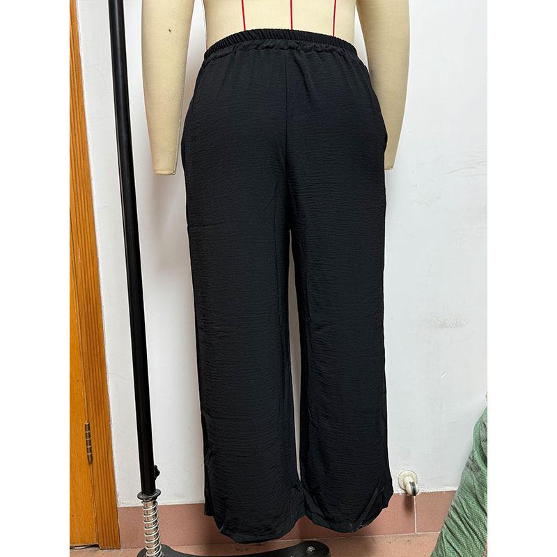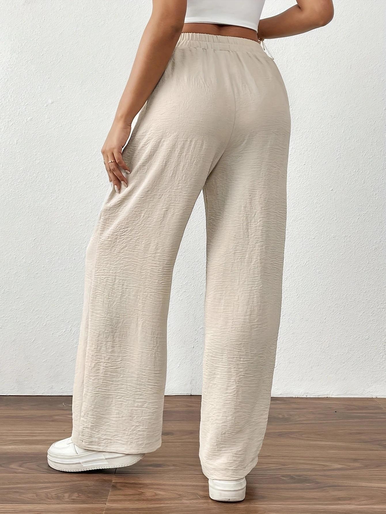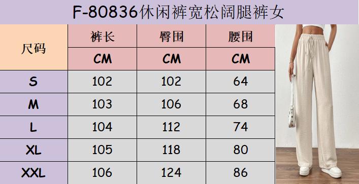 Pantalones casuales de pierna ancha para mujer, nuevos transfronterizos europeos y americanos, color sólido, cintura elástica, versátiles, holgados, pantalones largos, pantalones de mujer