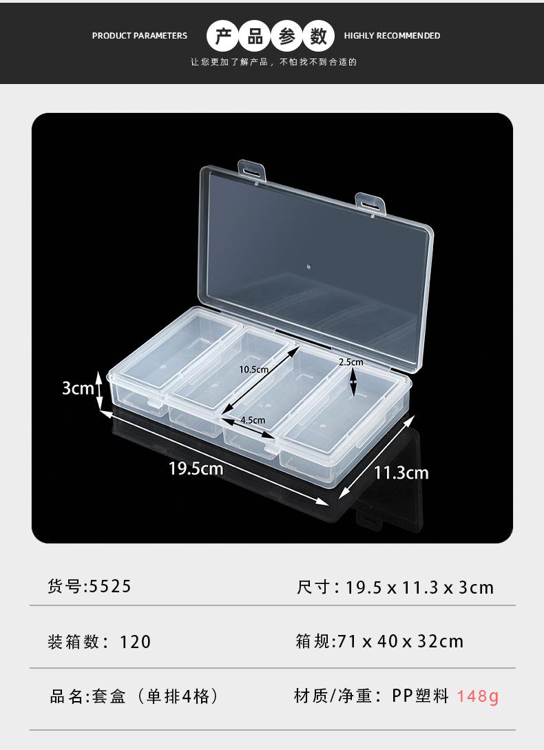 19.5ⅹ11.3ⅹ3cm Caja de Embalaje Transfronterizo 1 Fila 4 Rejillas Caja Set Caja Dentro de Caja Nuevo Material PP Caja Venta Directa de Fábrica Yiwu Gran Stock, Acepta Personalización de Muestra