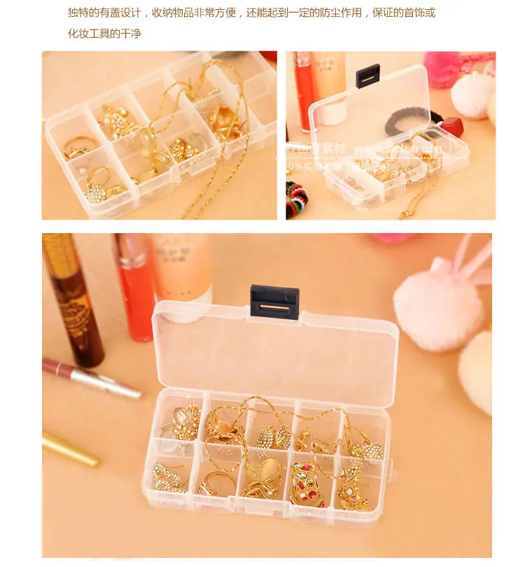 Caja de 10 compartimentos caja de almacenamiento de plástico desmontable transparente caja de 10 compartimentos aretes joyero caja de almacenamiento caja de almacenamiento
