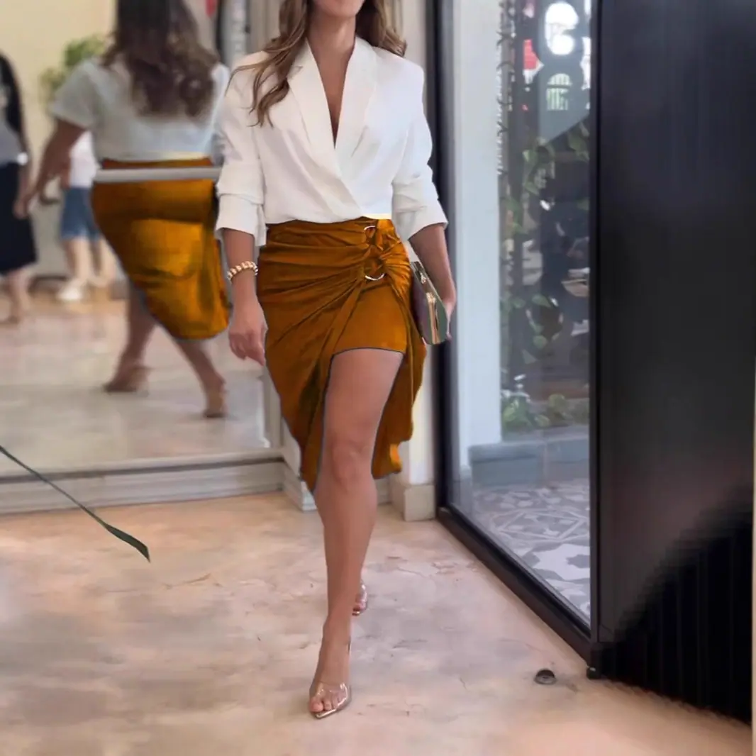 2025 Amazon Primavera Nuevo Transfronterizo Moda Europea y Americana para Mujer Falda Color Sólido Conjunto de Camisa de Moda