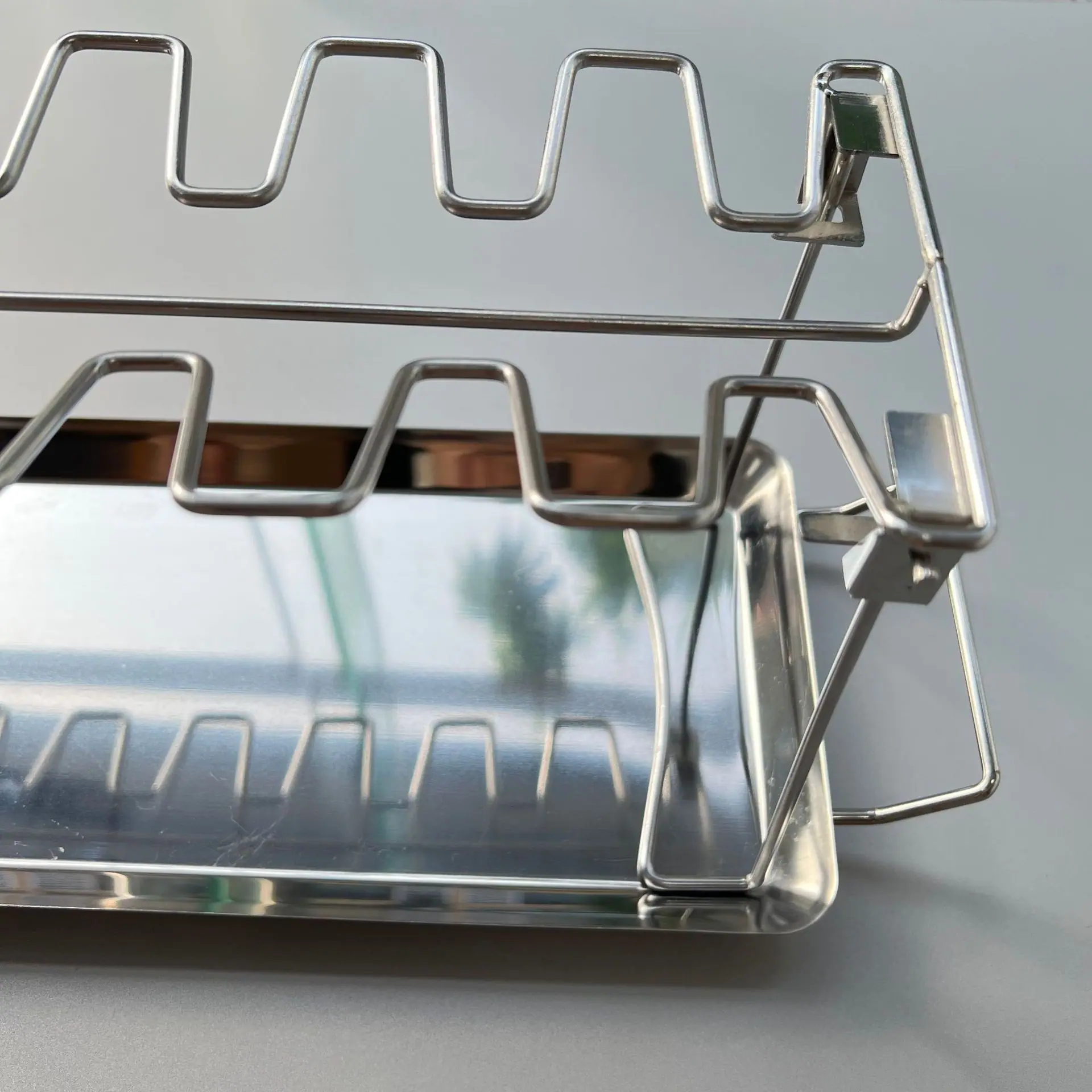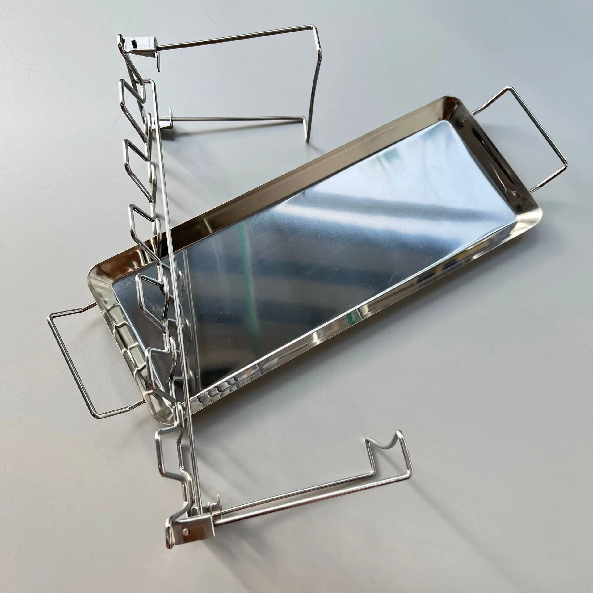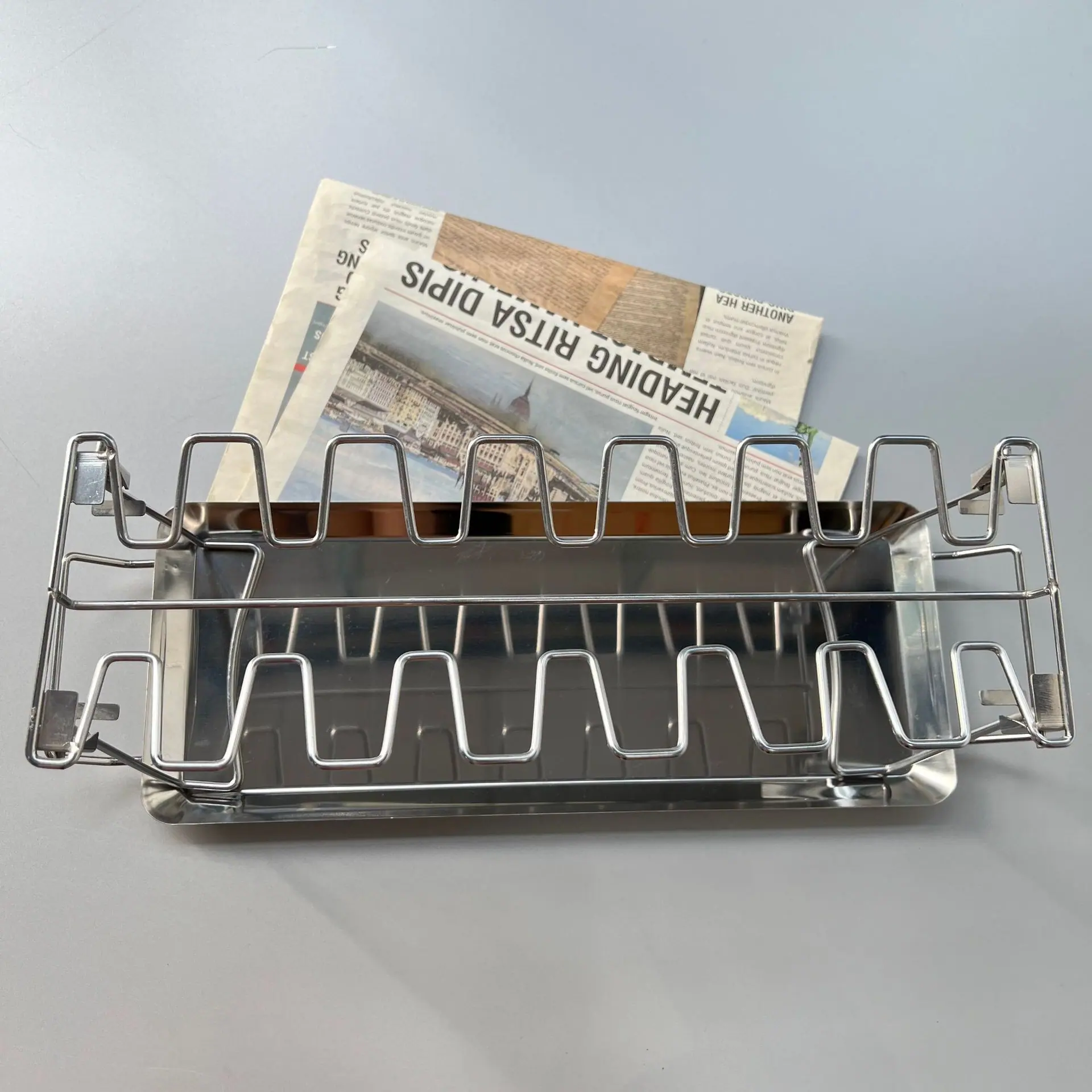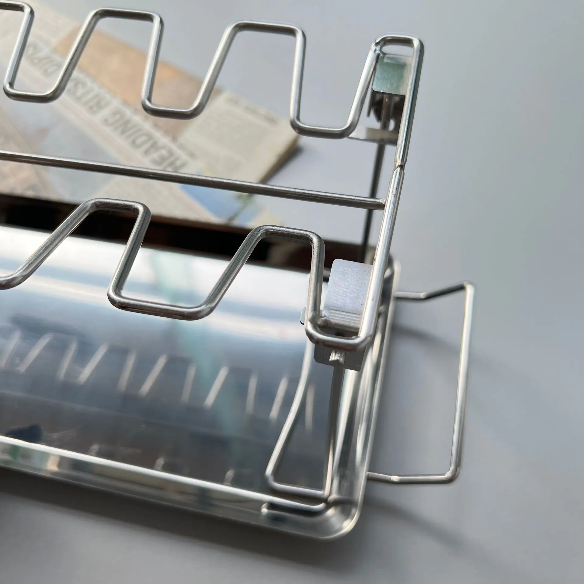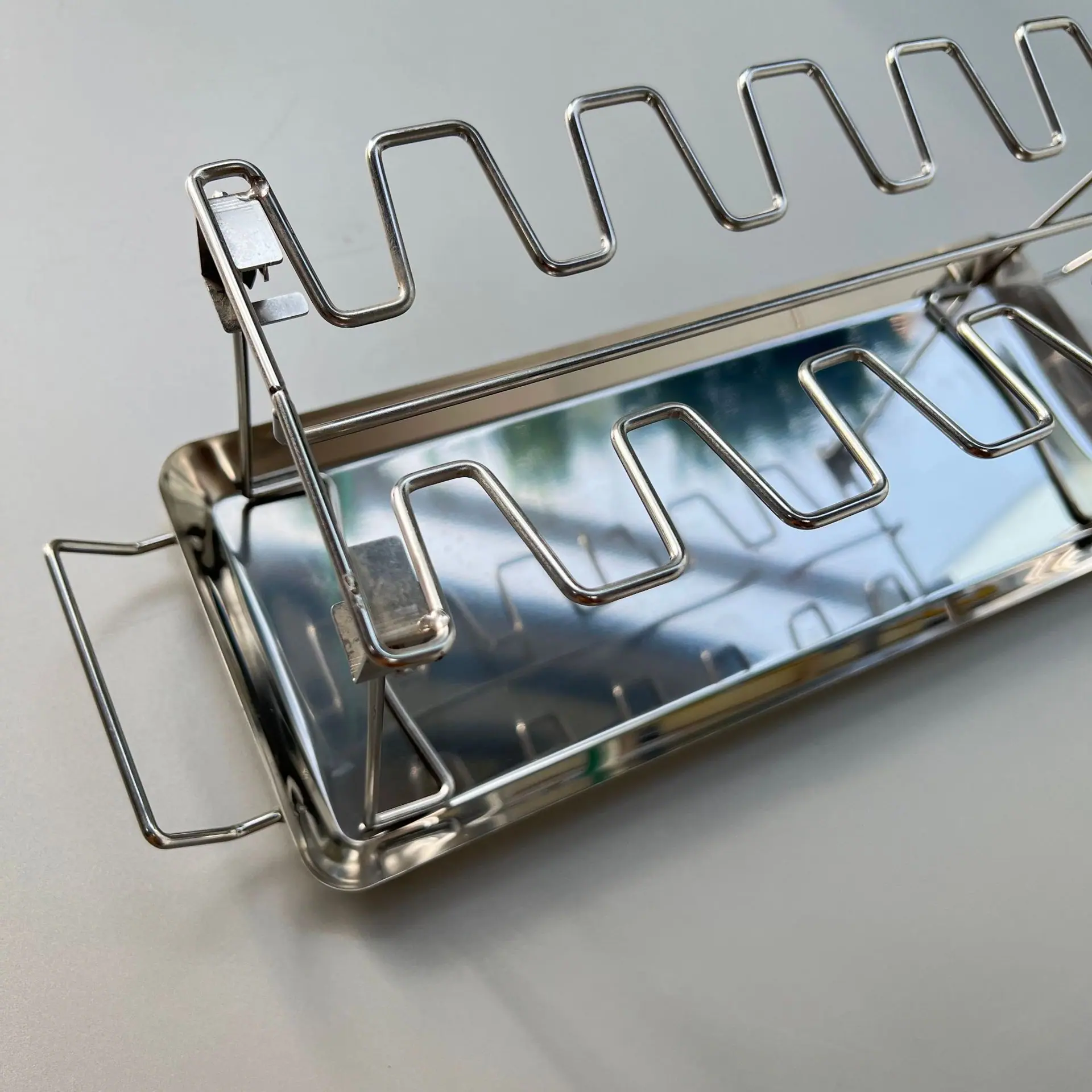 Acero Inoxidable Parrilla para Piernas de Pollo de 14 Rejillas Rack para Barbacoa Plegable con Bandeja Base Multifuncional Plegable Portátil
