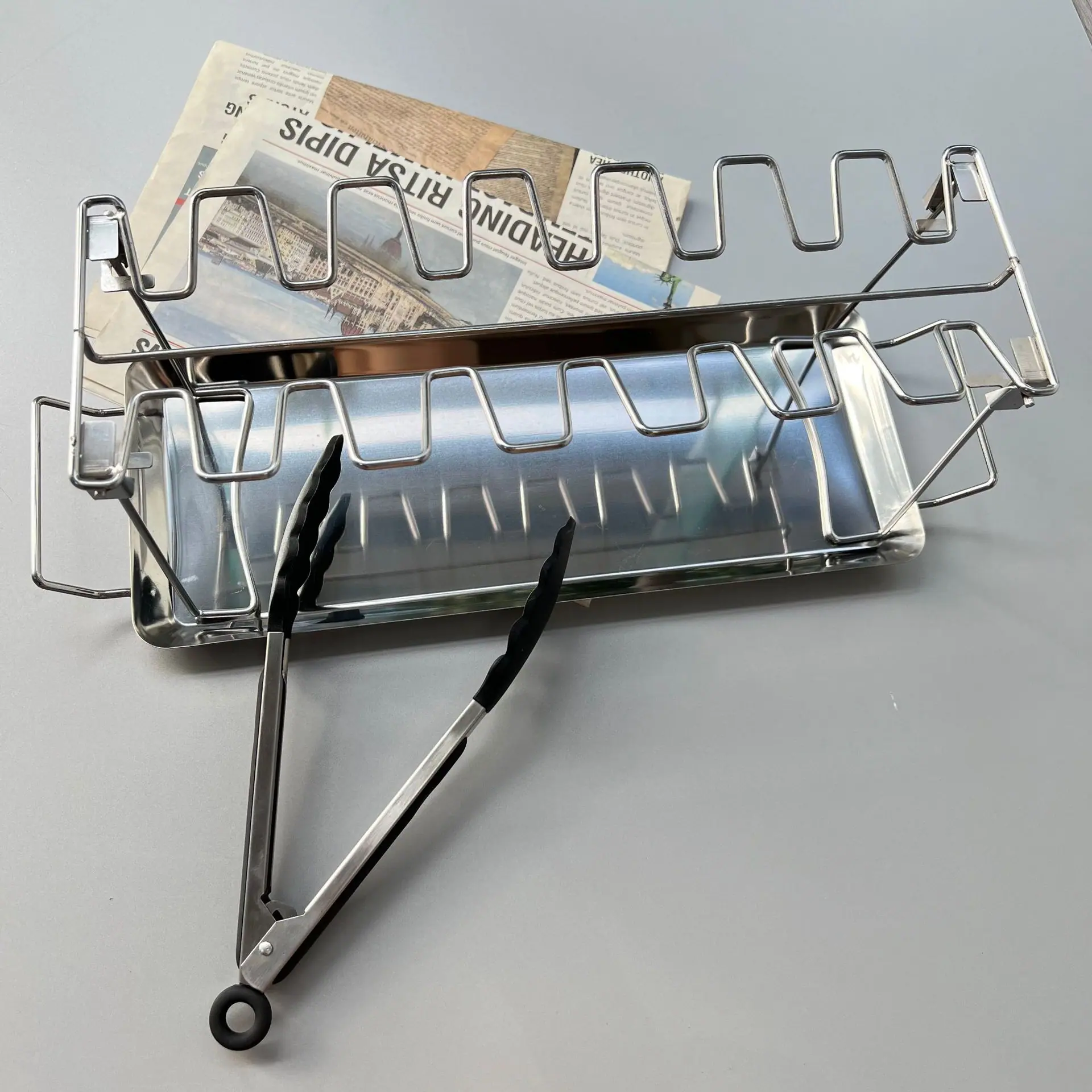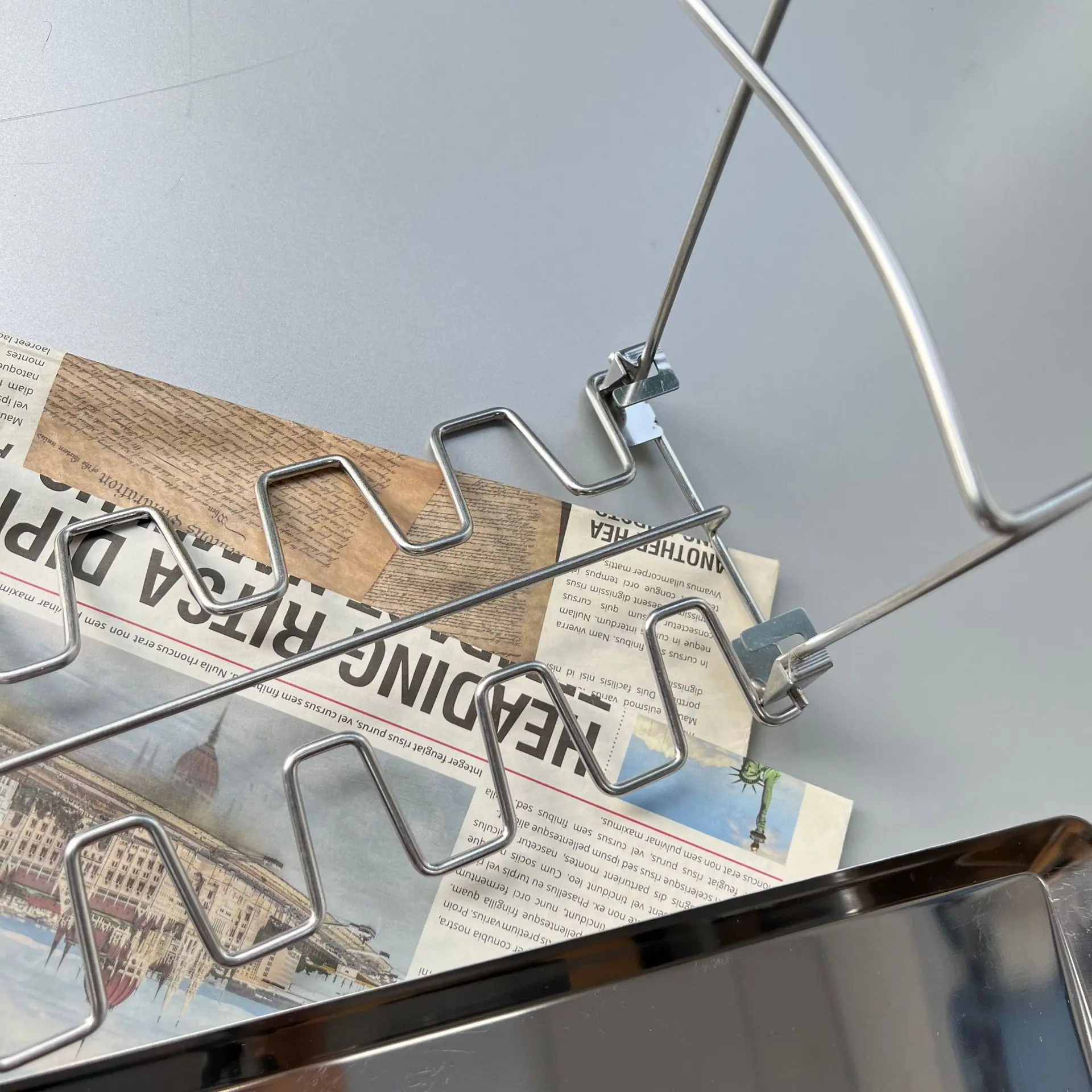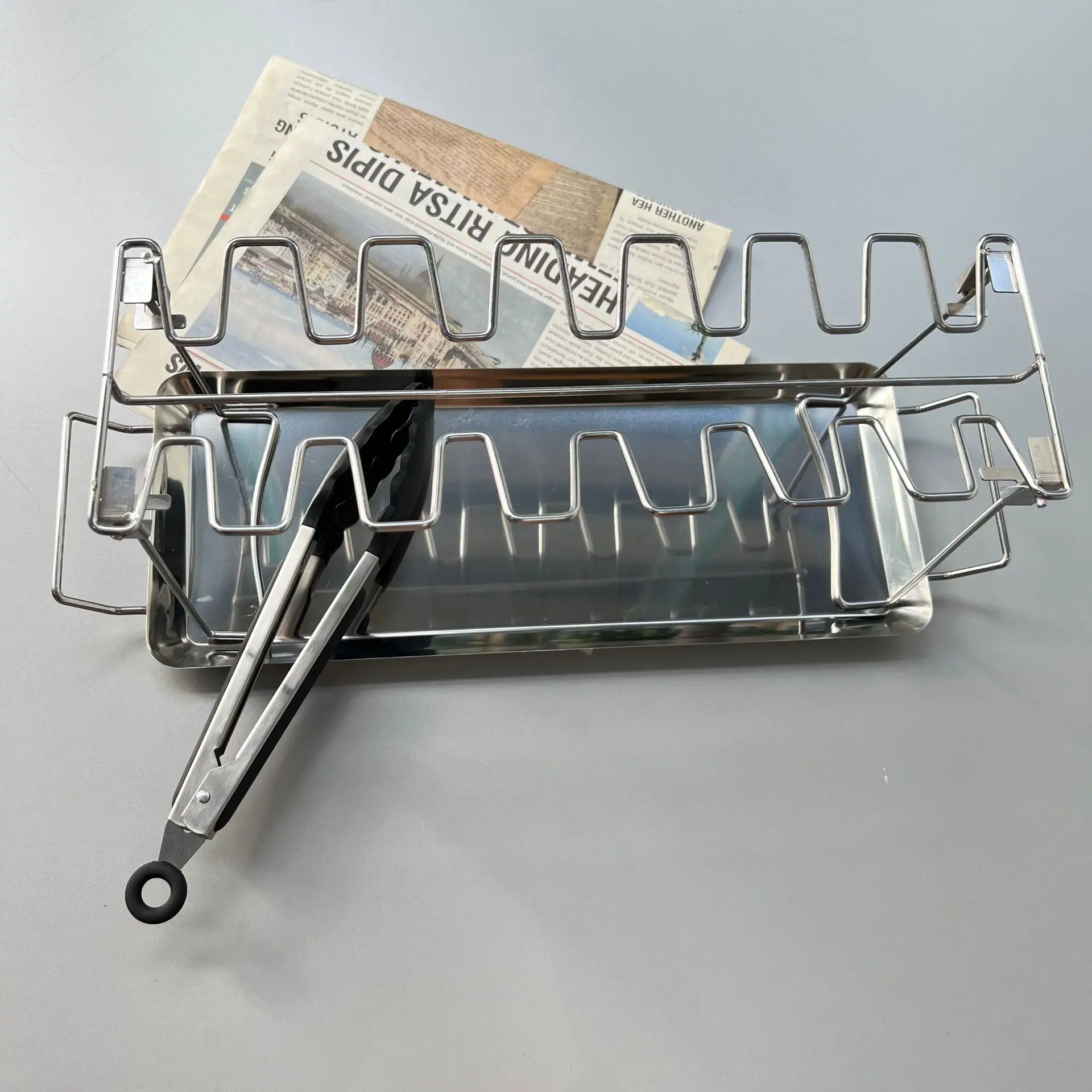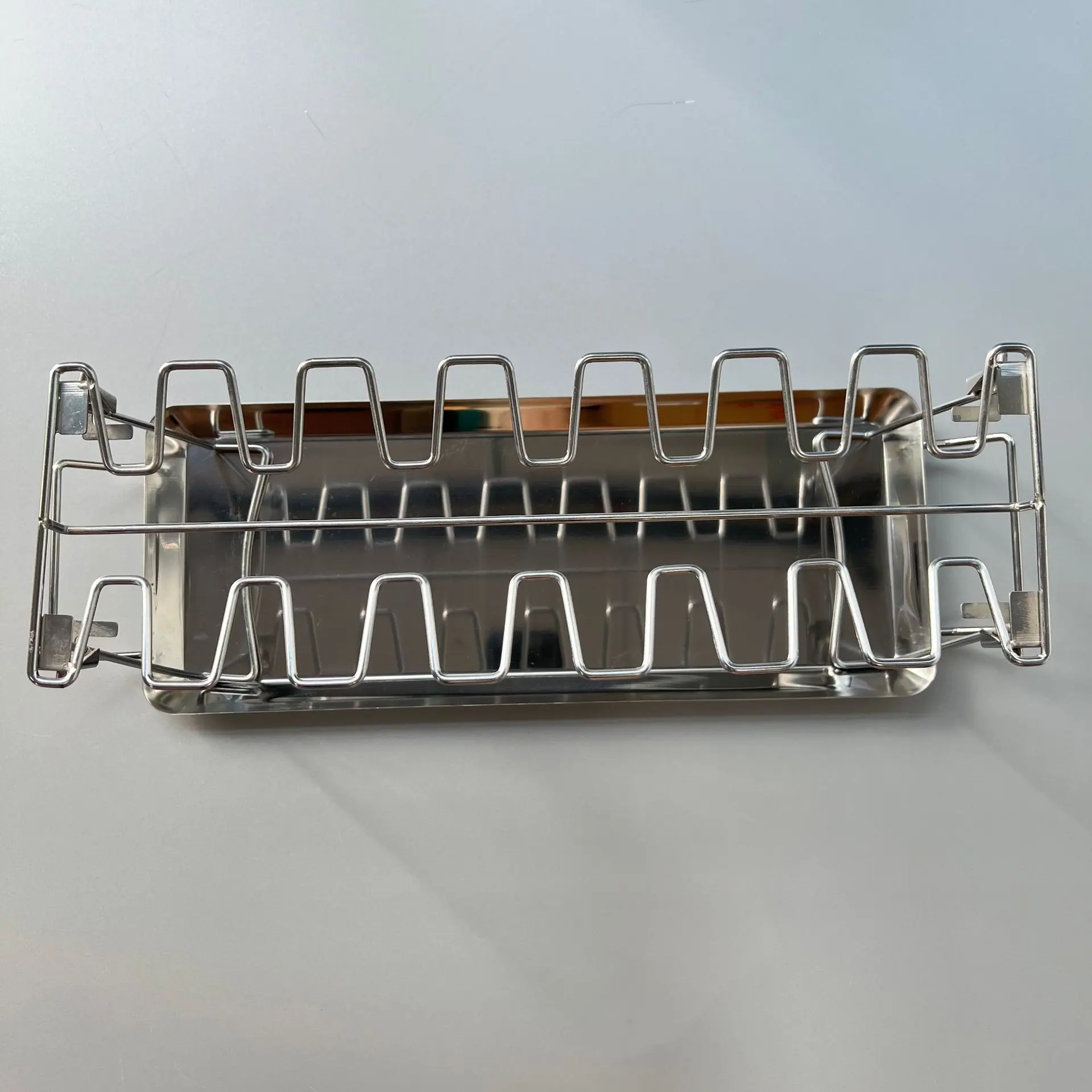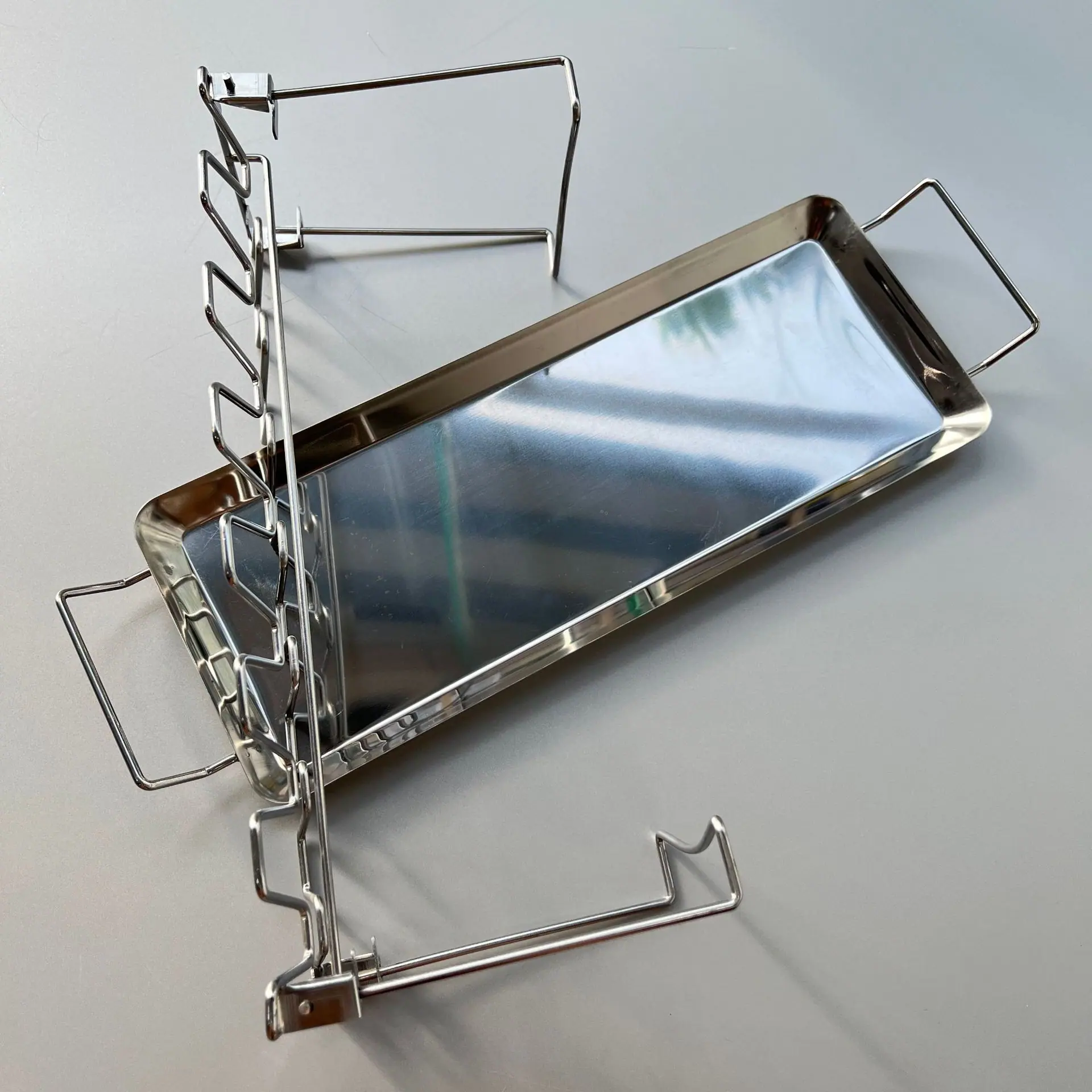 Acero Inoxidable Parrilla para Piernas de Pollo de 14 Rejillas Rack para Barbacoa Plegable con Bandeja Base Multifuncional Plegable Portátil