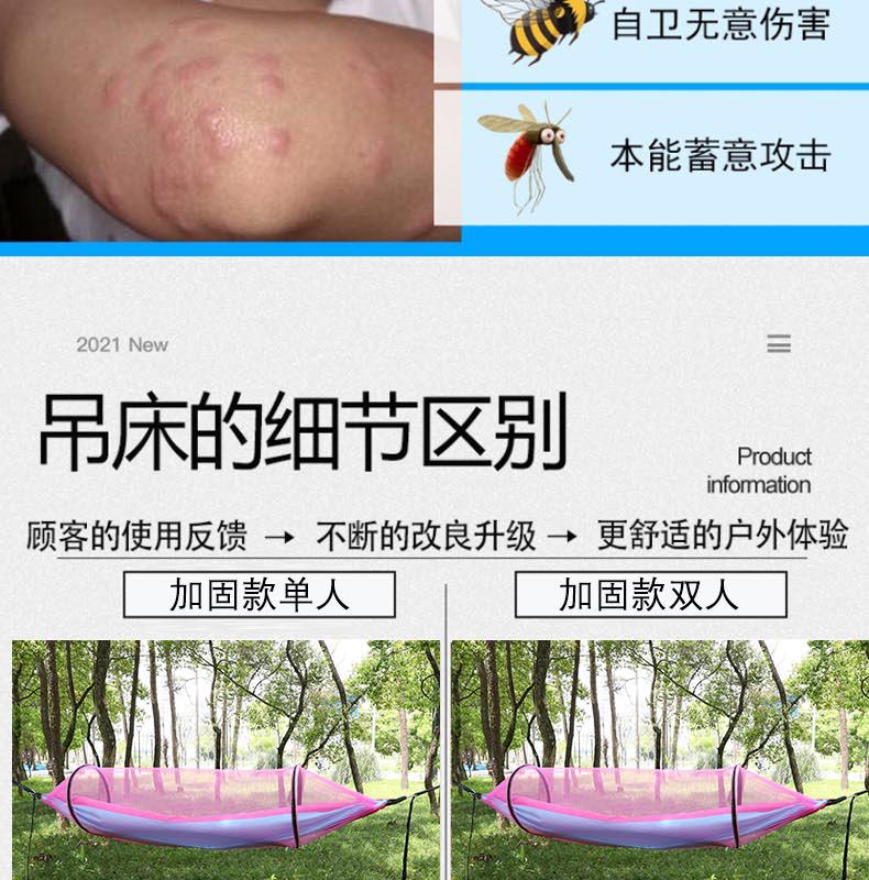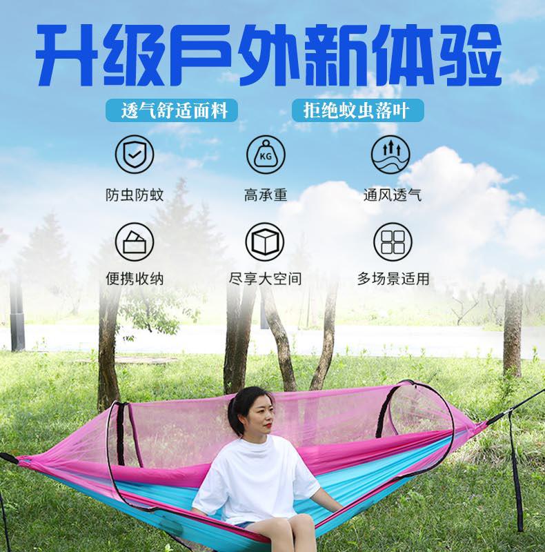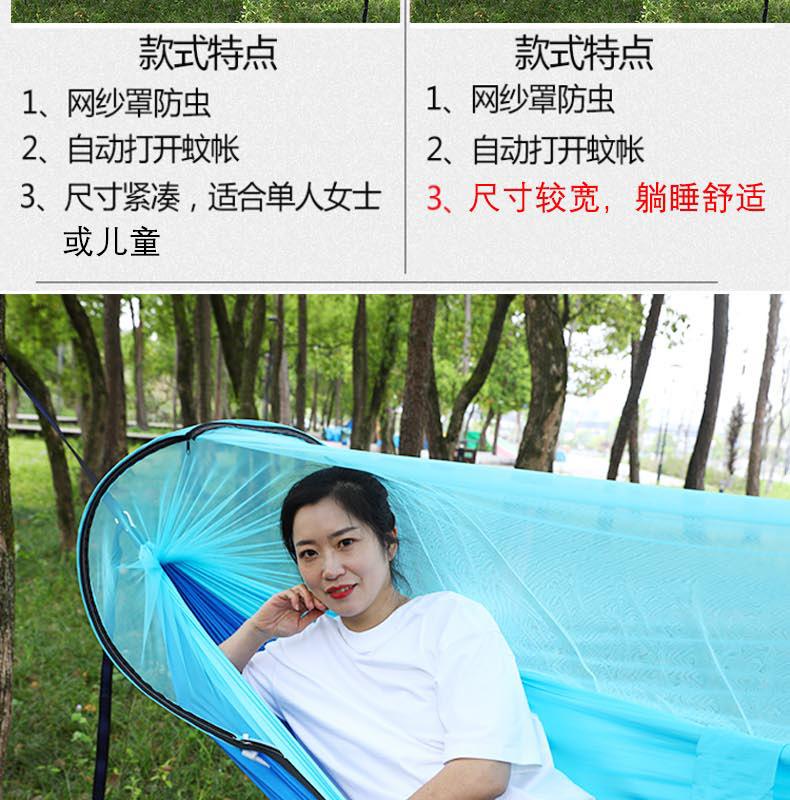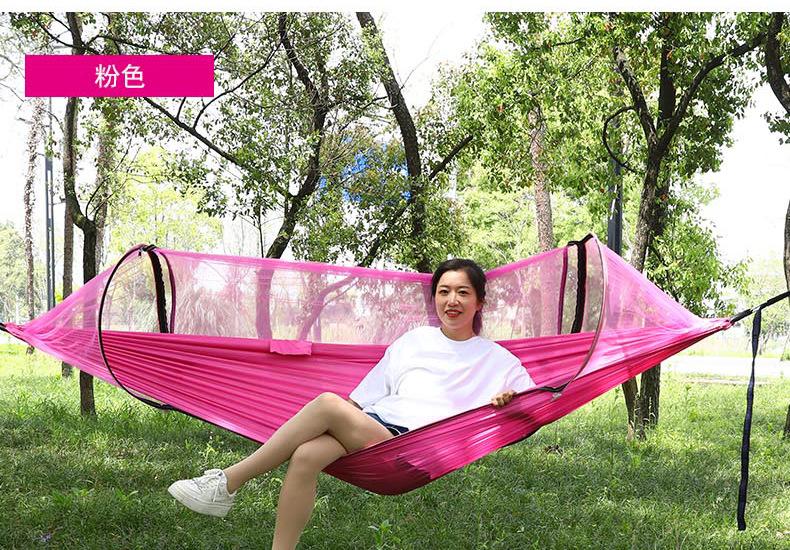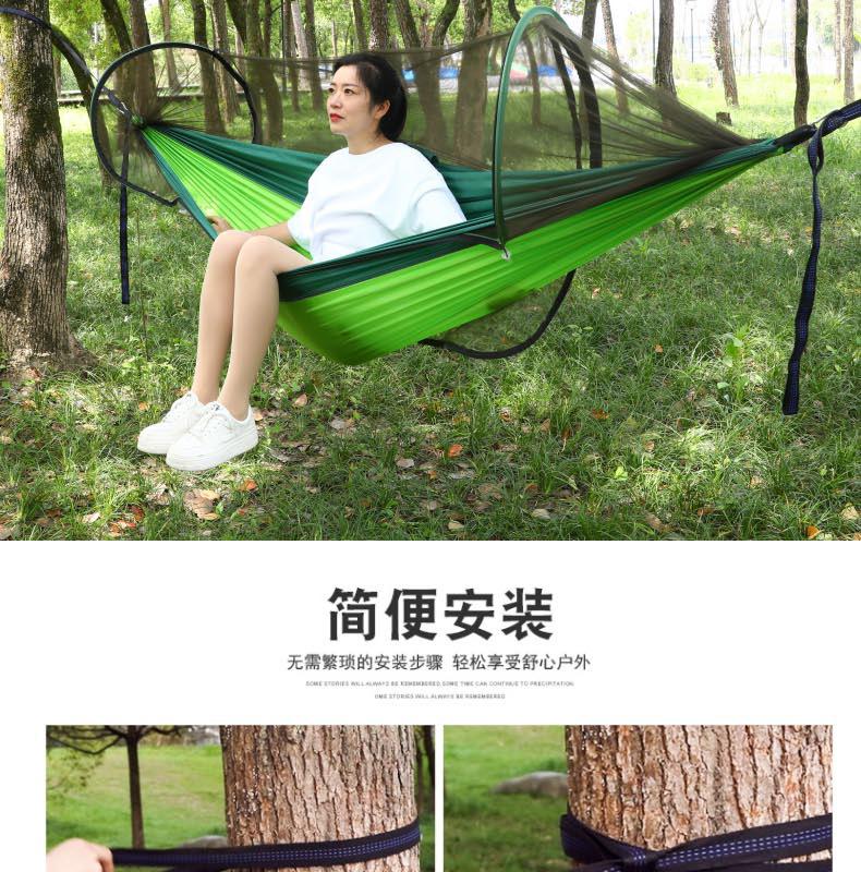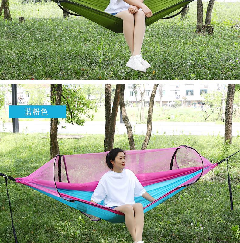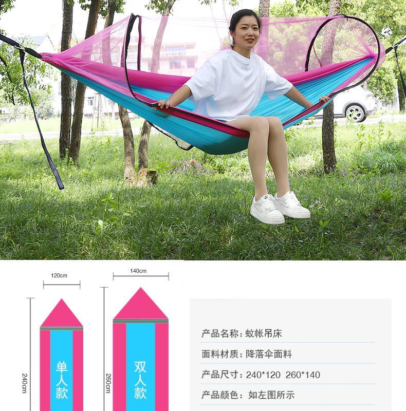 Hamaca Automática de Apertura Rápida para Exterior Anti-mosquitos Sombreante Anti-vuelco Individual Doble Tela de Paracaídas Camping Mosquitera Columpio