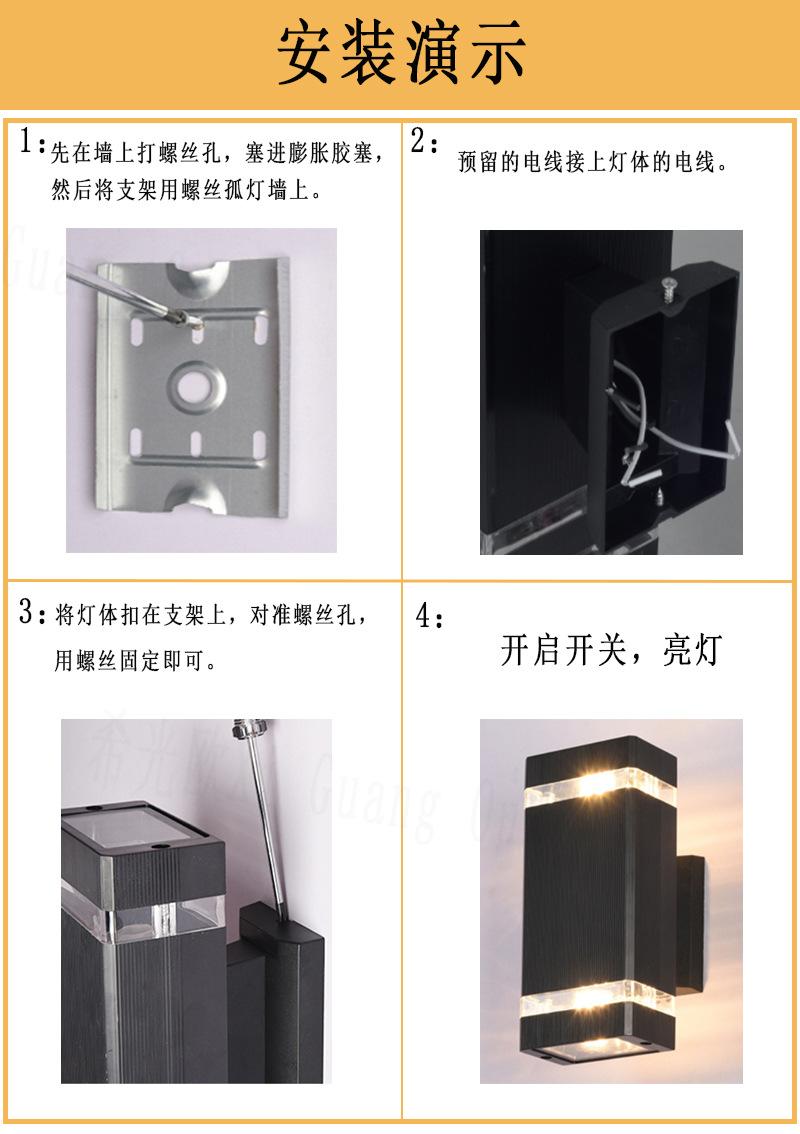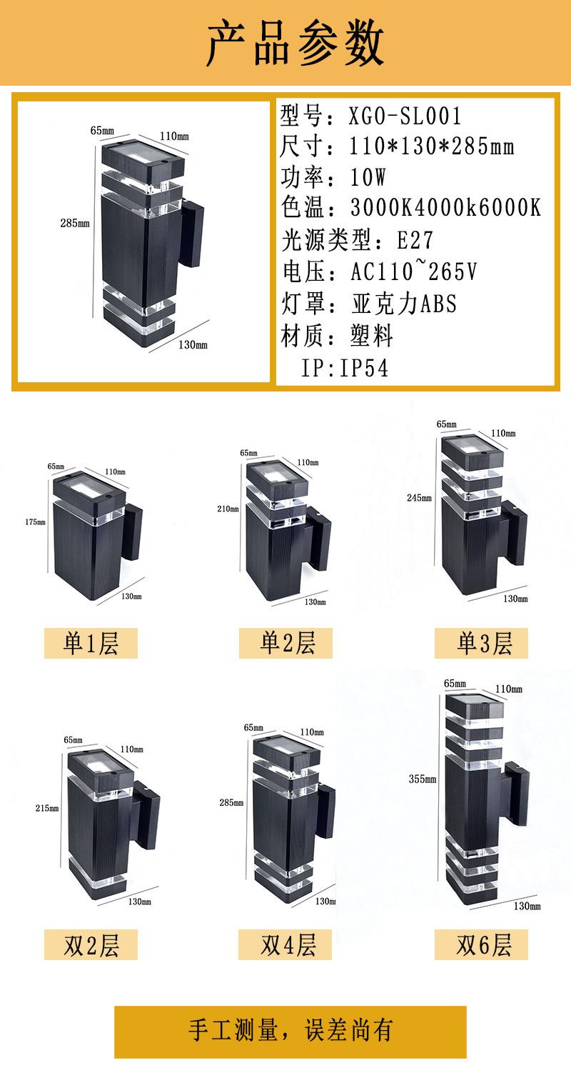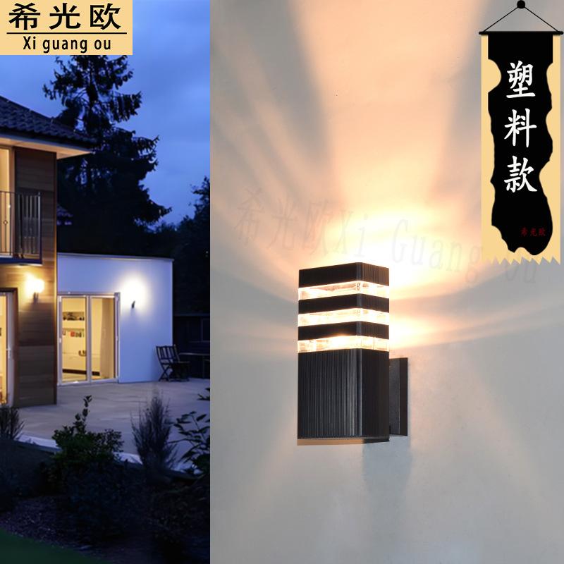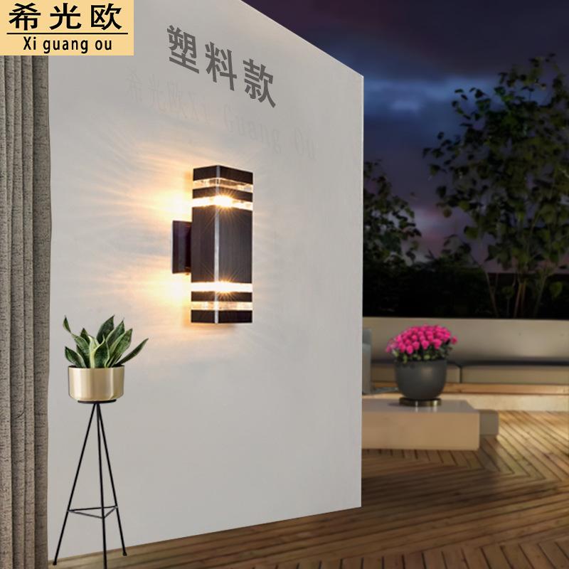 Lámpara de pared exterior carcasa de plástico rectangular moderna simple luminosa arriba y abajo lámpara de jardín impermeable lámpara colgante de pared frente a la puerta