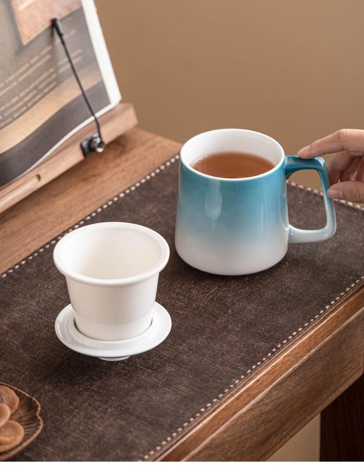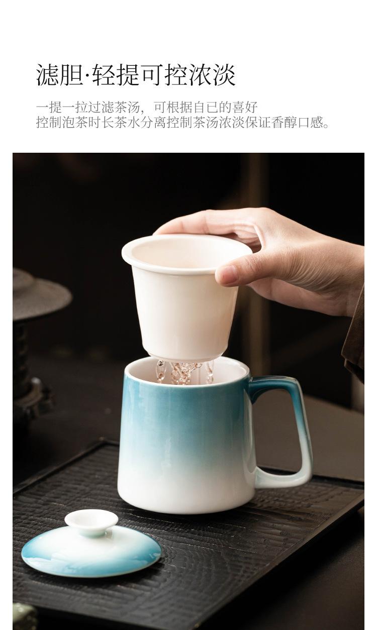 Taza Degradada de Oficina General Taza Cerámica para Separación de Té y Agua Taza para Beber Doméstica con Tapa Taza de Té de Gran Capacidad Taza de Té