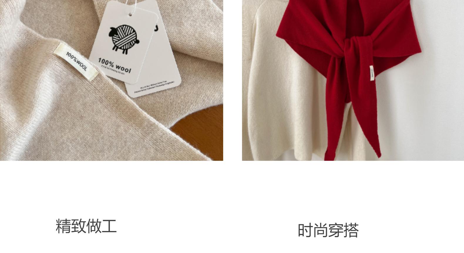 Nuevo Otoño/Invierno 100% Lana Entera Chal Triangular de Alta Gama Otoño/Invierno Protección para el Cuello Cálido Bufanda de Punto de Color Sólido