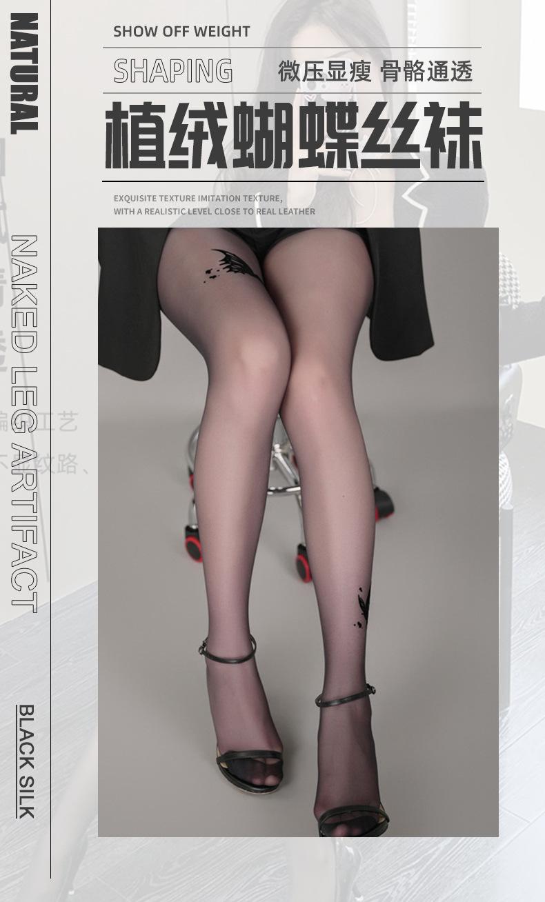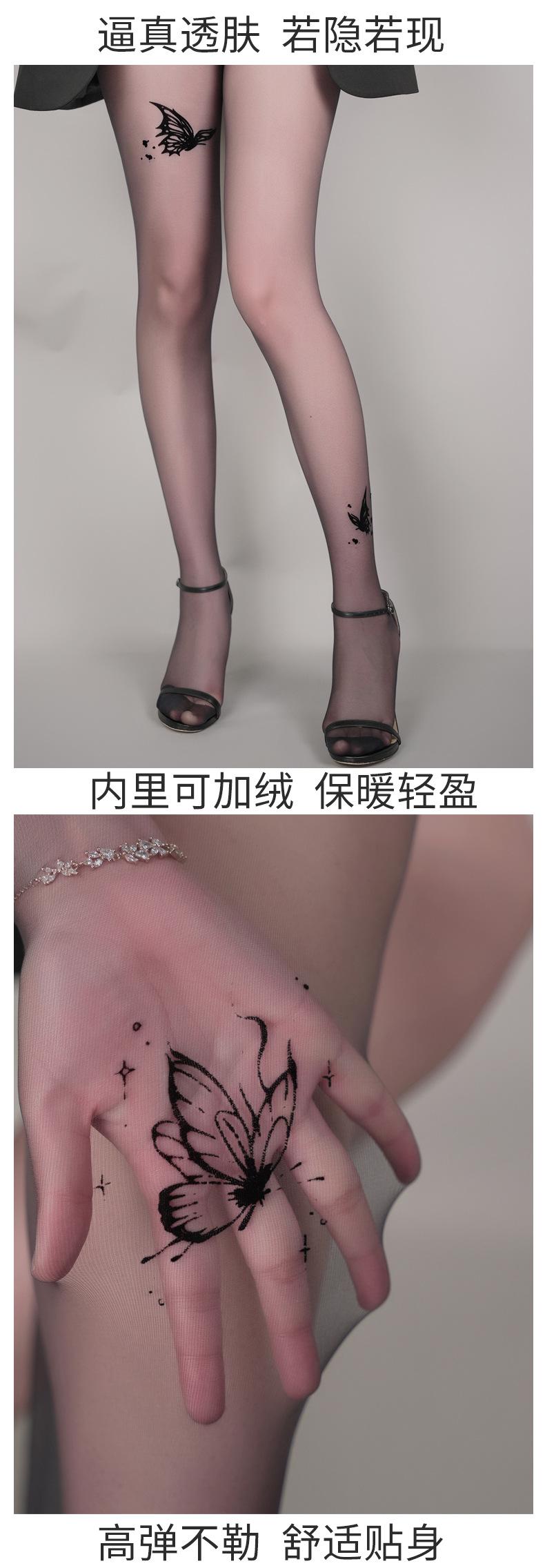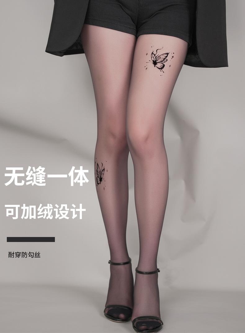 Nuevos Leggings de Otoño e Invierno Negros Artefacto Pierna Descubierta Medias de Mariposas Flocadas Pantimedias con Forro Polar Procesamiento y Personalización del Fabricante
