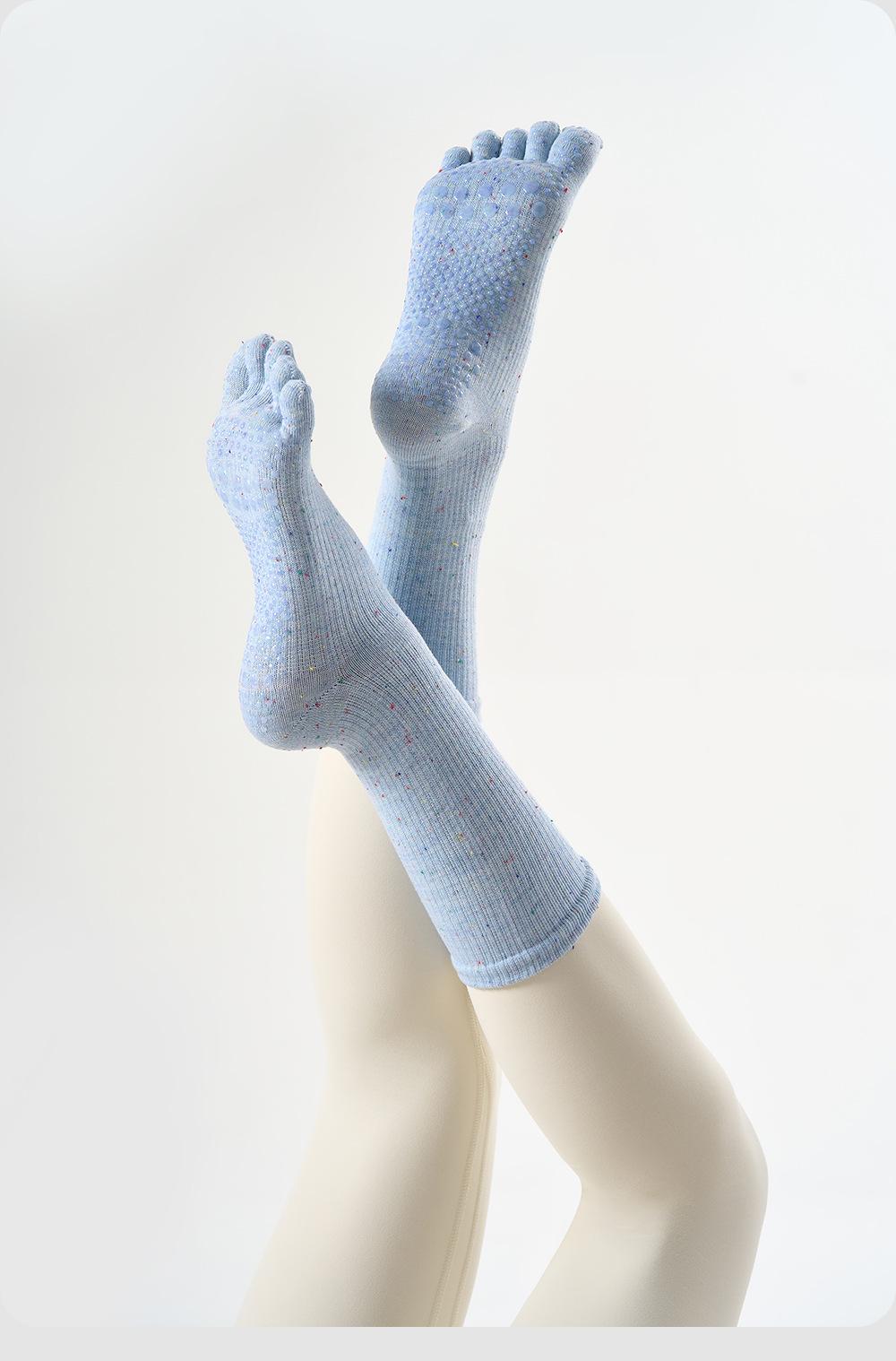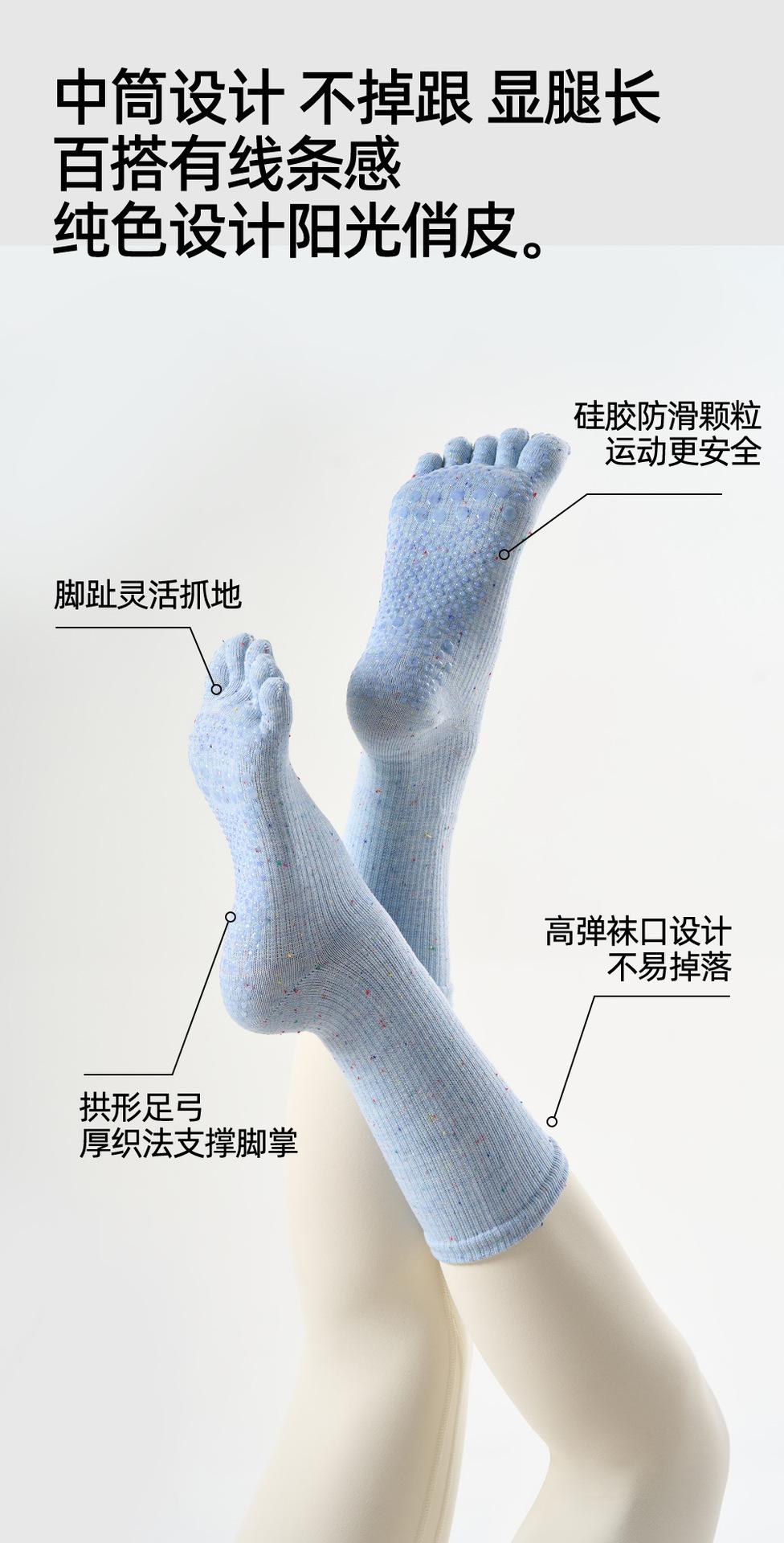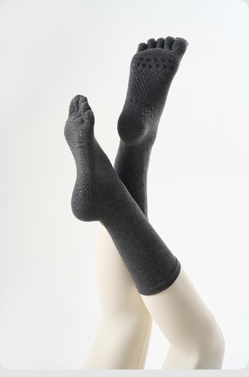 Calcetines de Yoga Venta al por Mayor Transfronteriza Color Sólido Calcetines de Cinco Dedos Profesionales Antideslizantes Pilates Fitness Calcetines Medios de Pantorrilla Calcetines de Pantorrilla Absorbentes de Sudor