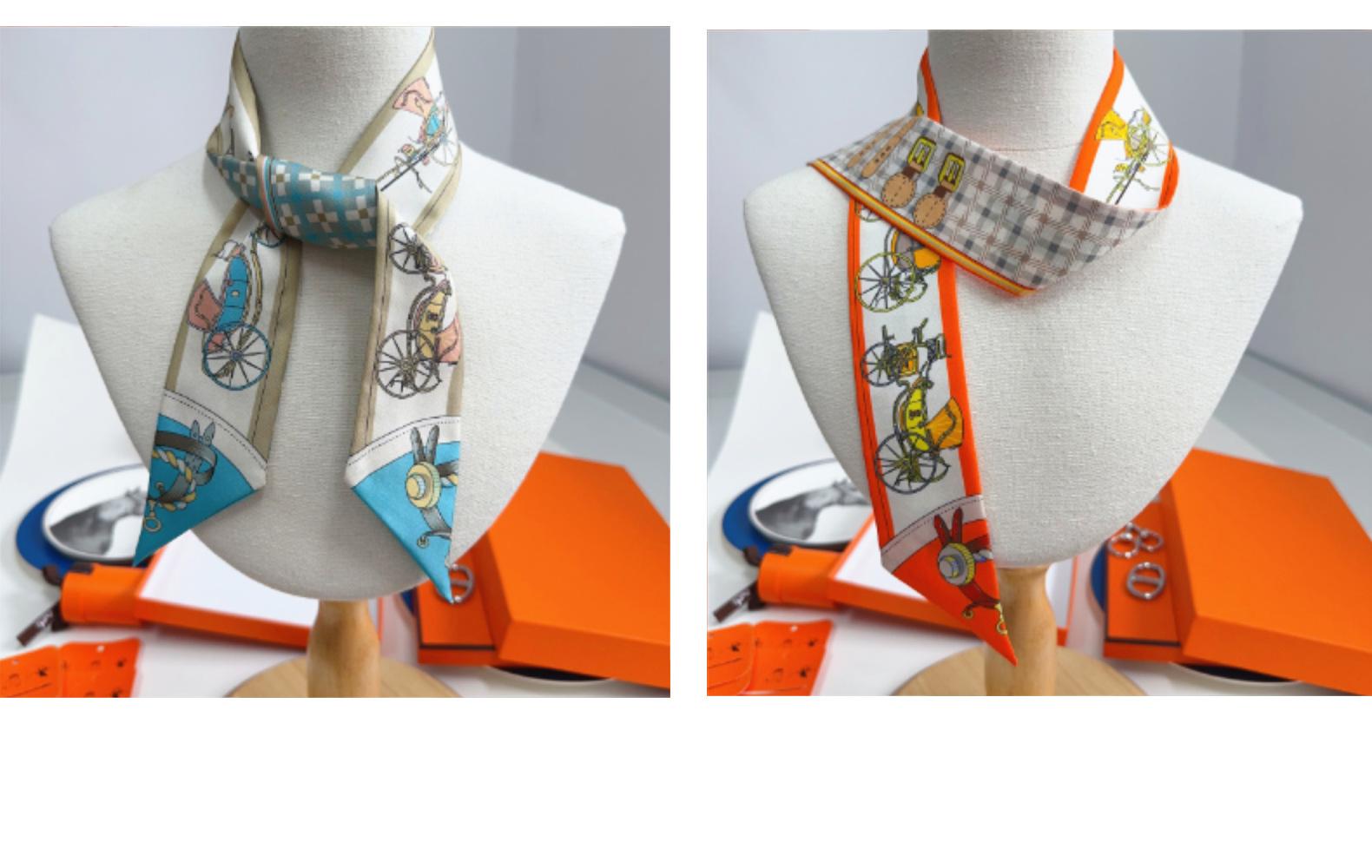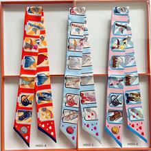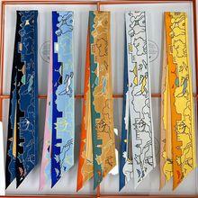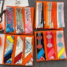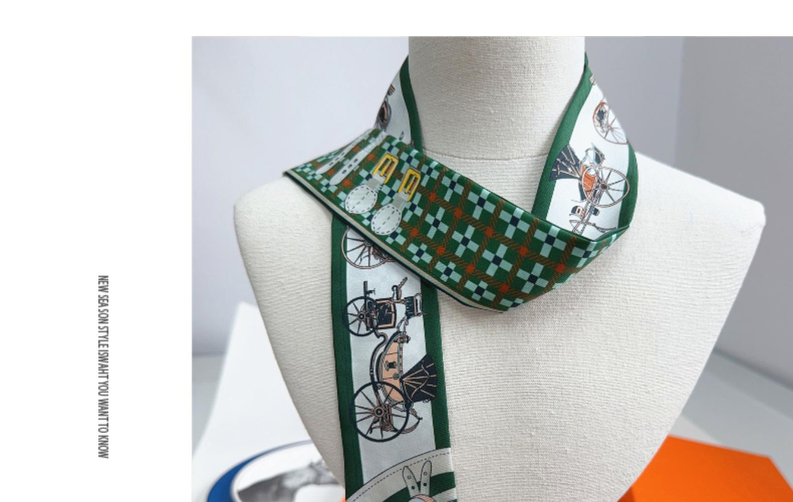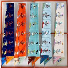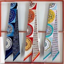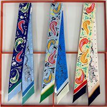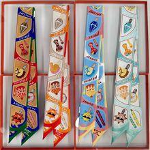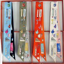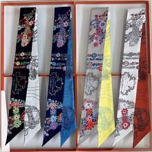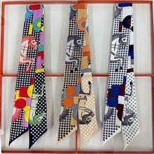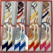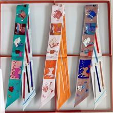 Bufanda Pequeña Diagonal Retro Francesa 100% Seda de Morera 18 Momme Seda Pesada de Sarga Bufanda Lazo para el Cabello para Mujer