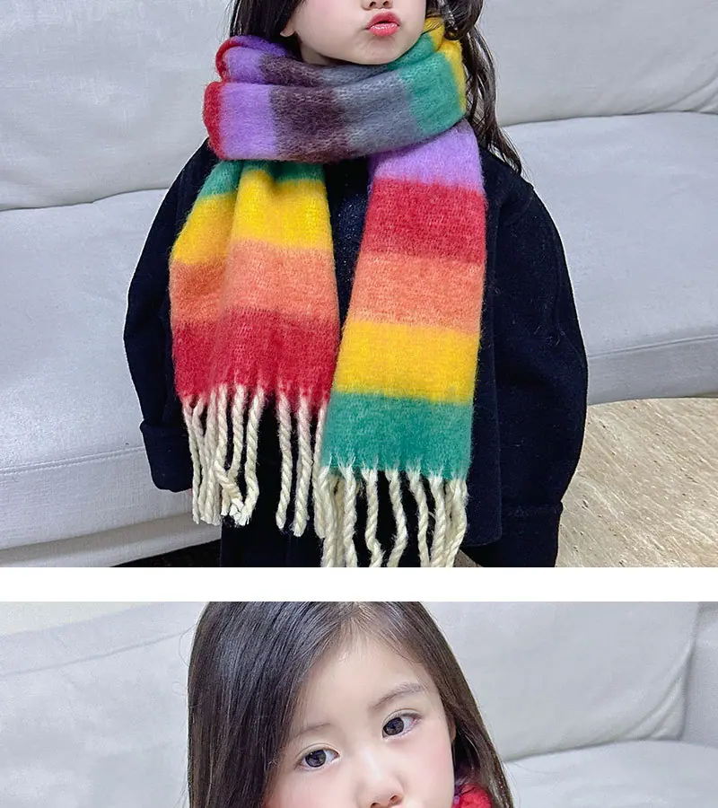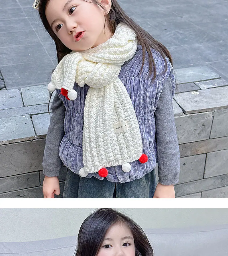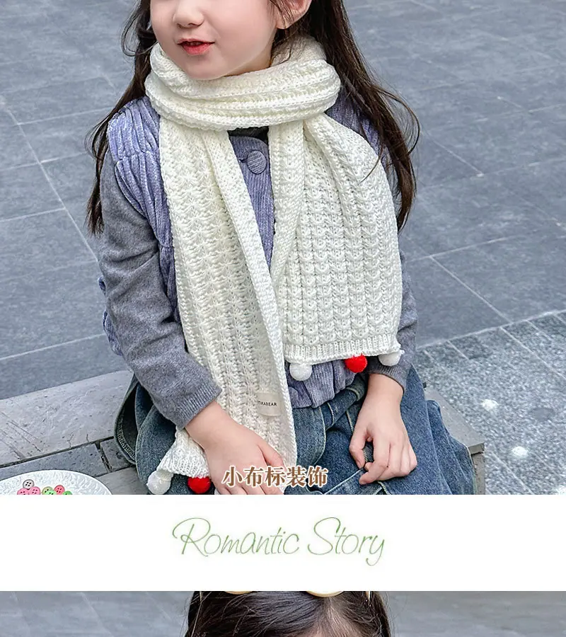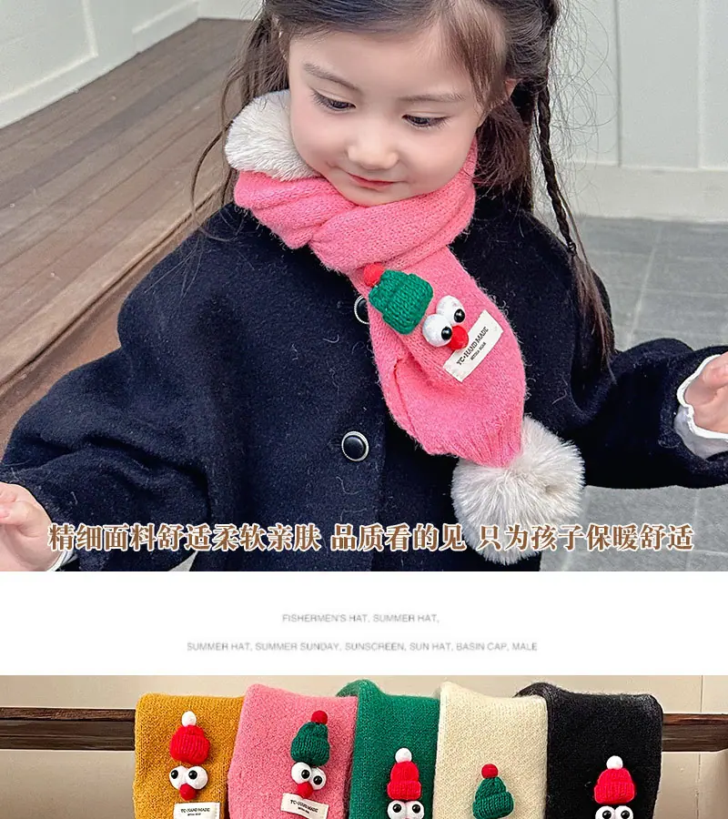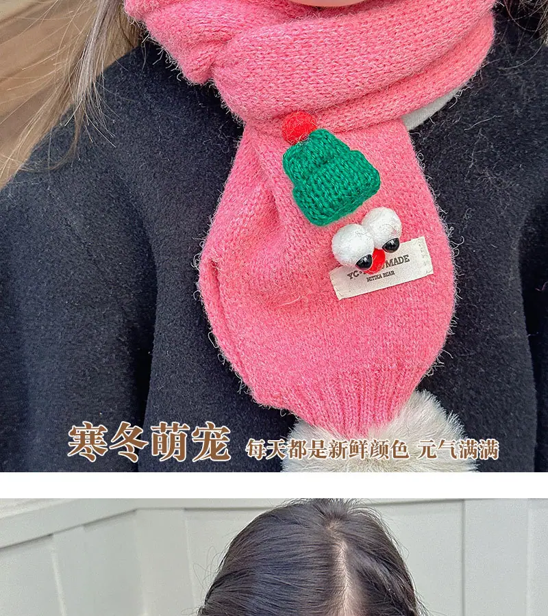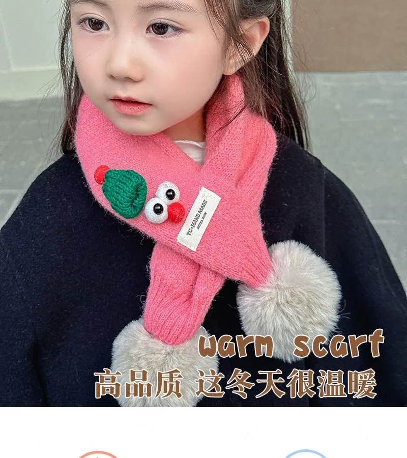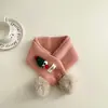 Bufanda de punto de dibujos animados para niños otoño e invierno cálida para niños y niñas color sólido bola cruzada bufanda cálida de lana