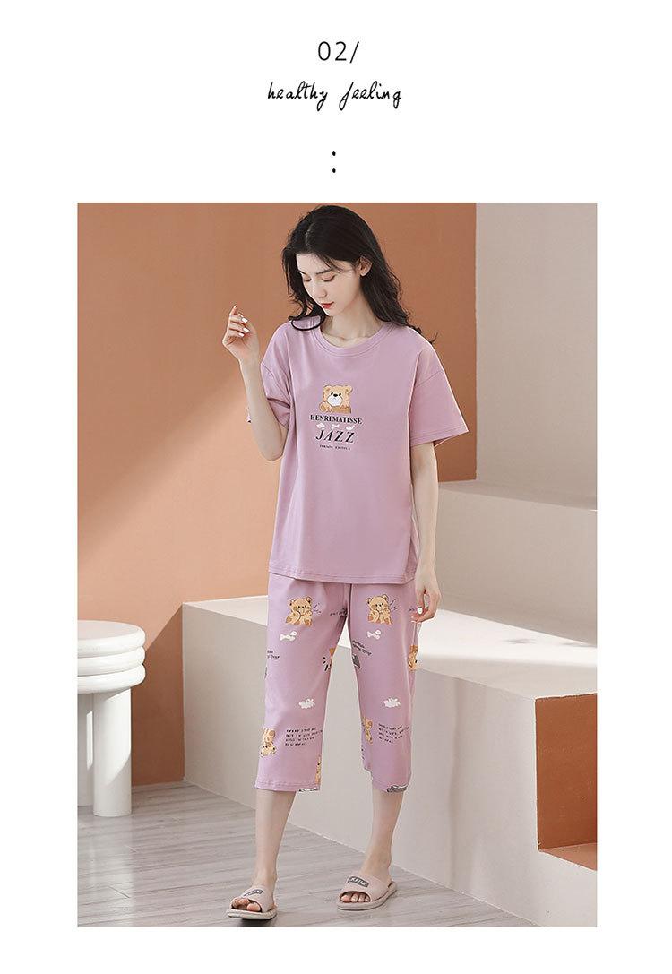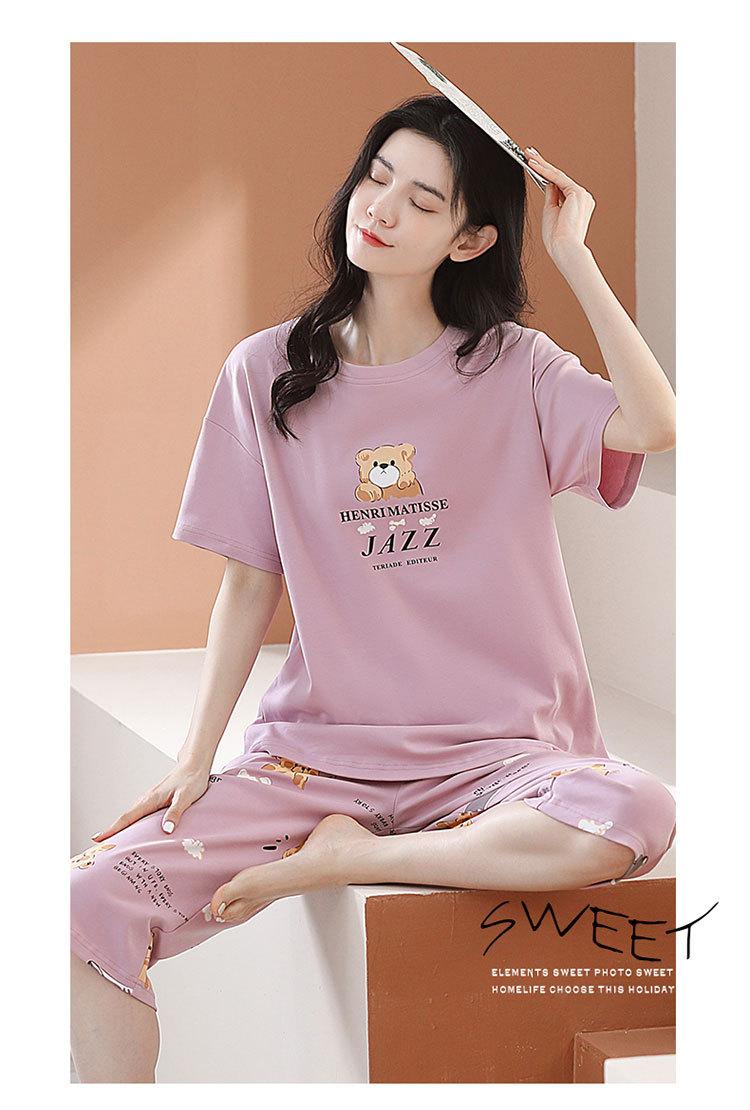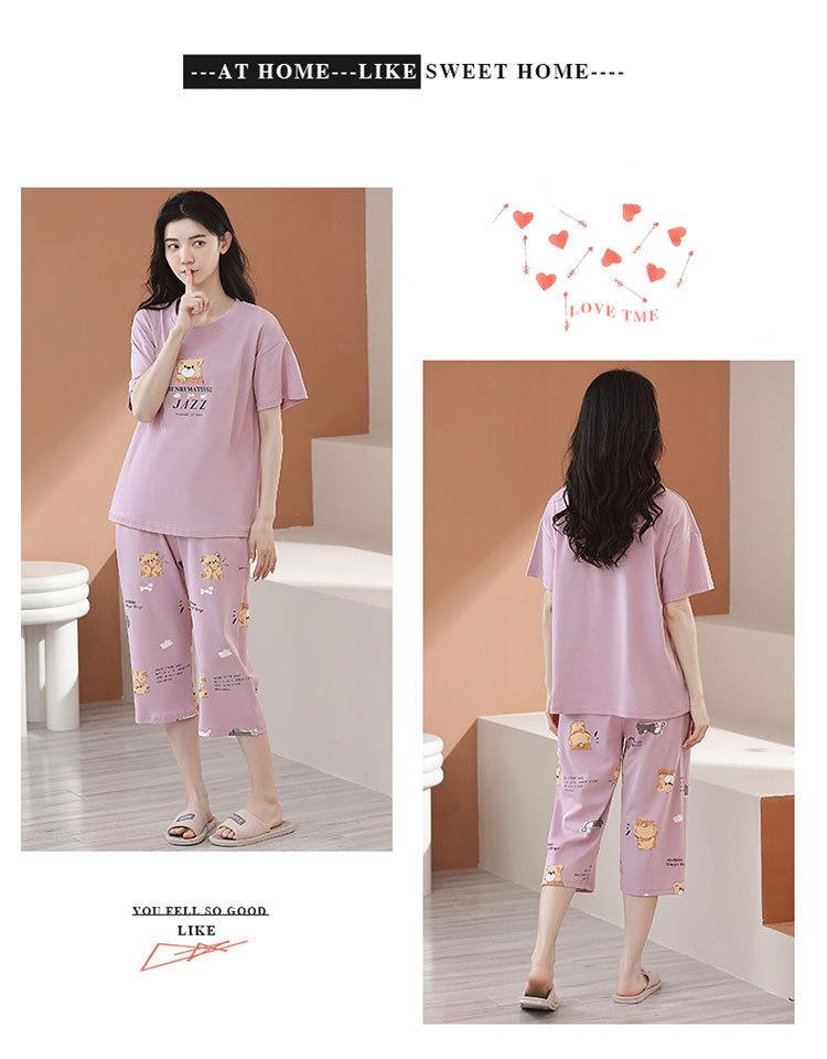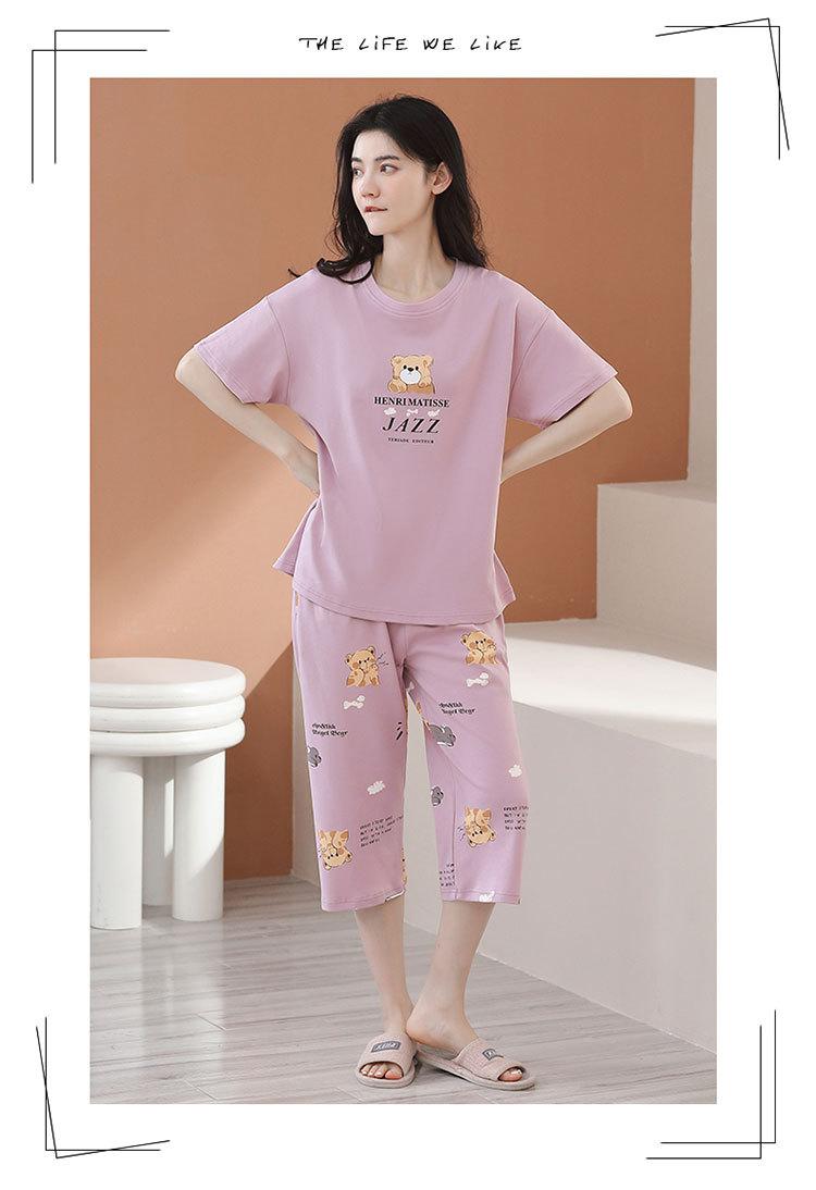 [10] pijama de verano para mujer algodón nuevo verano verano talla grande manga corta pantalones capri ropa holgada para el hogar