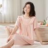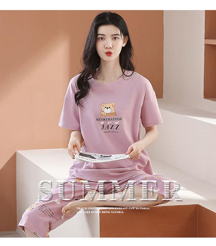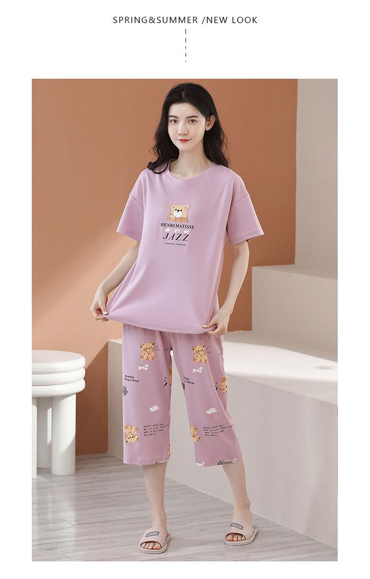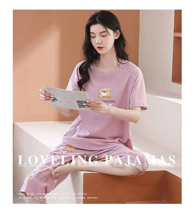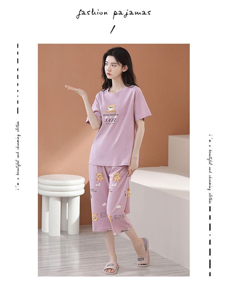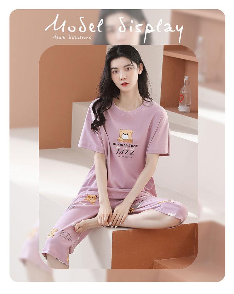 [10] pijama de verano para mujer algodón nuevo verano verano talla grande manga corta pantalones capri ropa holgada para el hogar