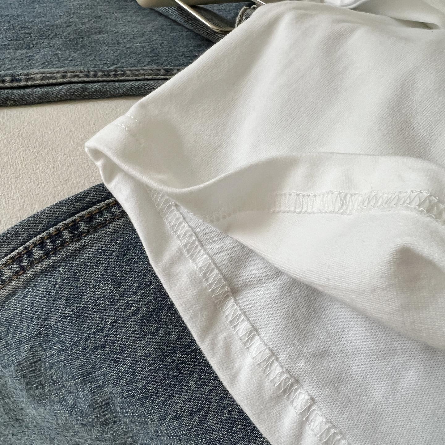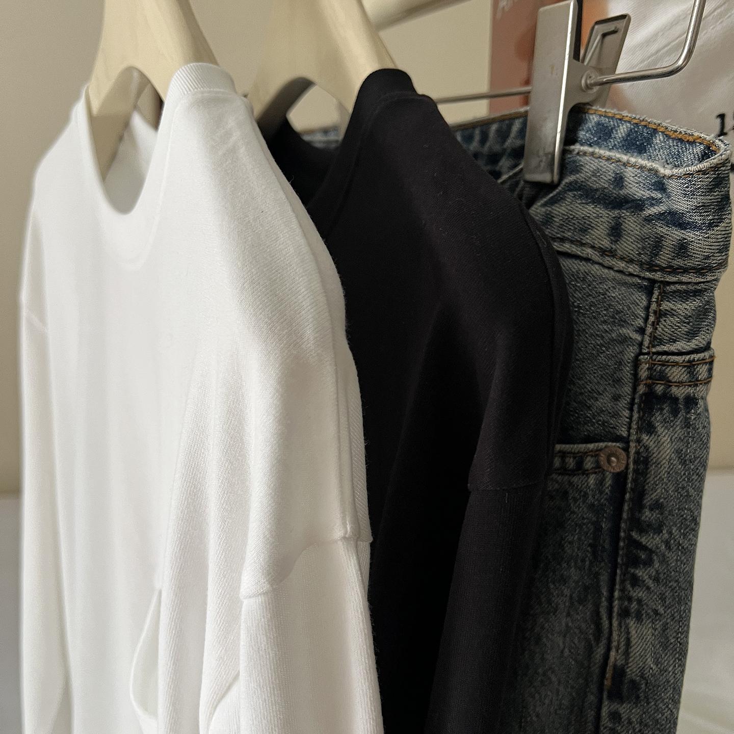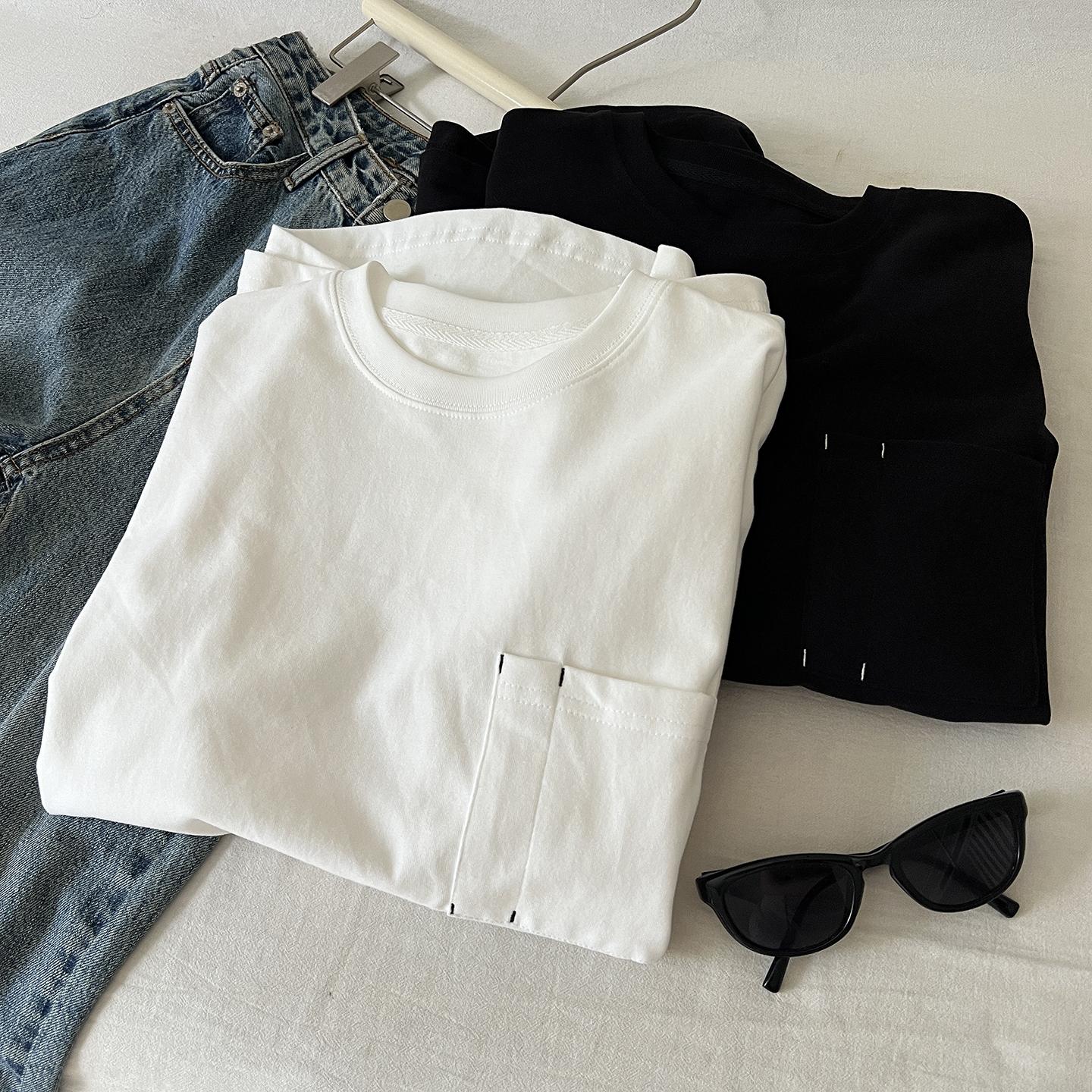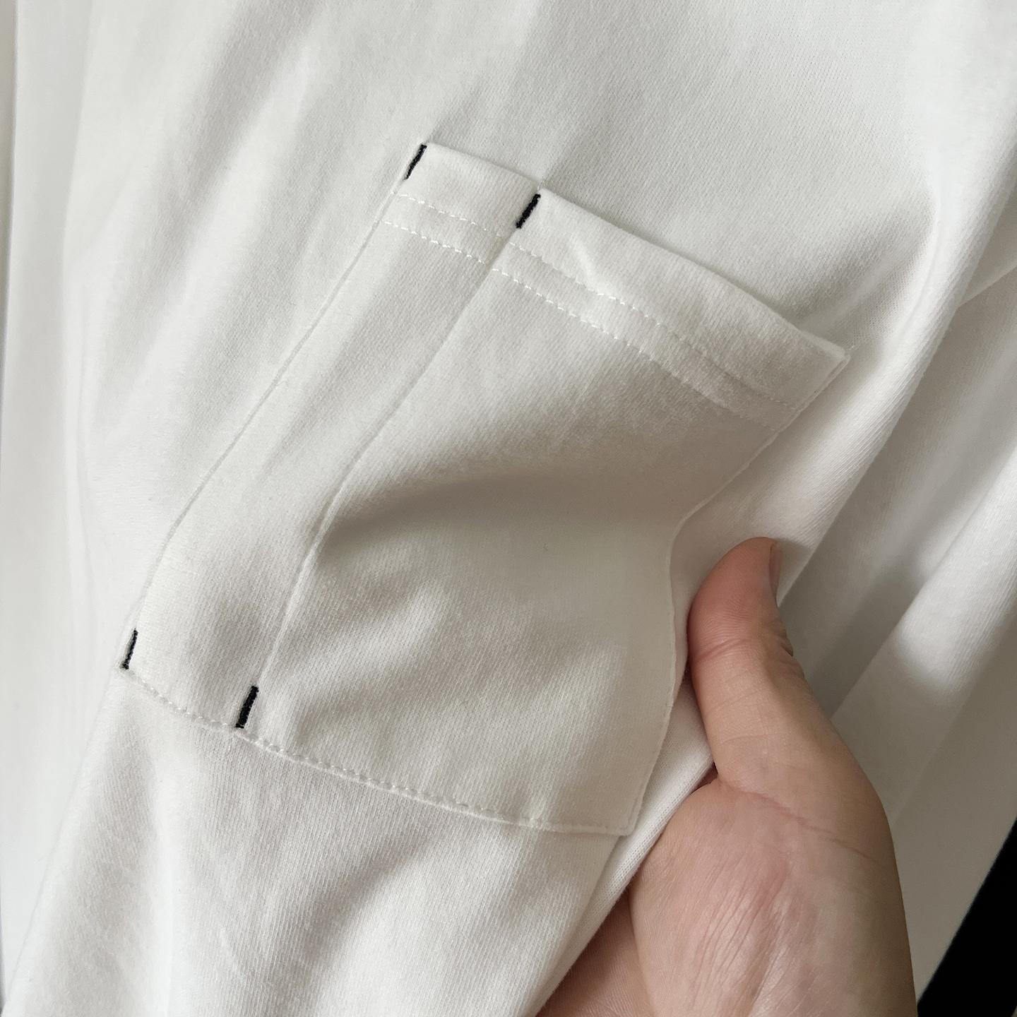 Compra Playera Blanca de Manga Larga para Mujer, Largo Medio, Otoño, Bordado de Bolsillo, Cuello Redondo Holgado, Top Casual, Algodón Puro, Capa Base al por mayor en Joom.pro