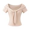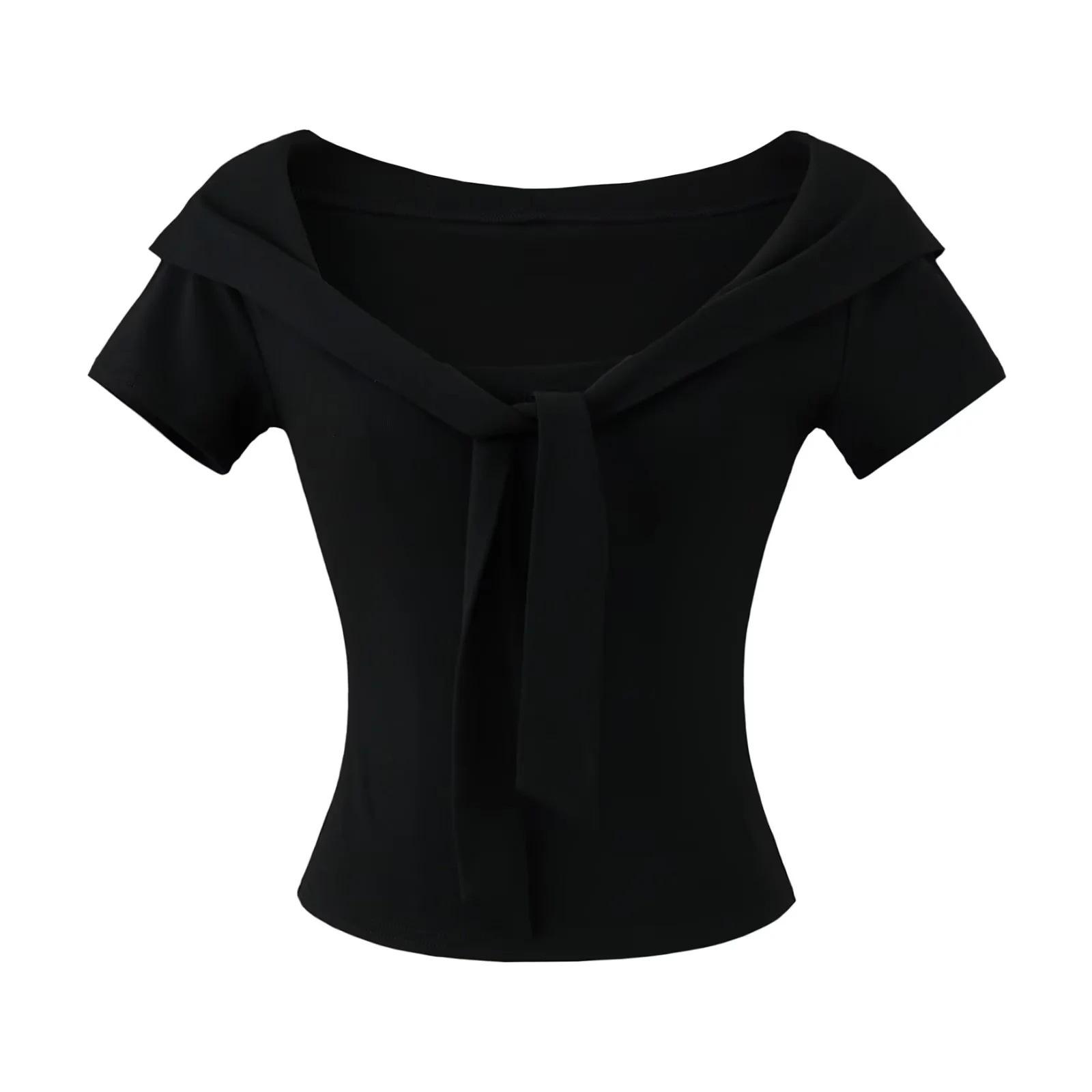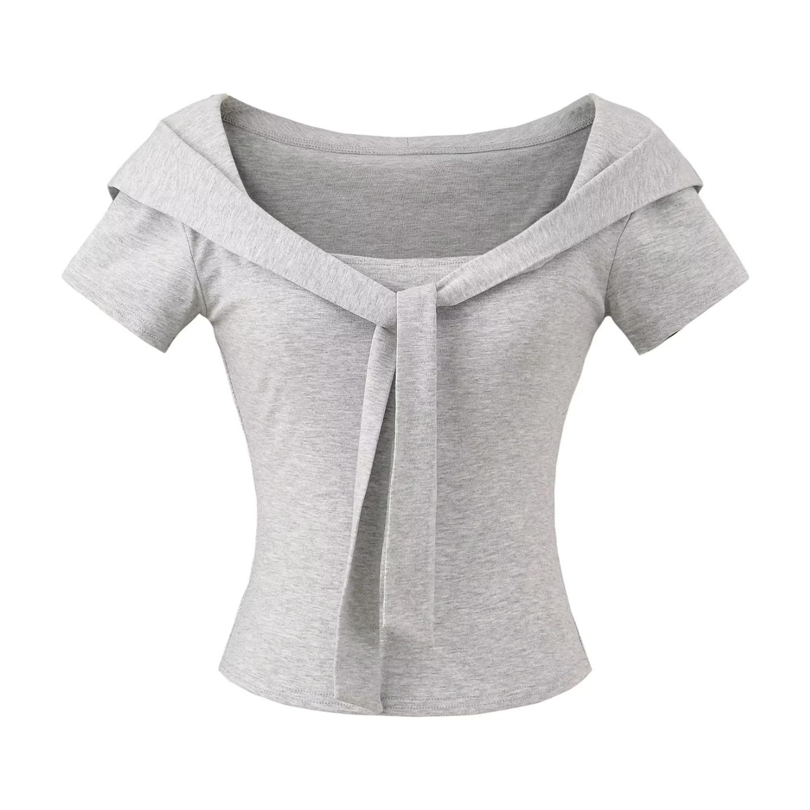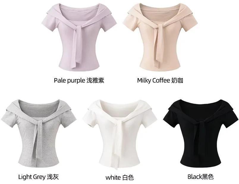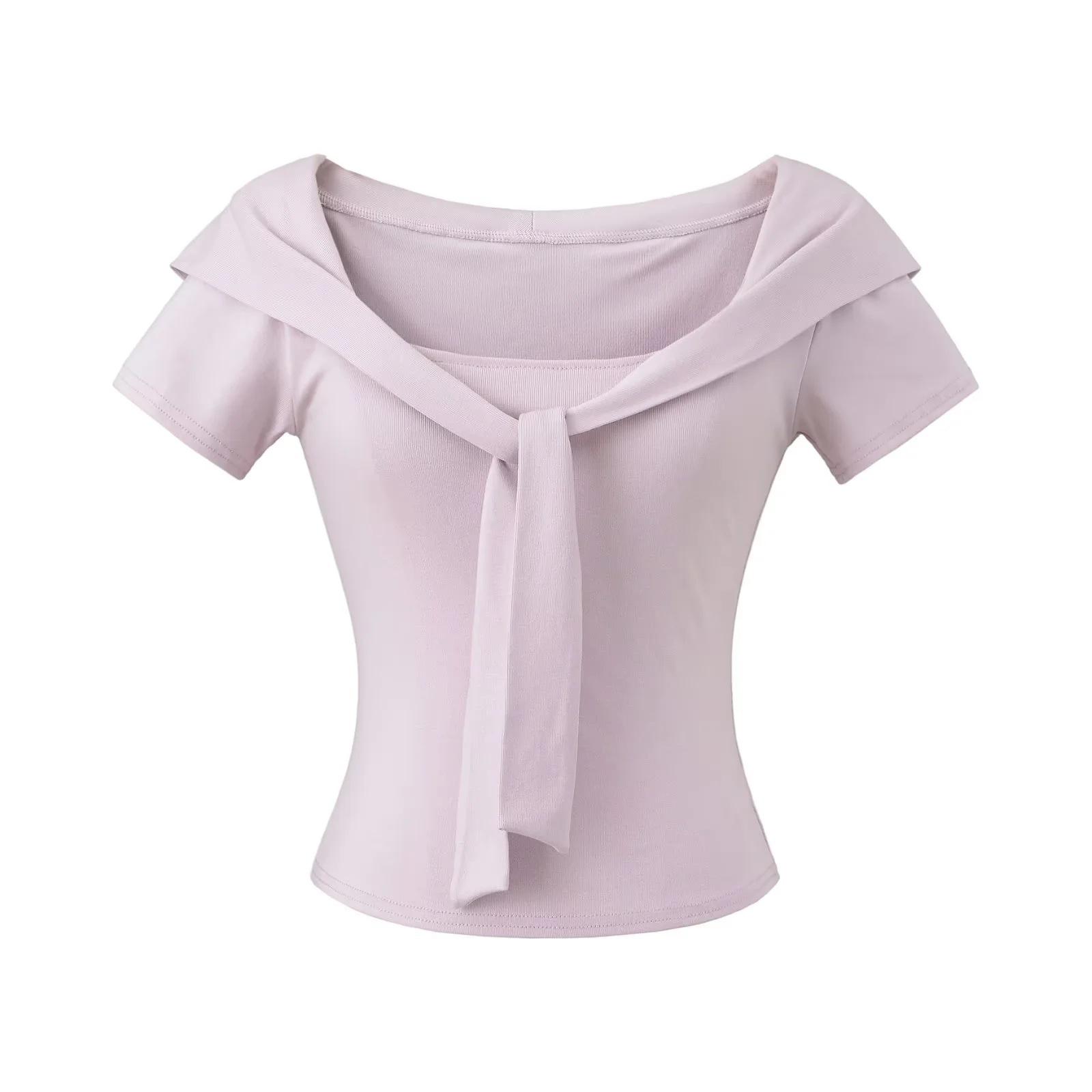 Diseño de Verano Dulce y Picante Look Adelgazante Chal Corto Top con Cordones Estilo Coreano Morado Hombro Derecho Camiseta de Manga Corta para Mujer